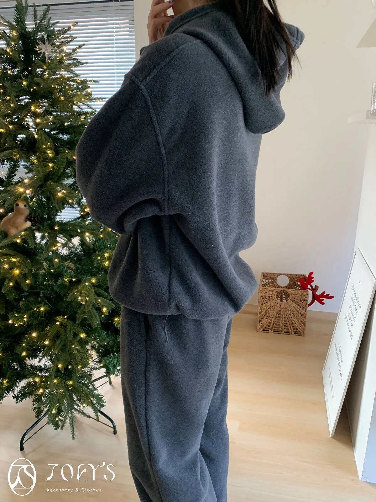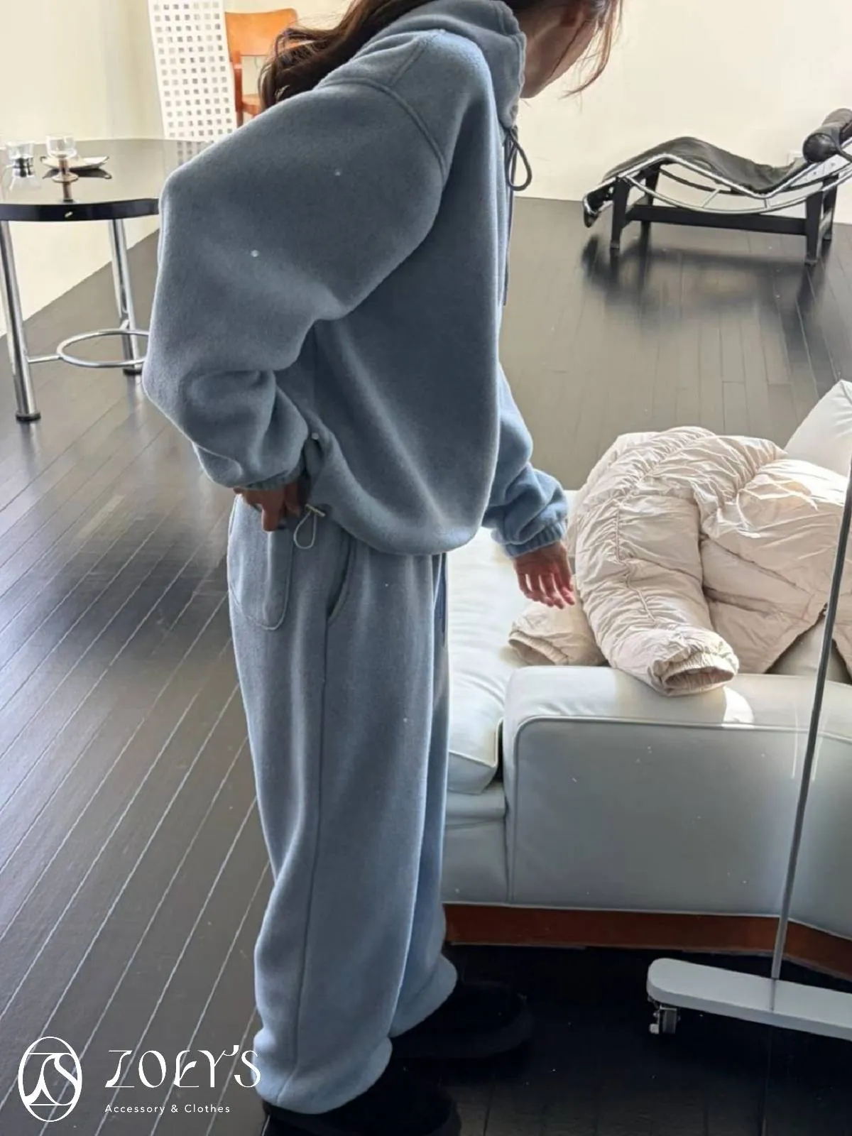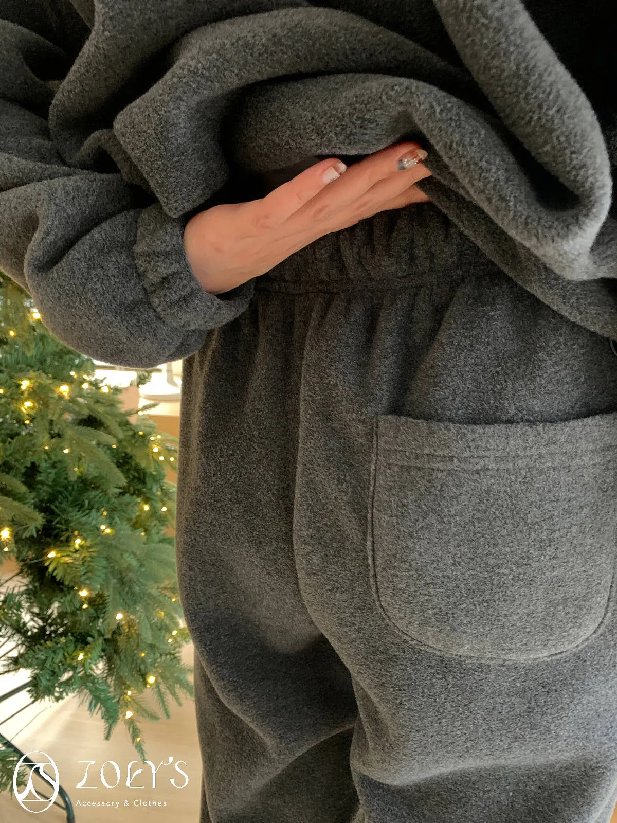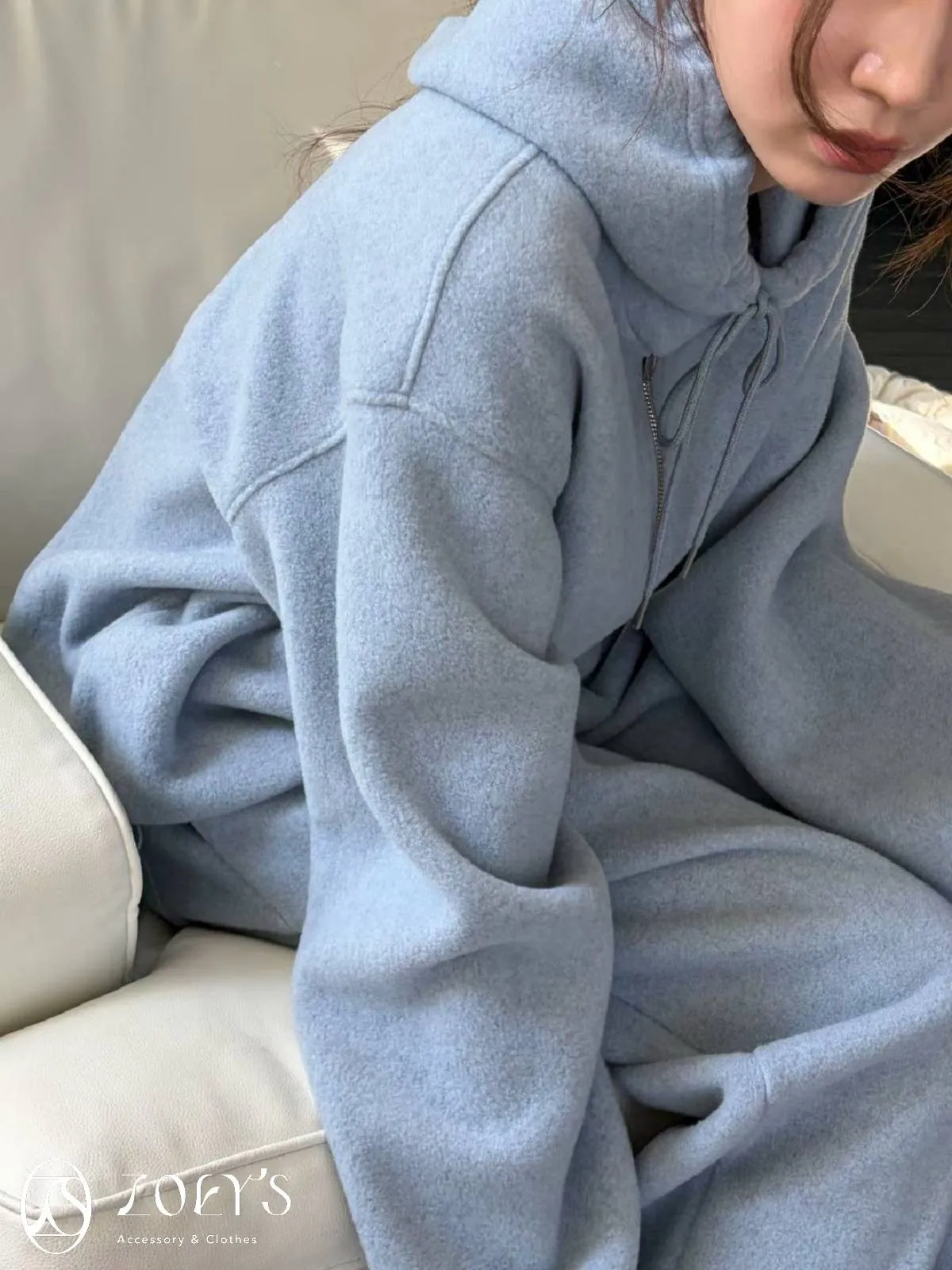 正韓 療癒觸感連帽上衣&長褲SET 藍/深灰/淺灰