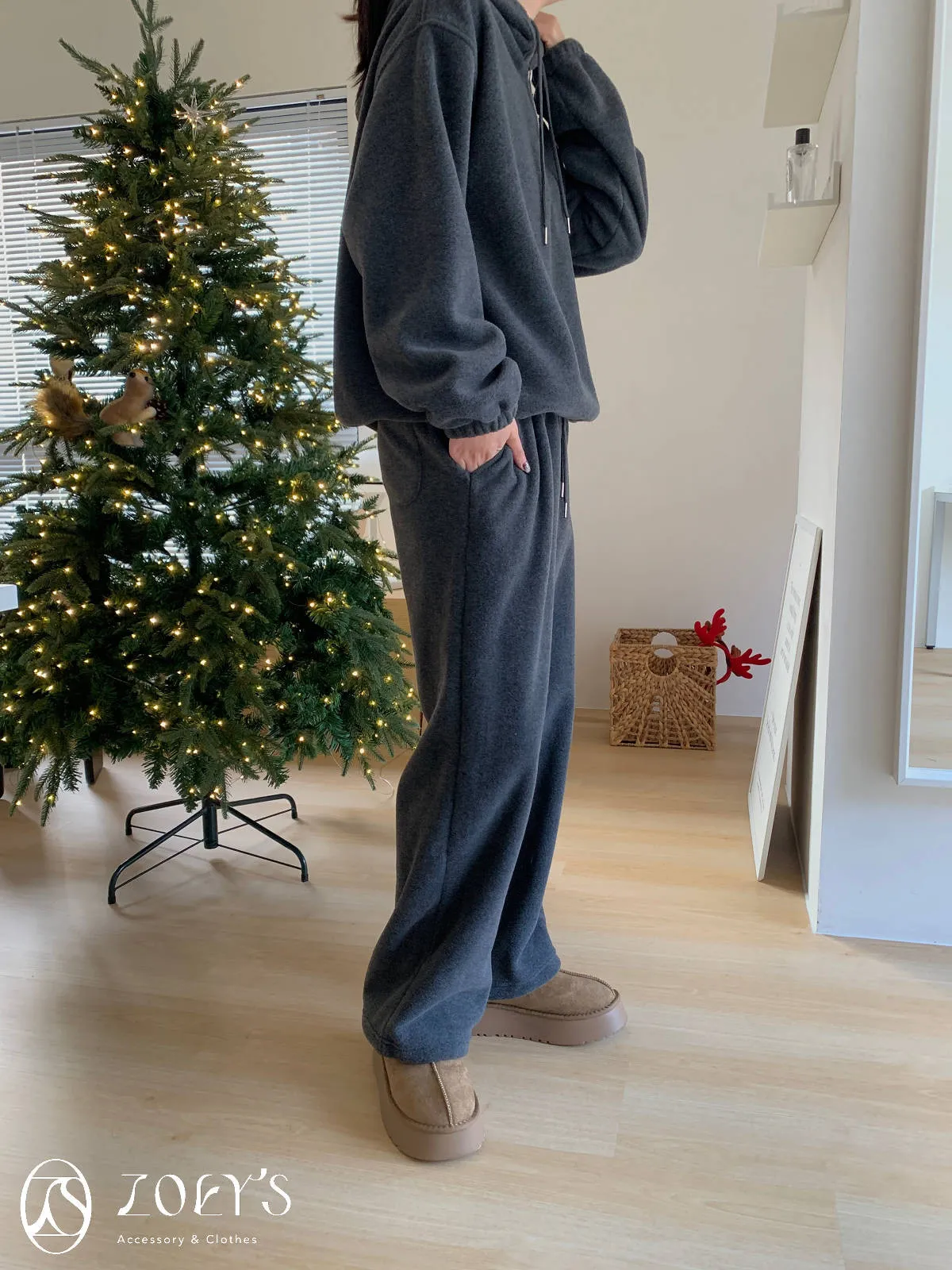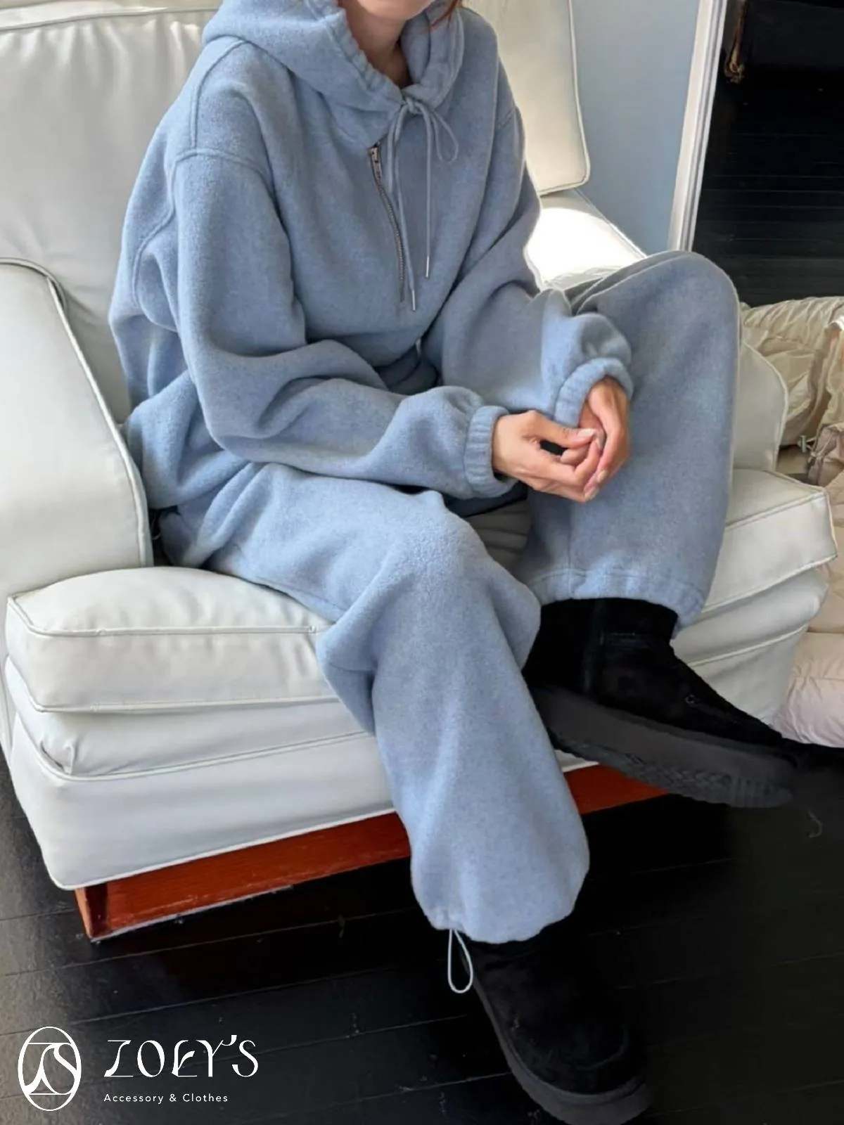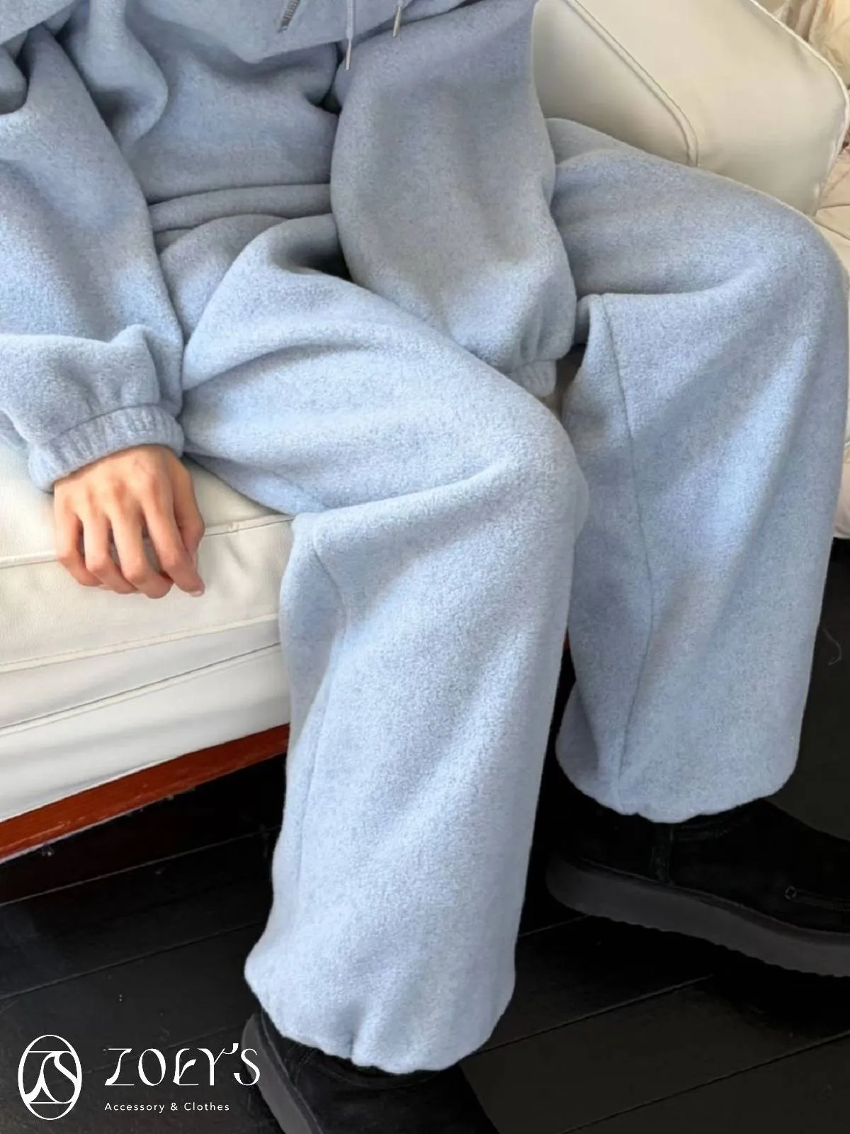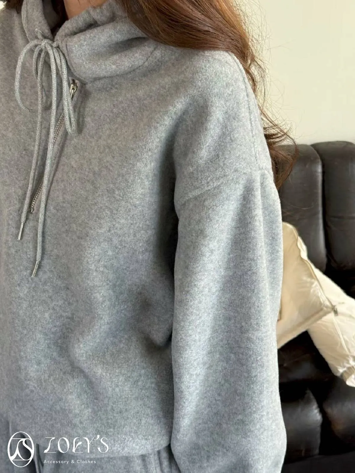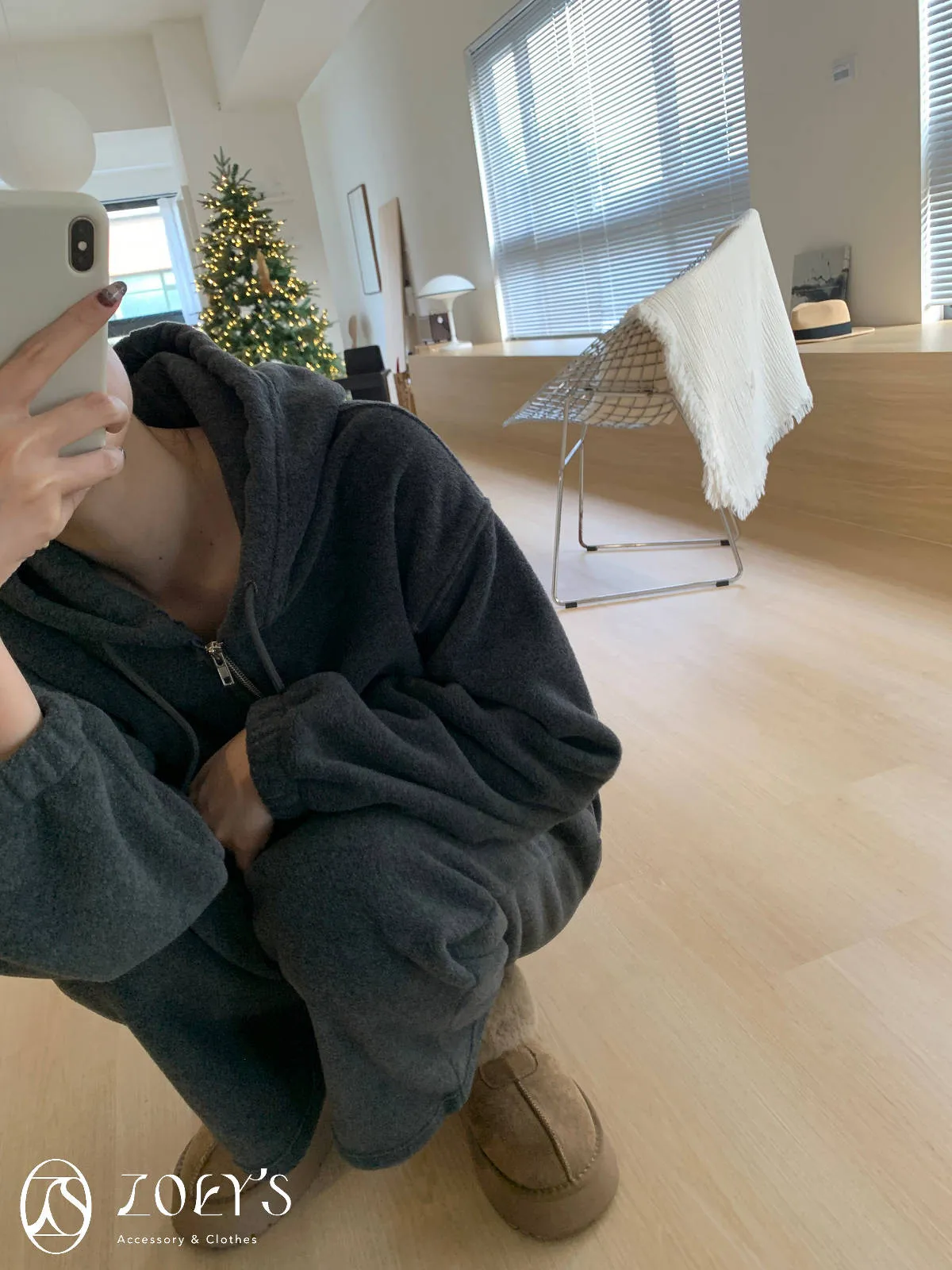正韓 療癒觸感連帽上衣&長褲SET 藍/深灰/淺灰