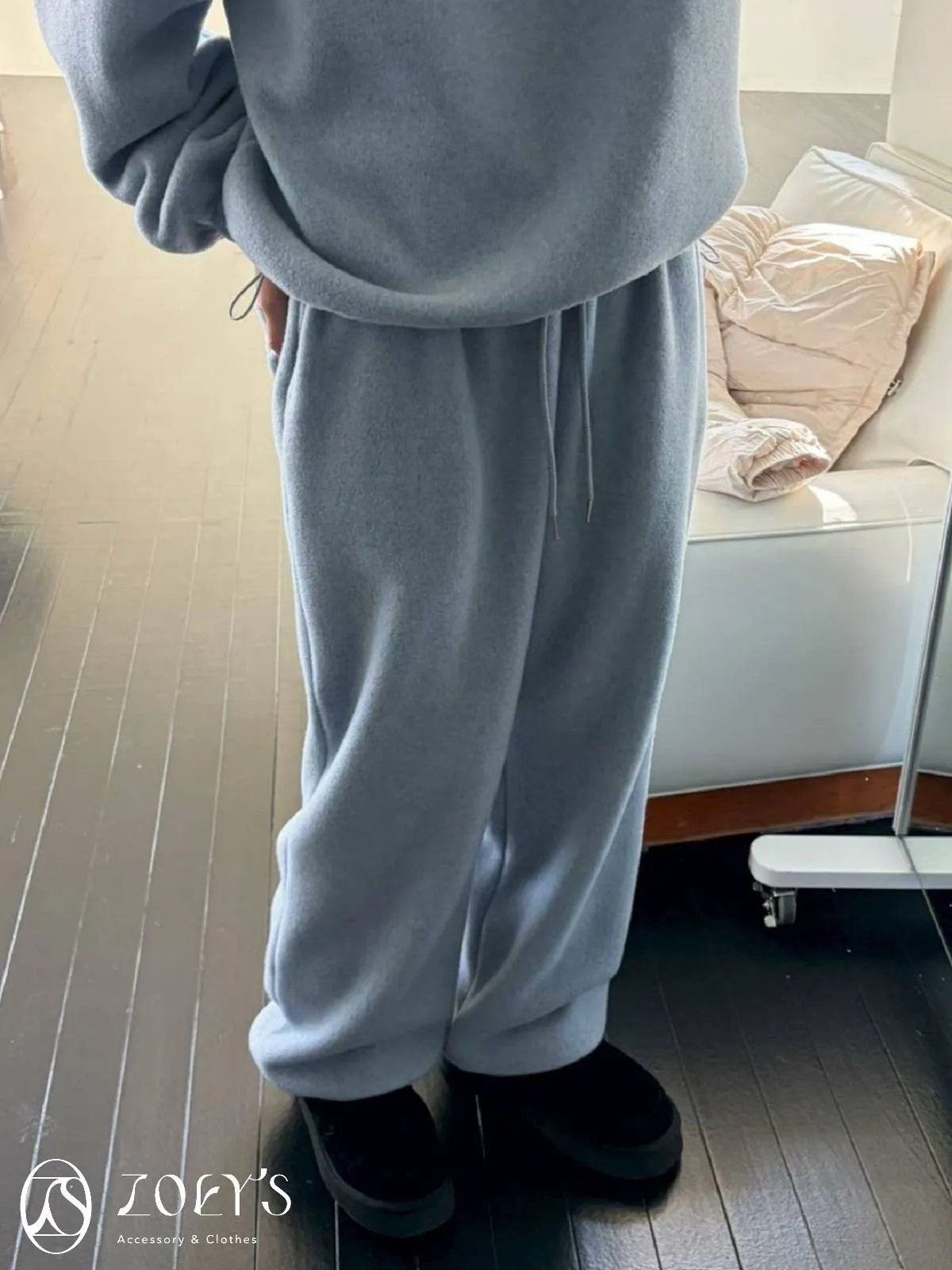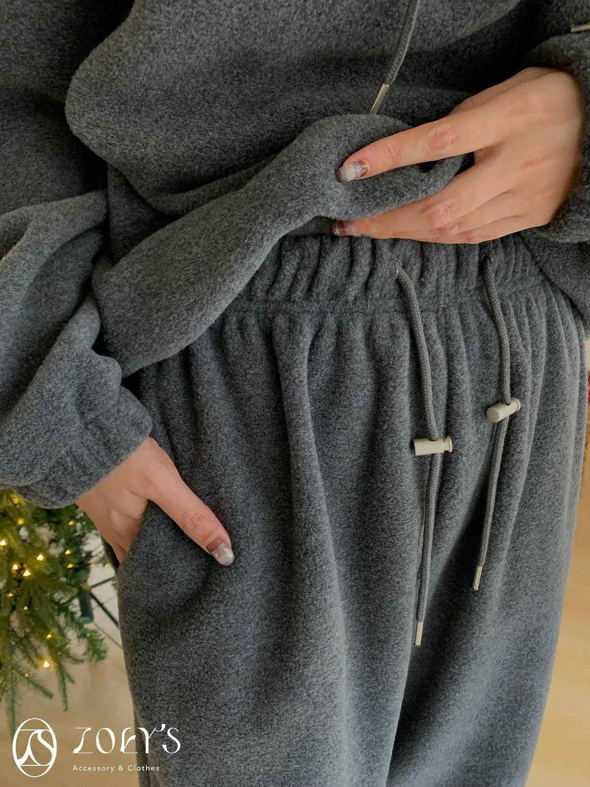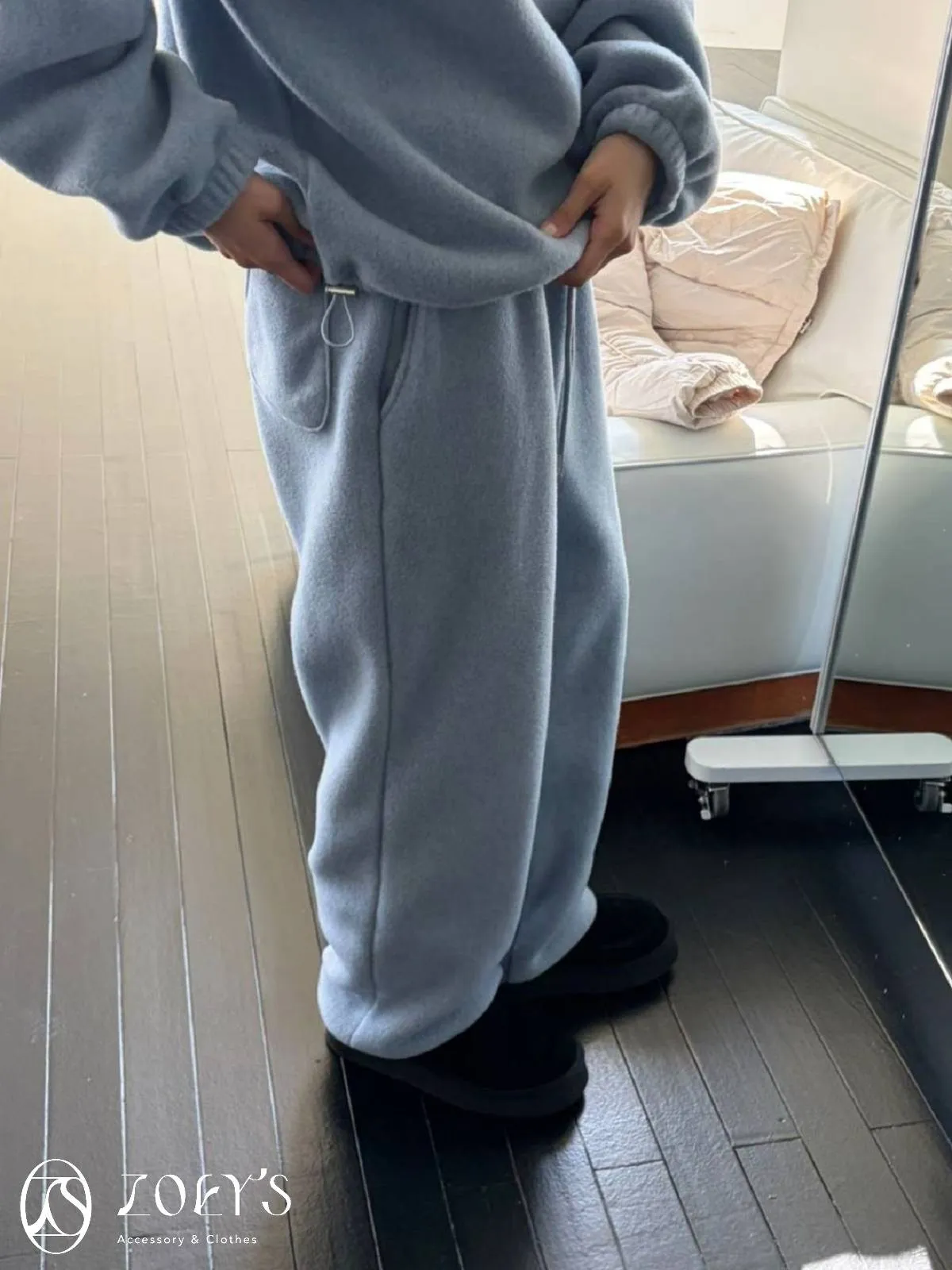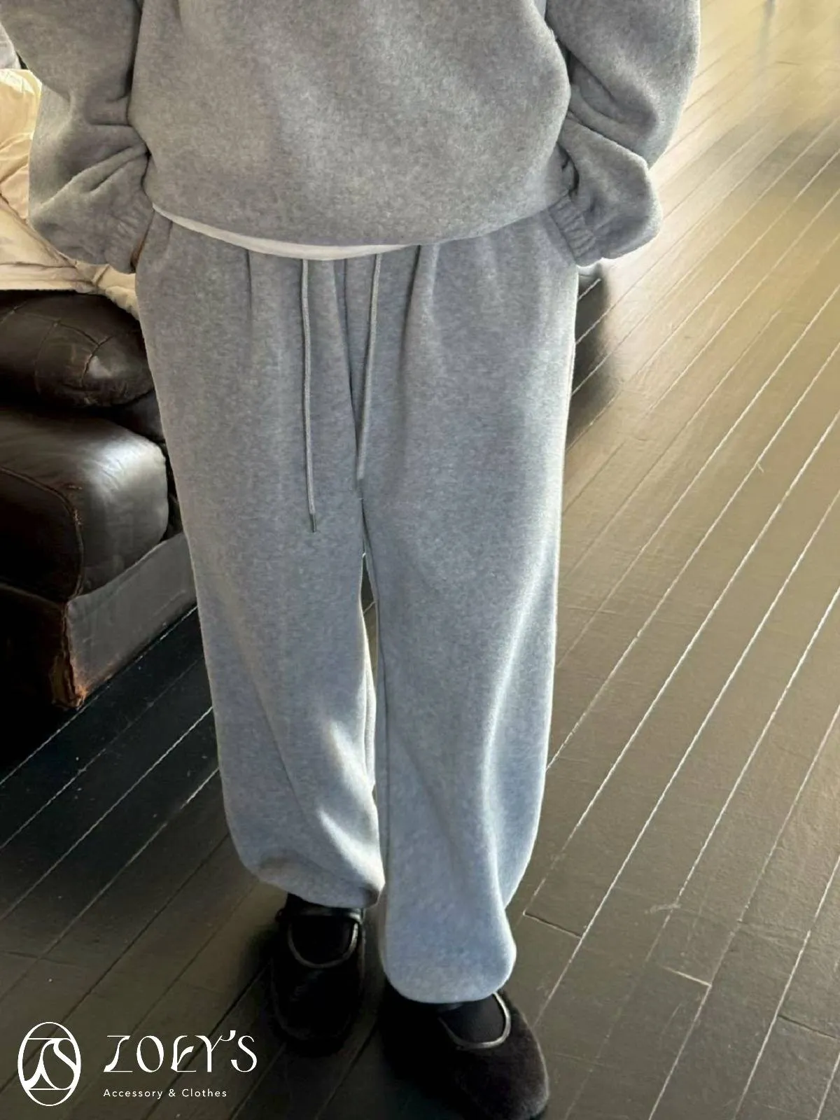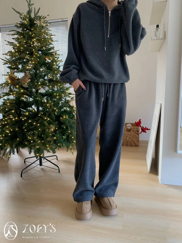 正韓 療癒觸感連帽上衣&長褲SET 藍/深灰/淺灰