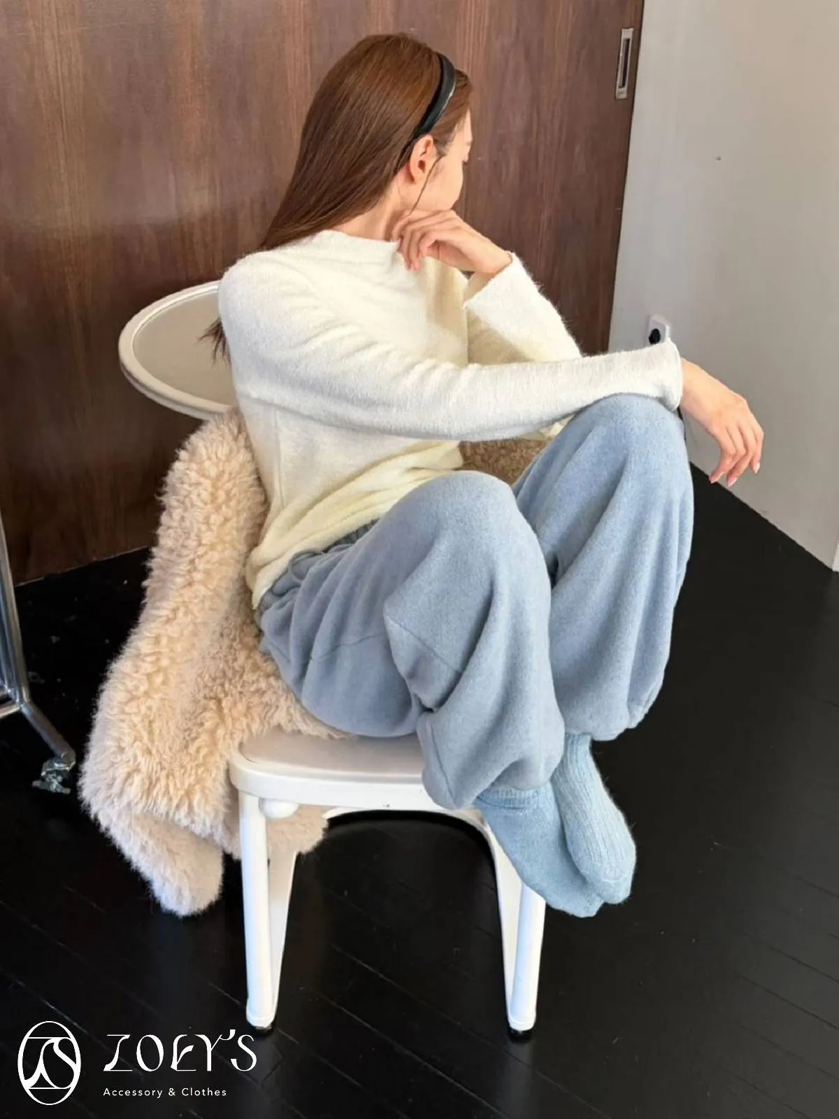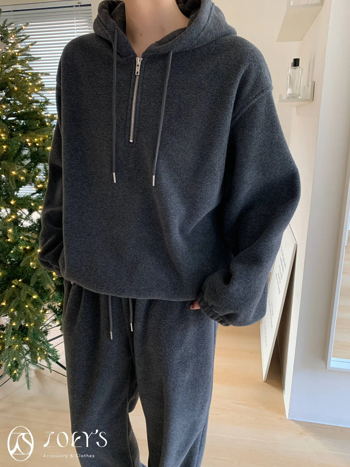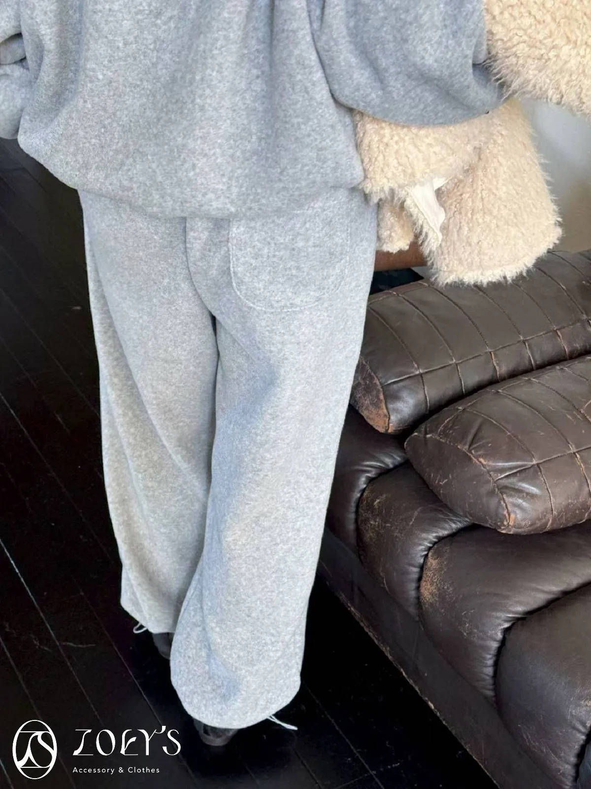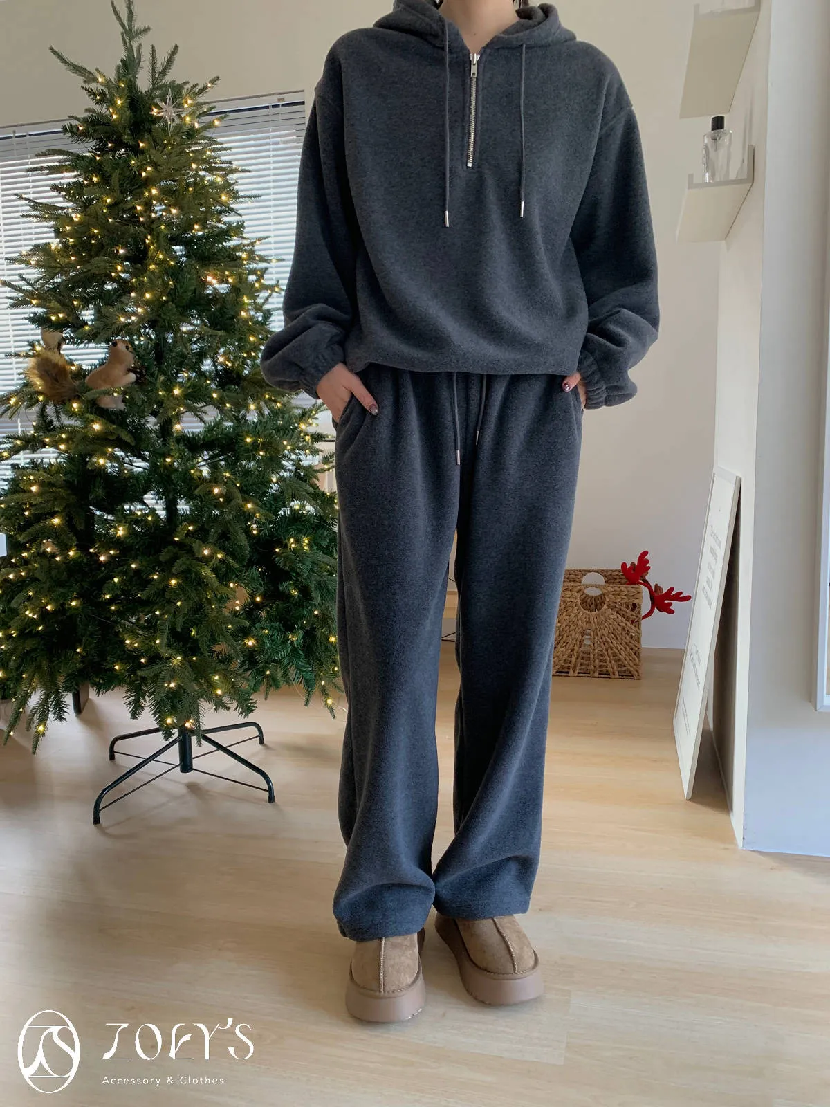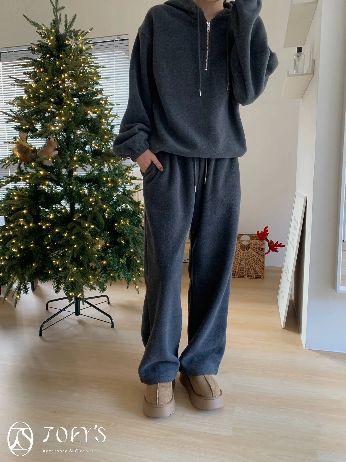 正韓 療癒觸感連帽上衣&長褲SET 藍/深灰/淺灰