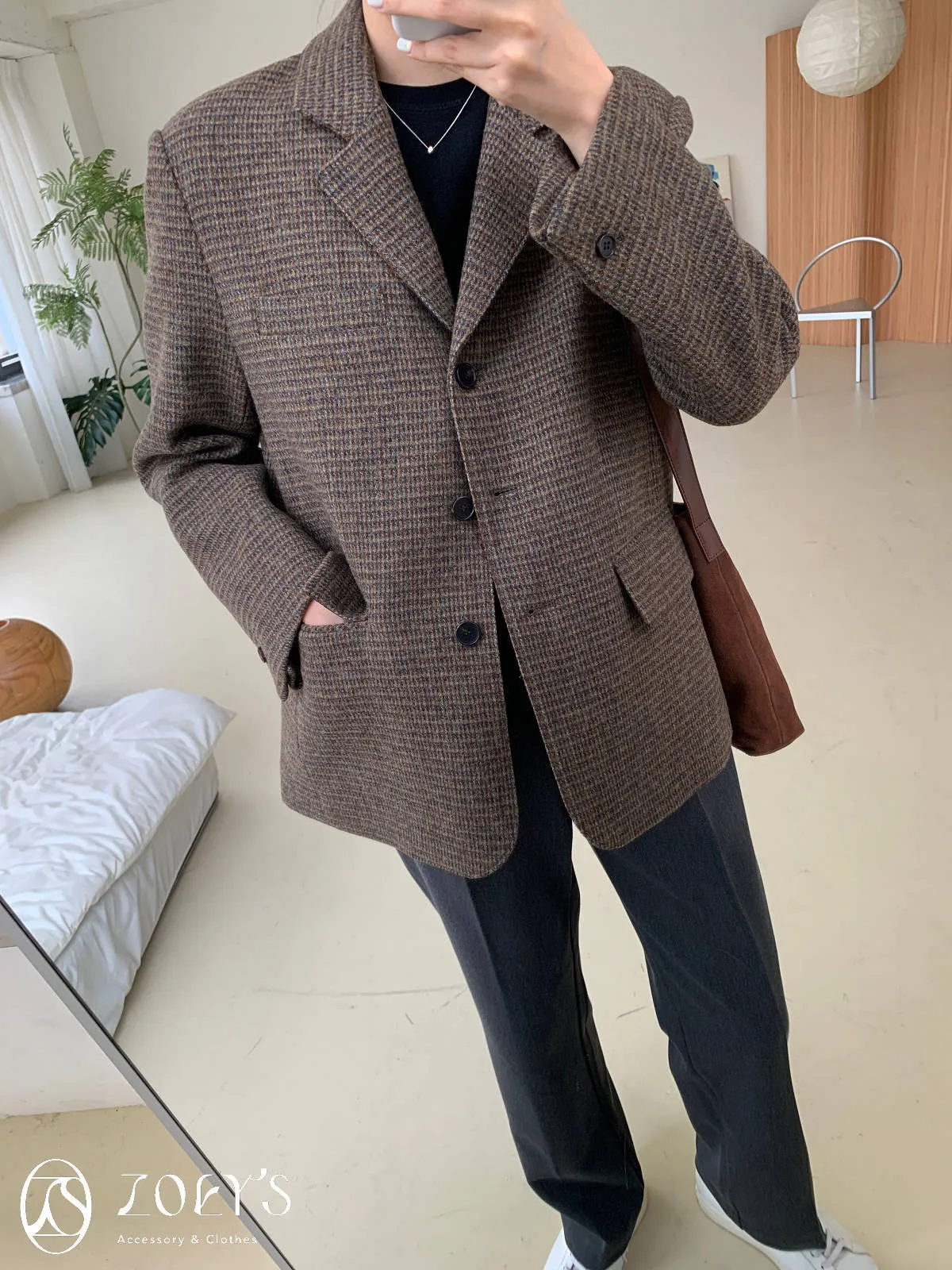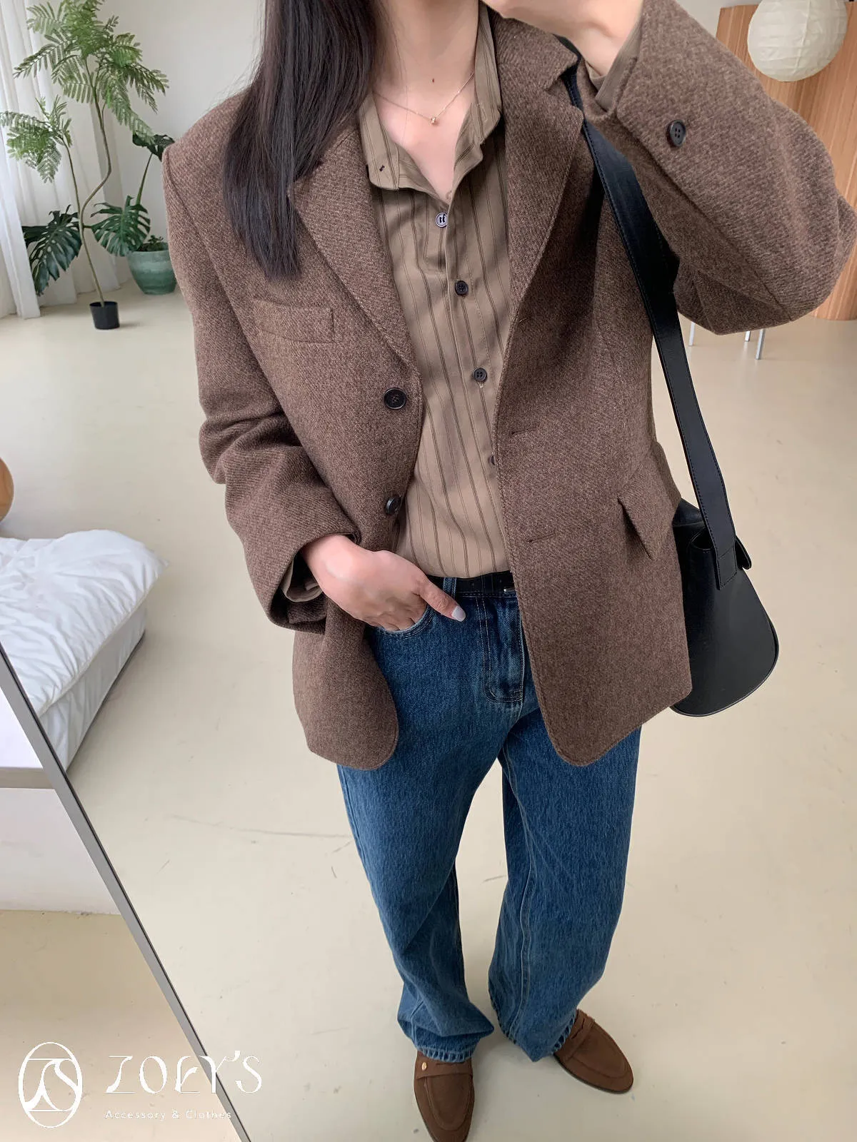 限動大家都喜歡的細格&拍完照立刻愛上的純咖色(其實也不算全素面,是細細的斜紋,穿起來不會覺得呆板)