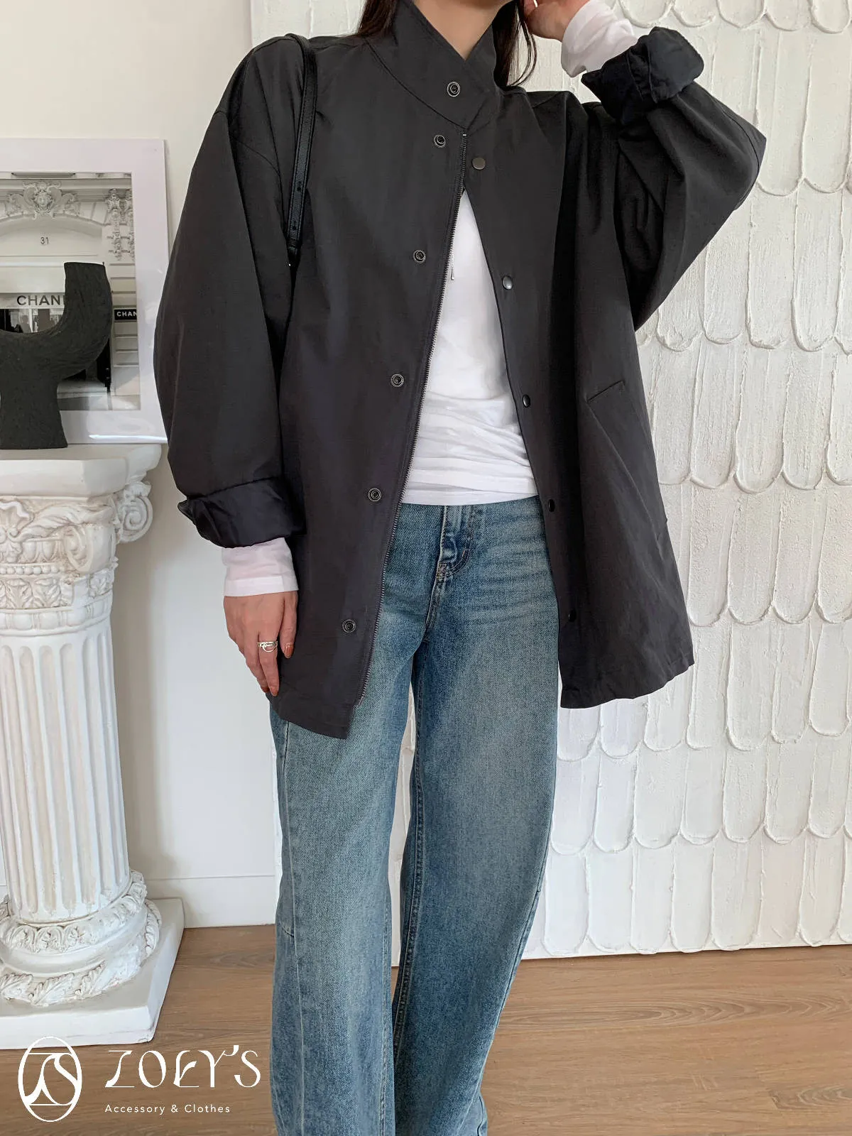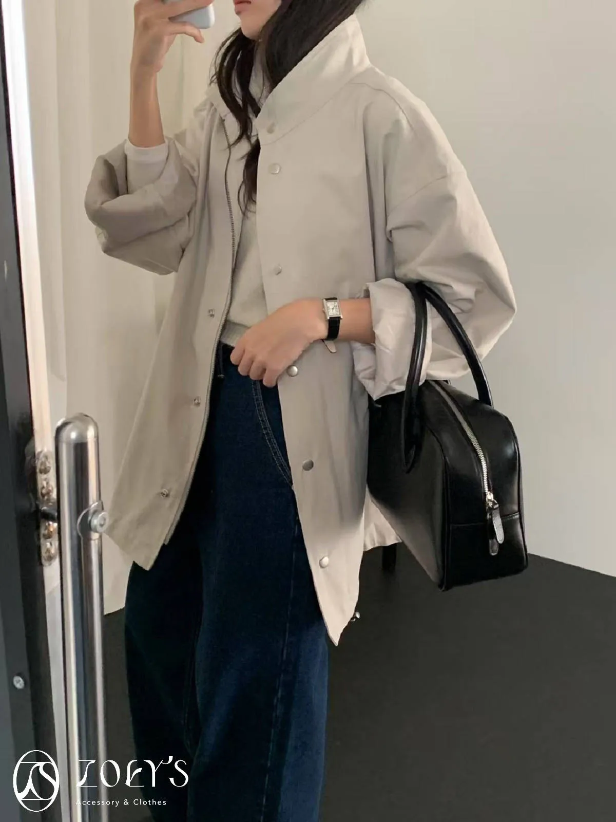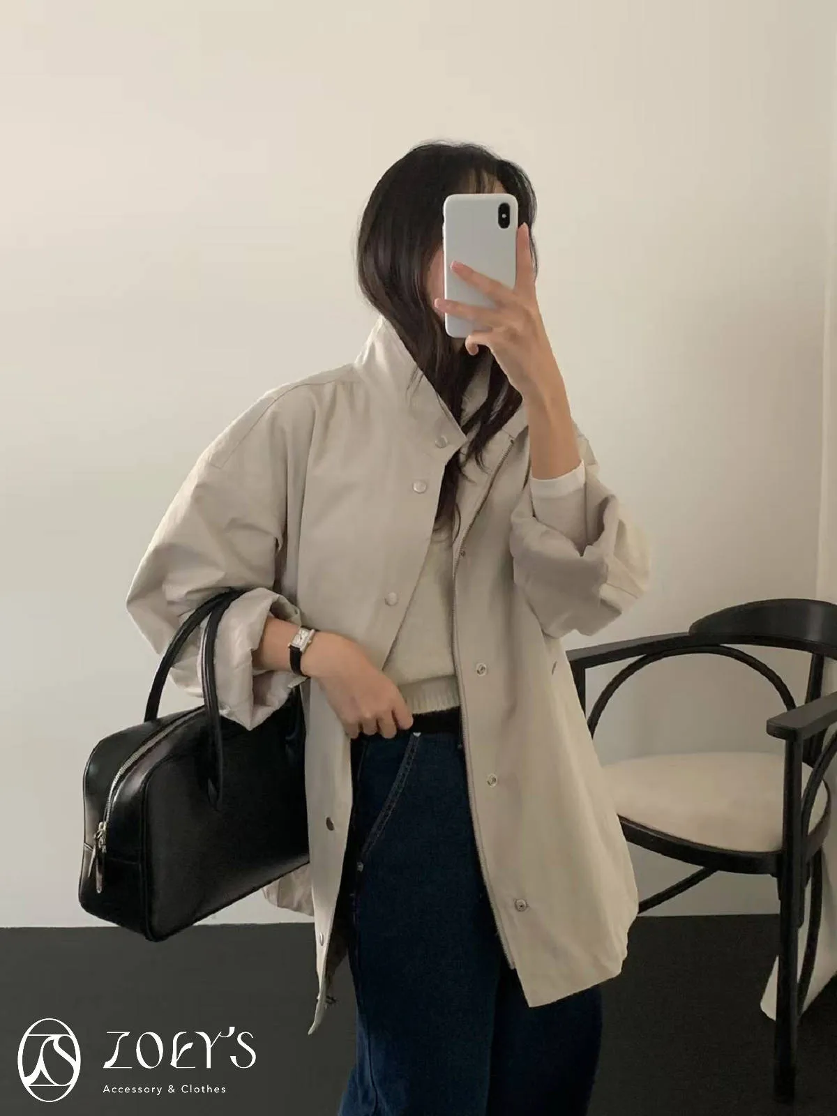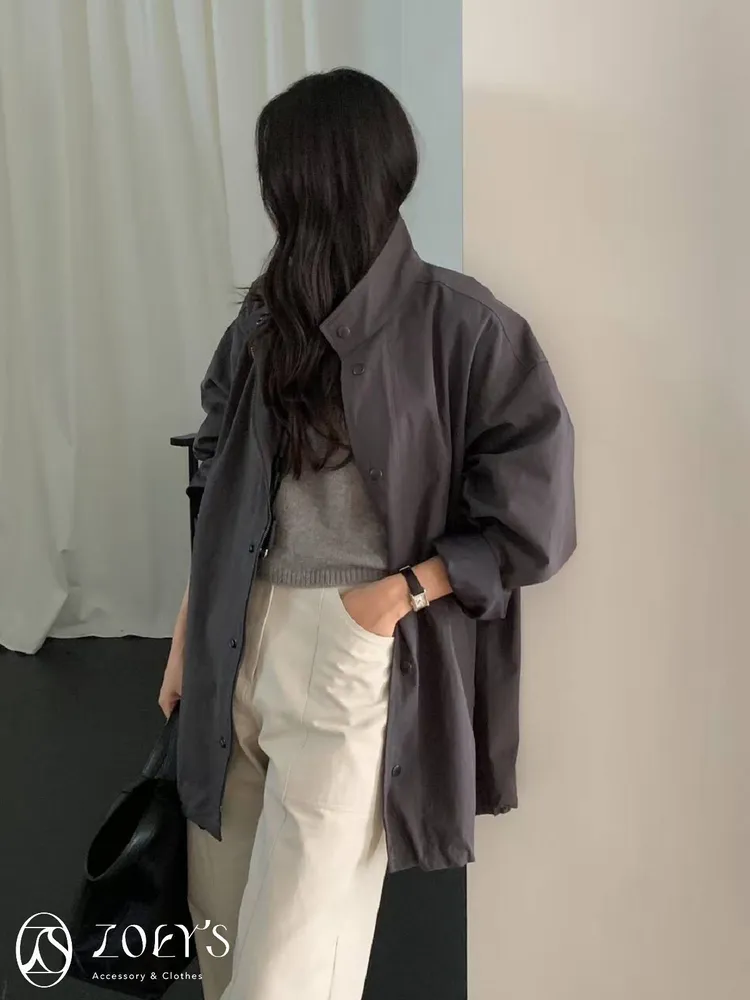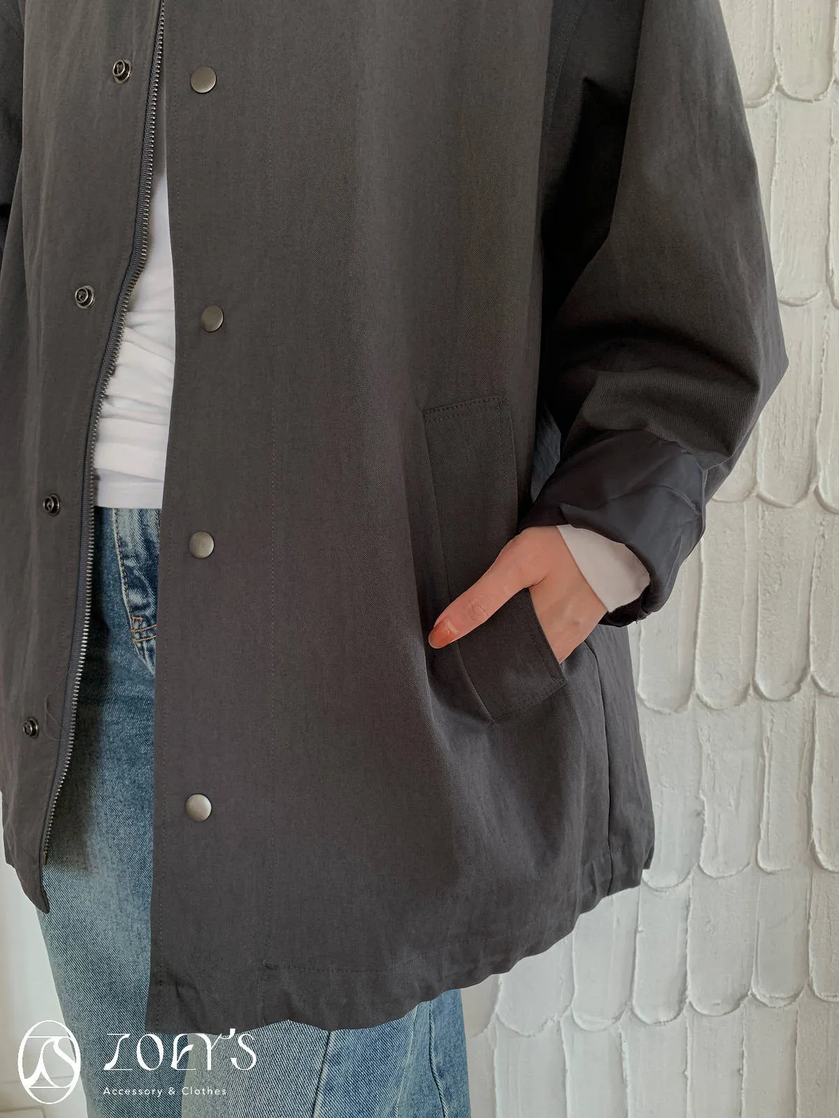 霧銀圓釦完全是我們喜歡的簡約風格呀!加上拉鍊防風效果更好