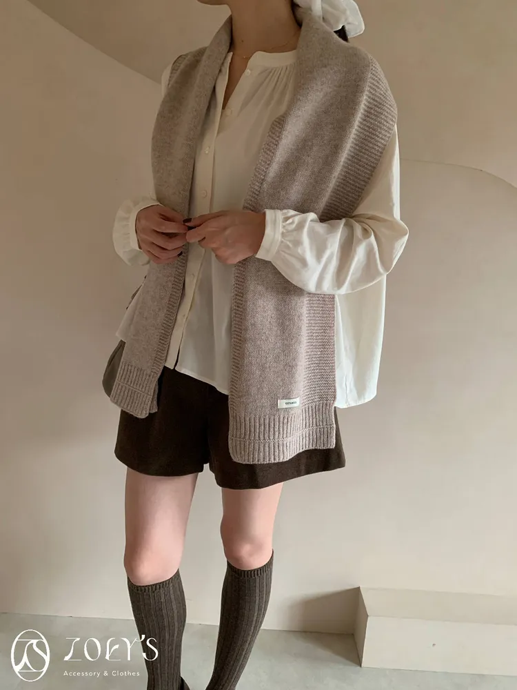 正韓 100%羊毛織紋圍巾 咖/灰/燕麥