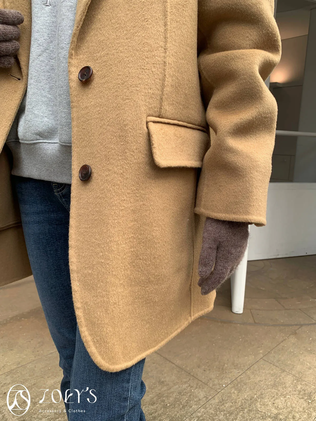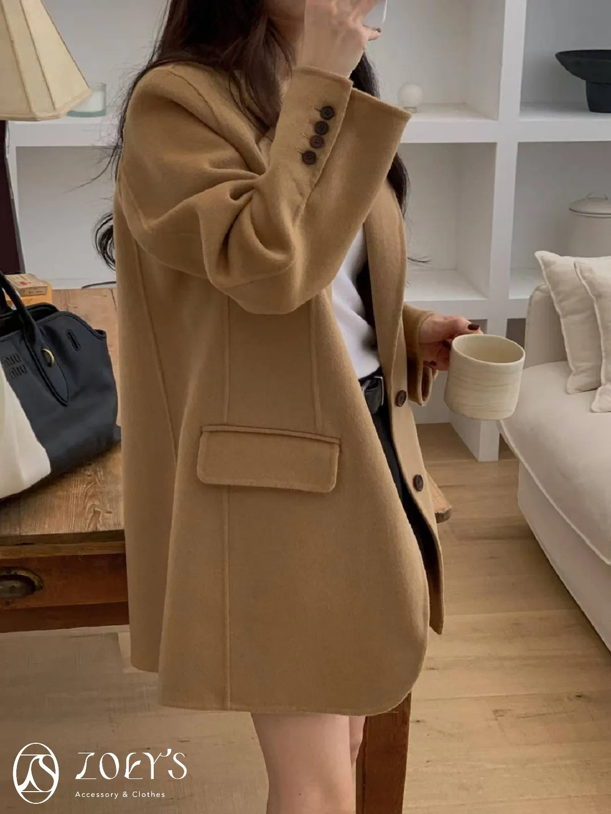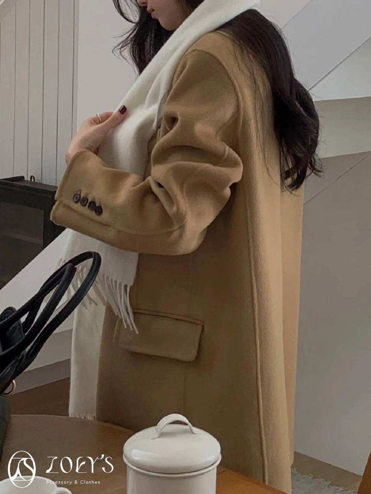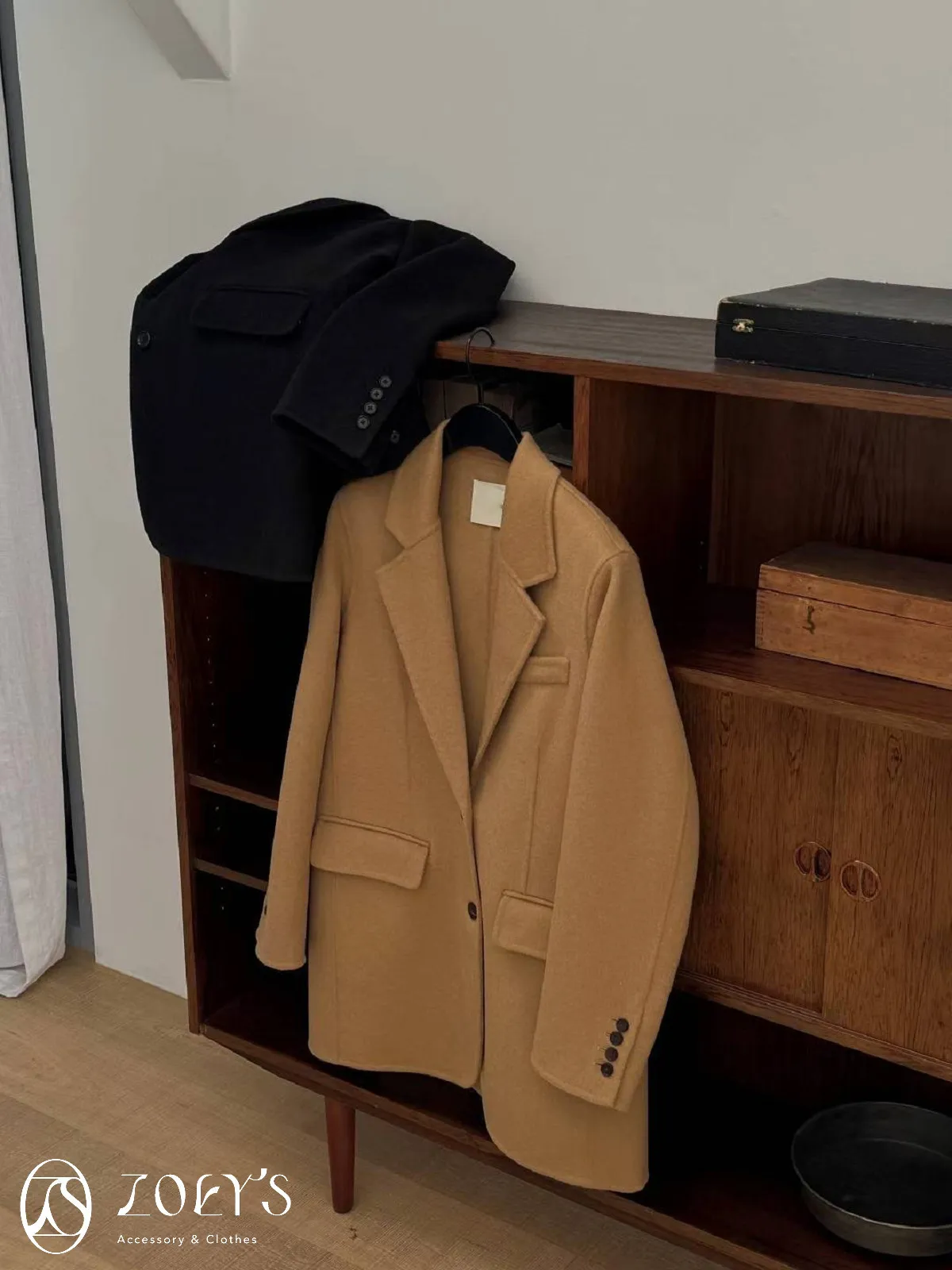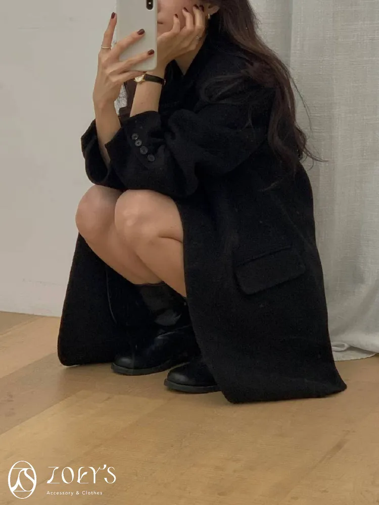 正韓 100%喀什米爾手工羊毛西裝大衣 黑/駝
