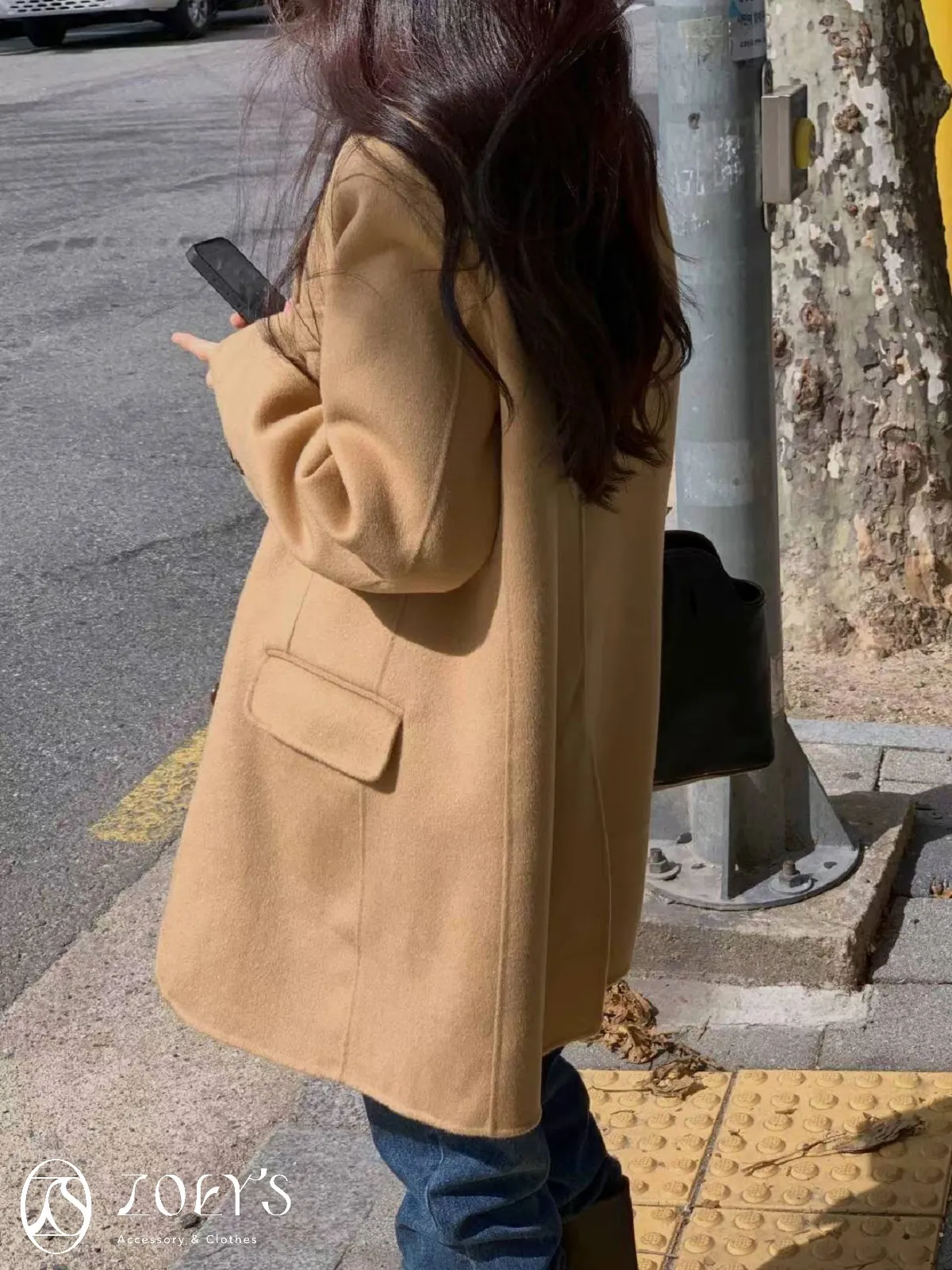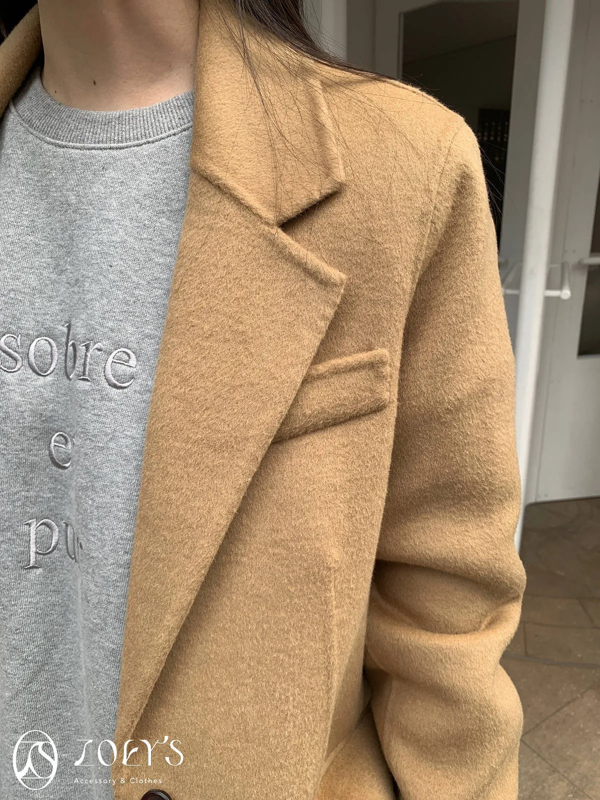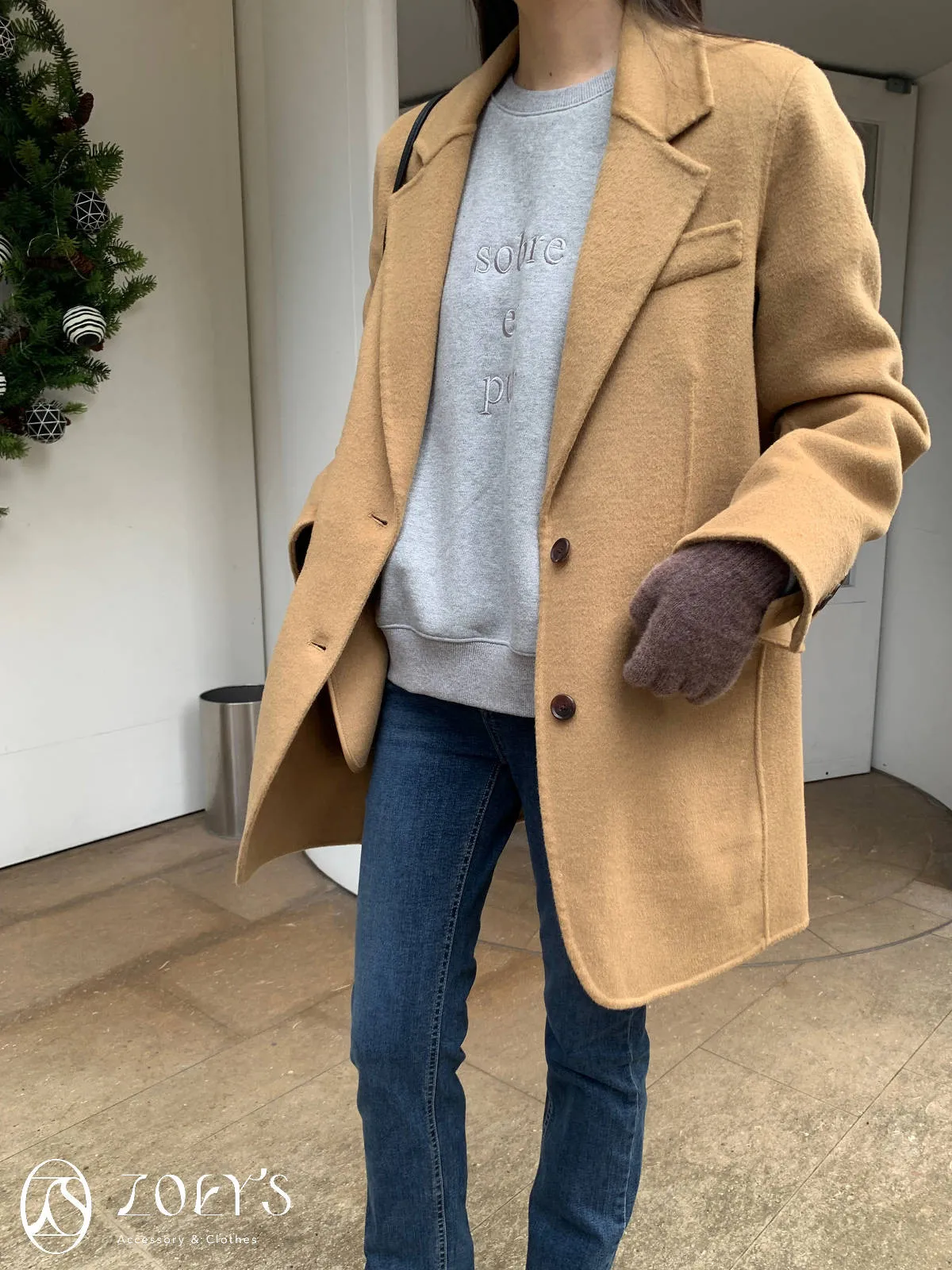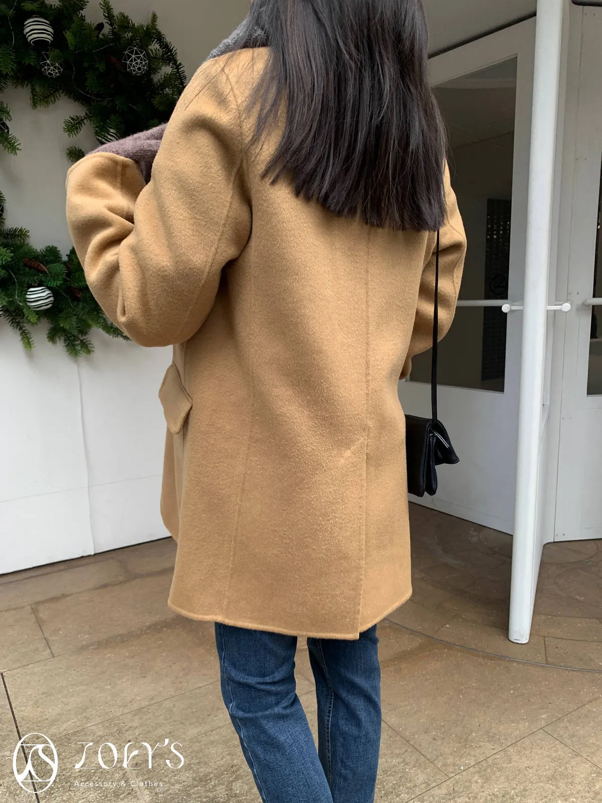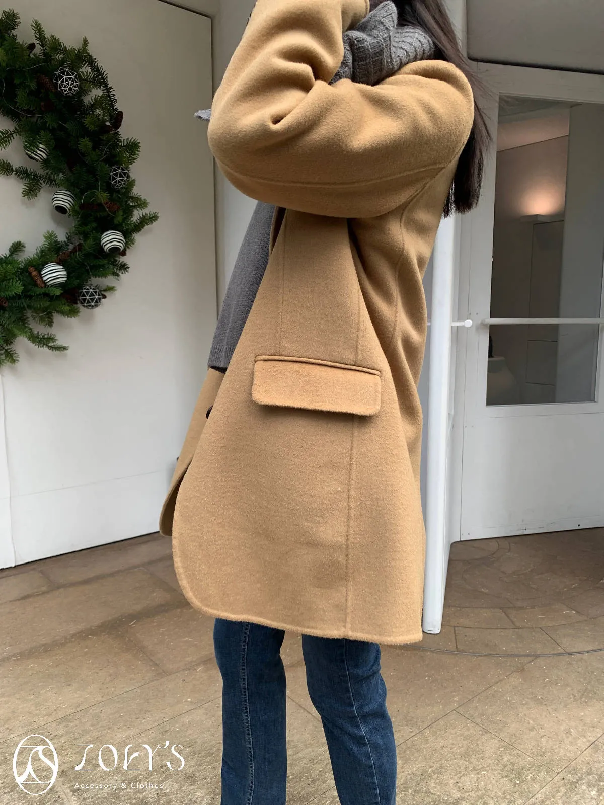 正韓 100%喀什米爾手工羊毛西裝大衣 黑/駝