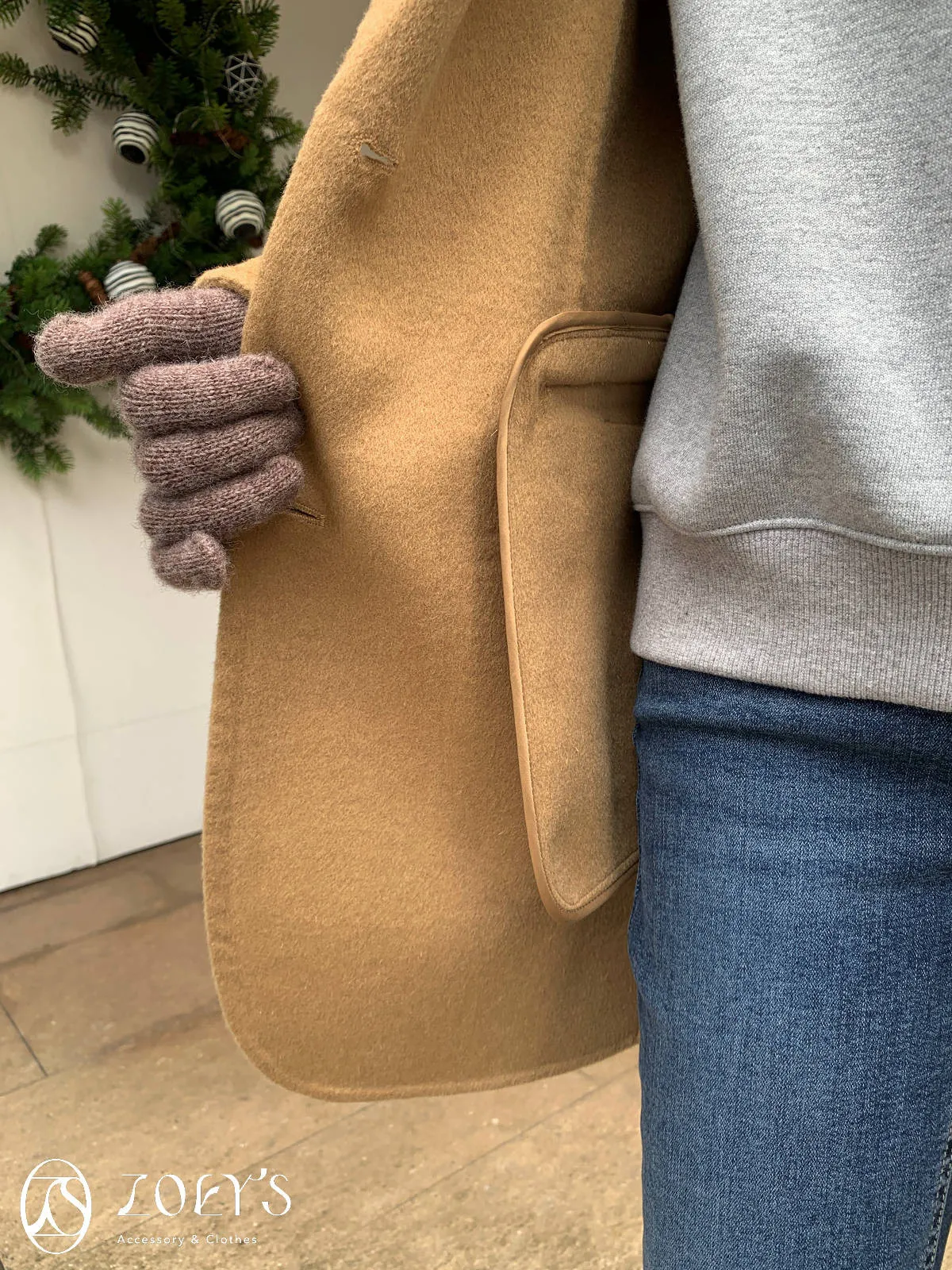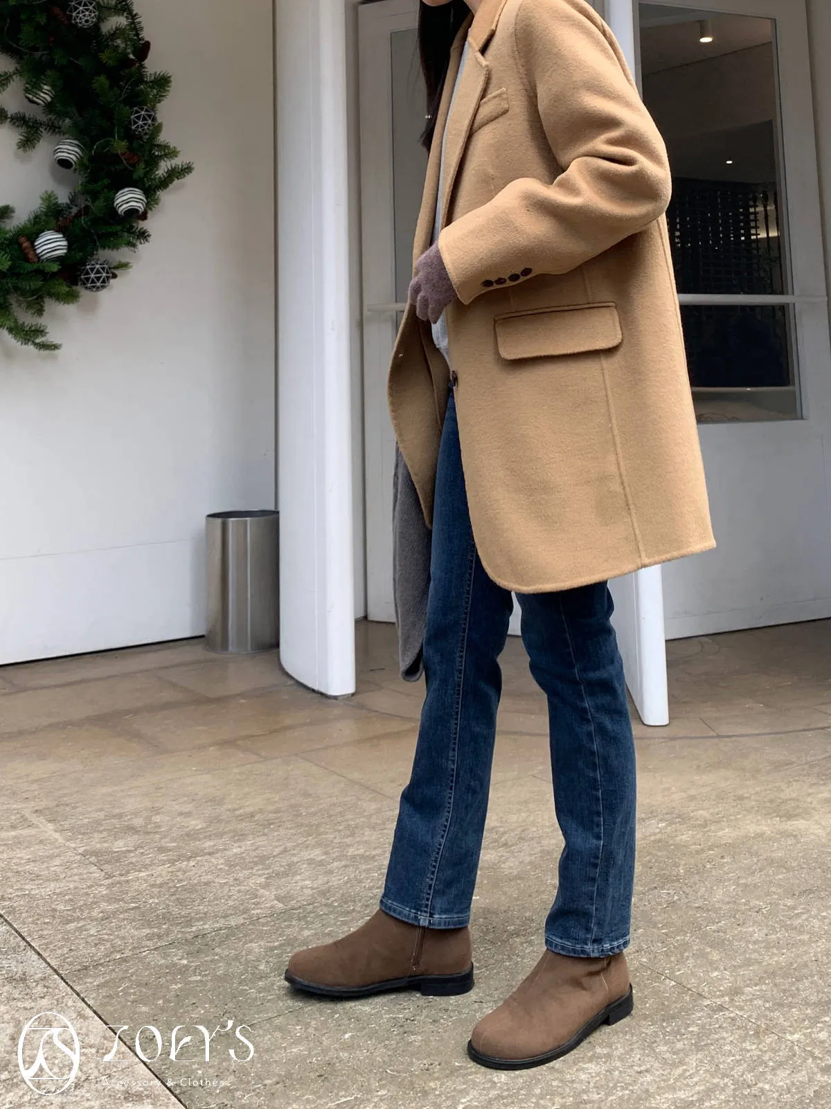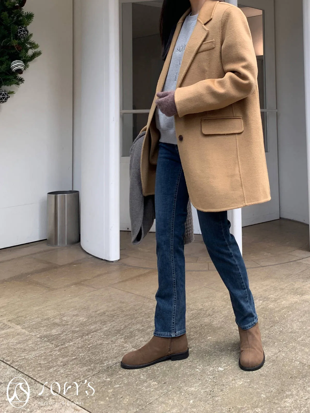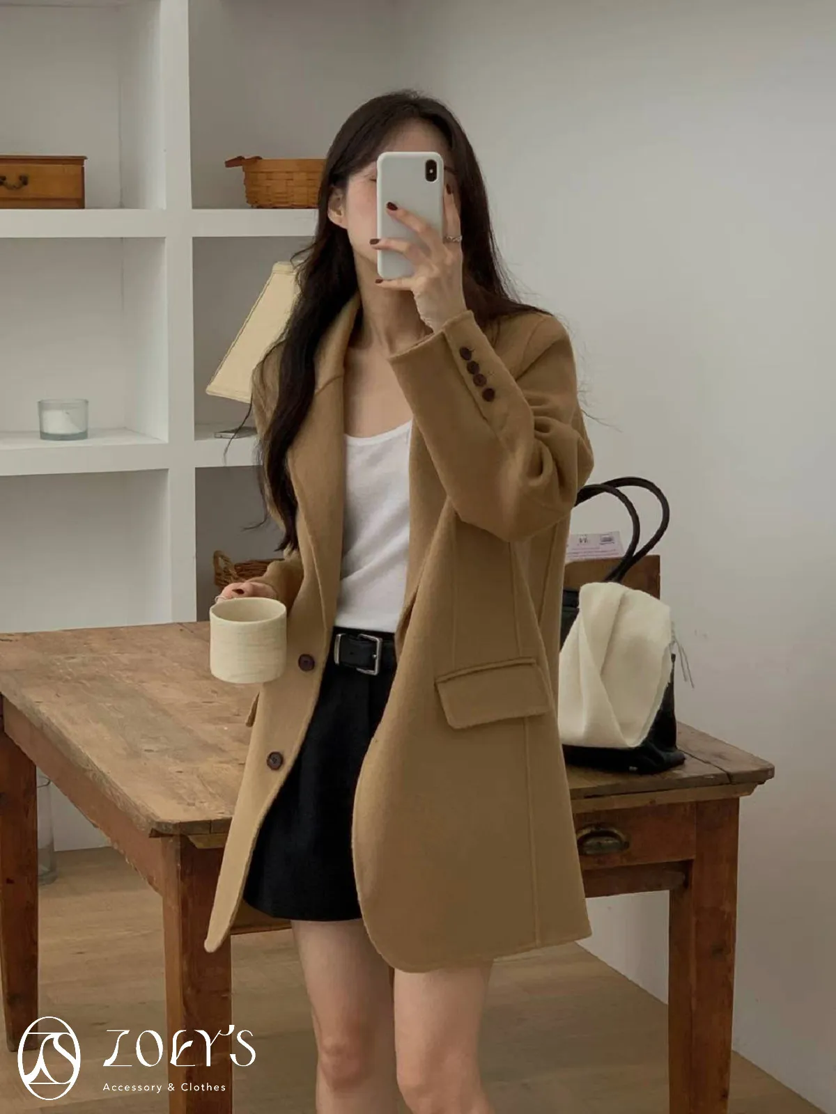 正韓 100%喀什米爾手工羊毛西裝大衣 黑/駝