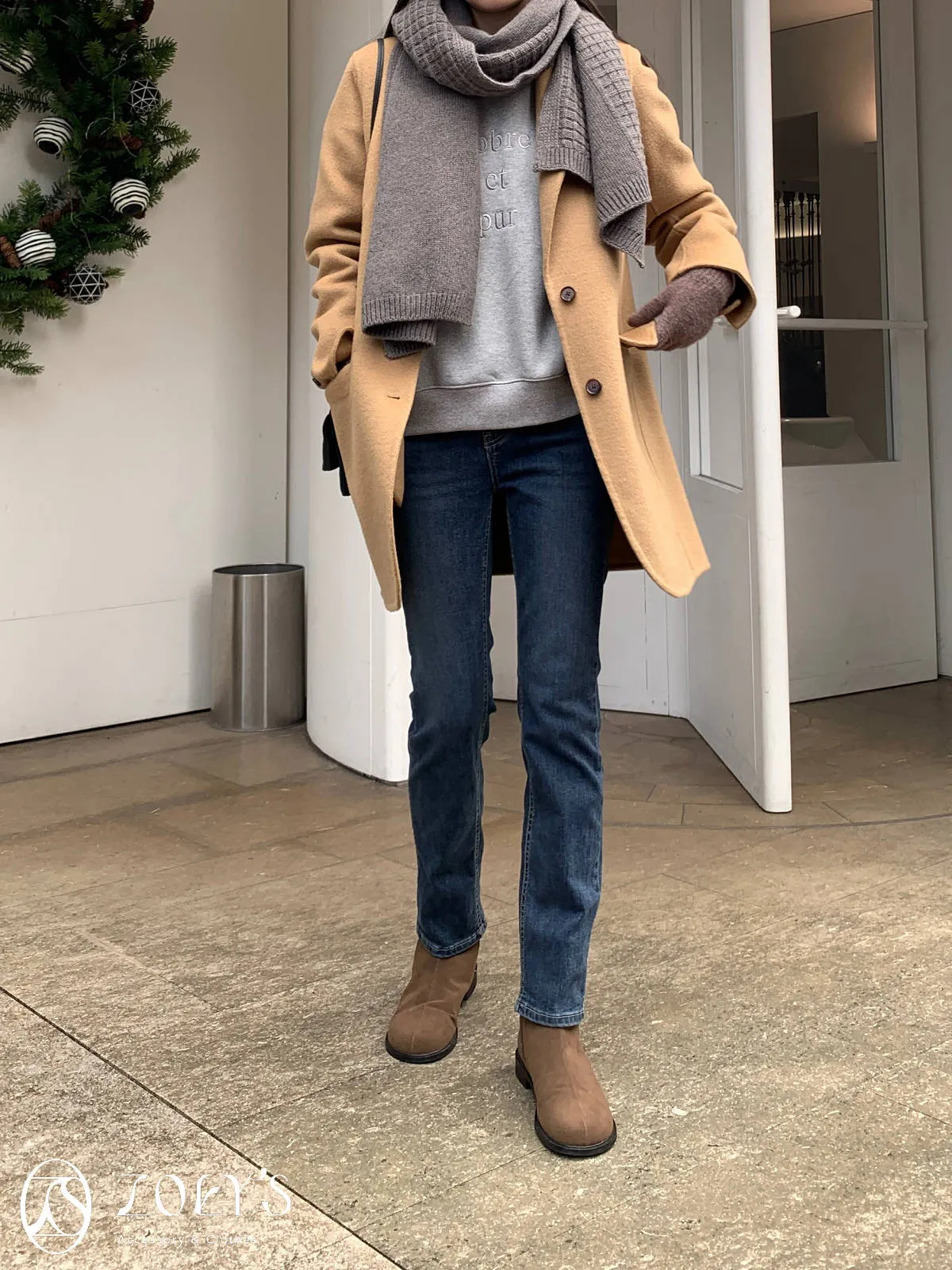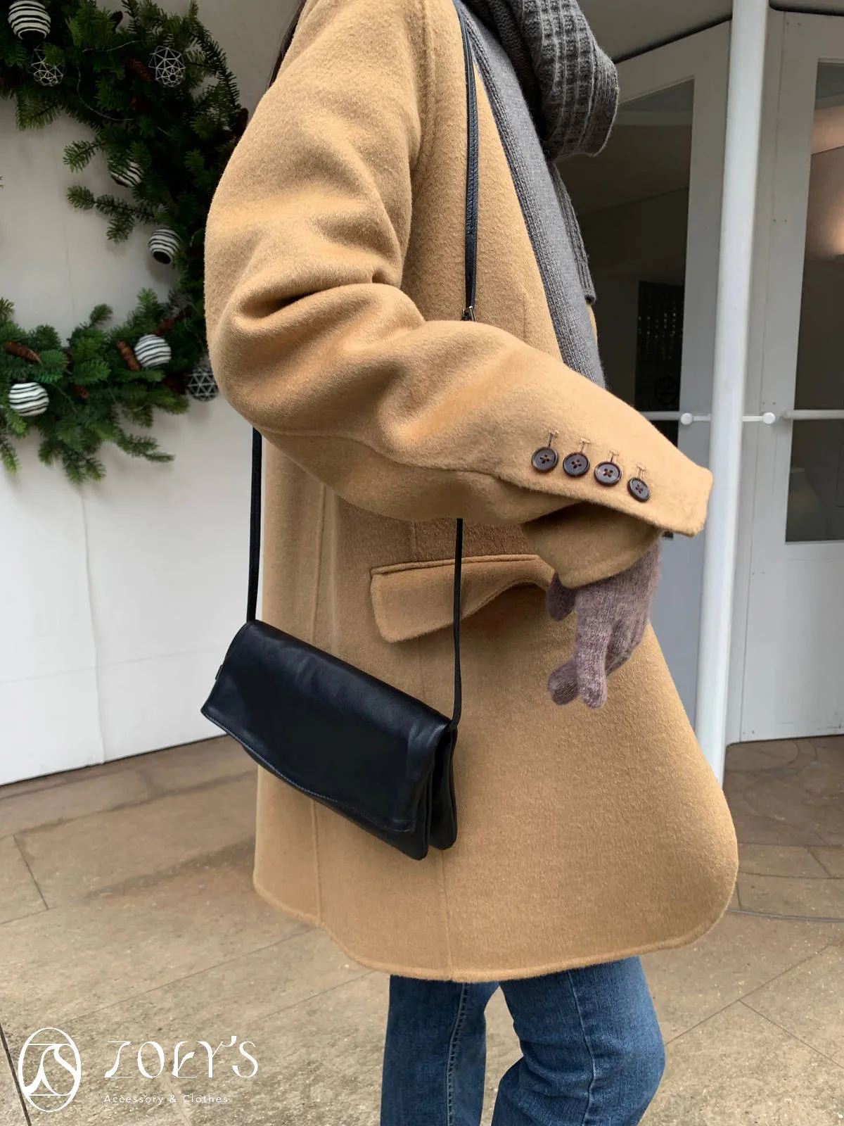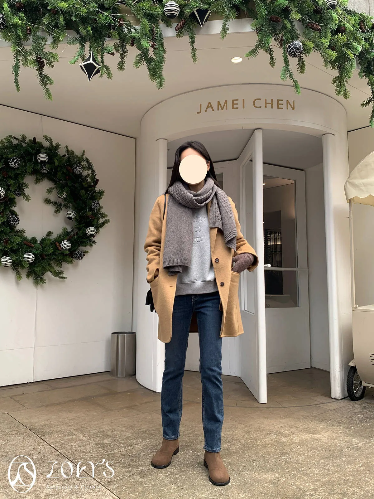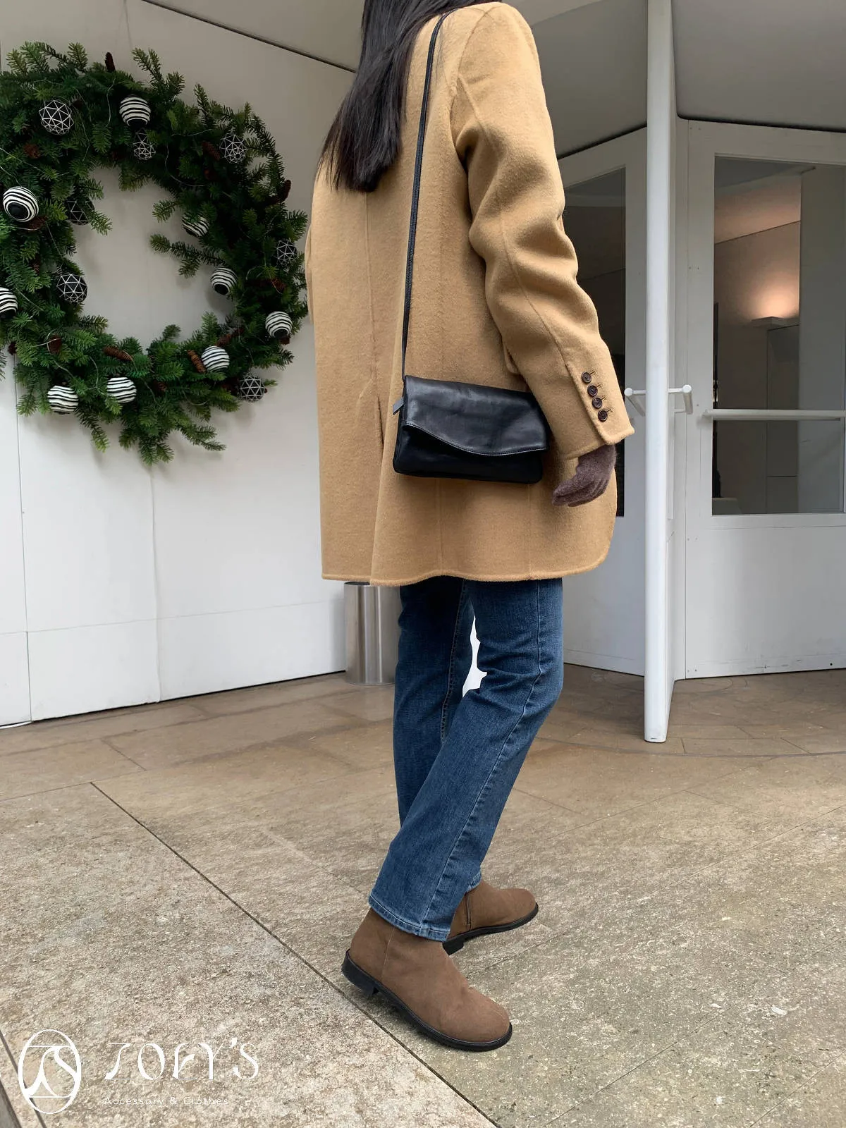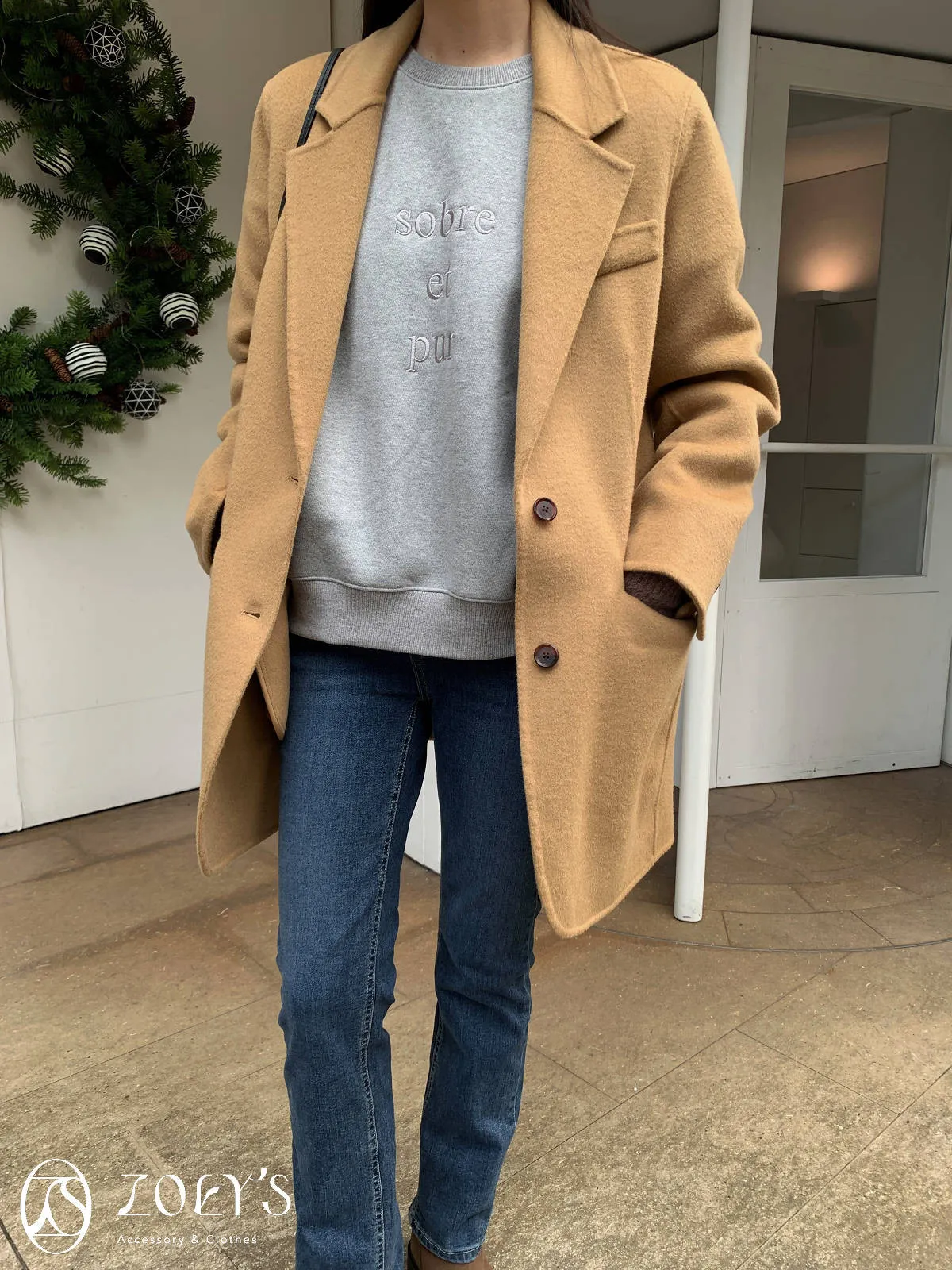 正韓 100%喀什米爾手工羊毛西裝大衣 黑/駝