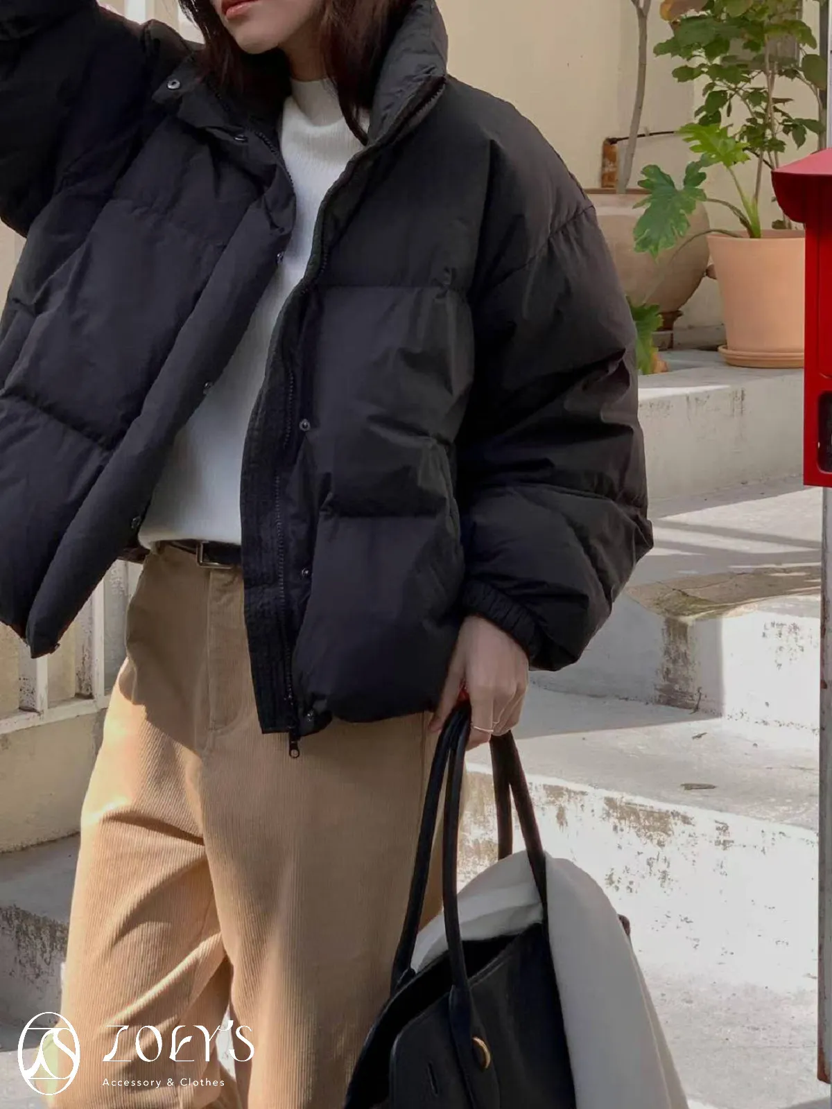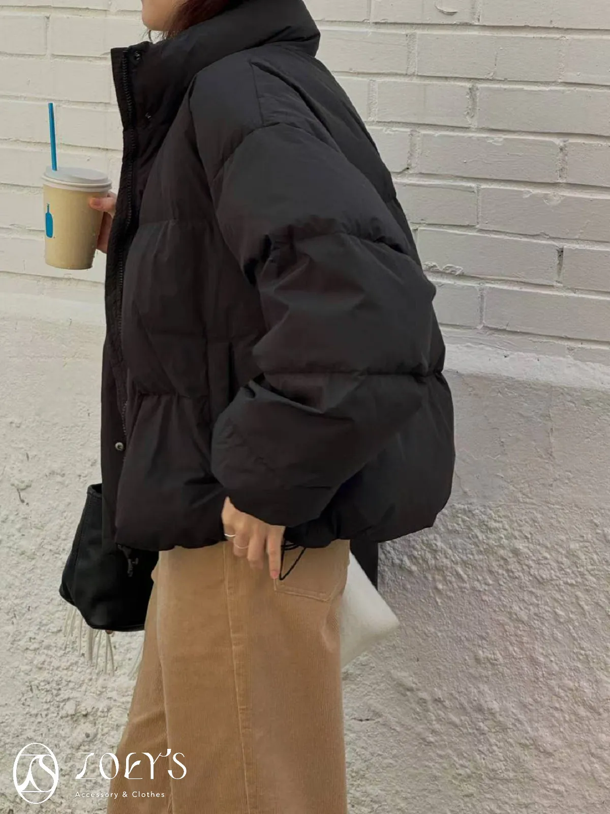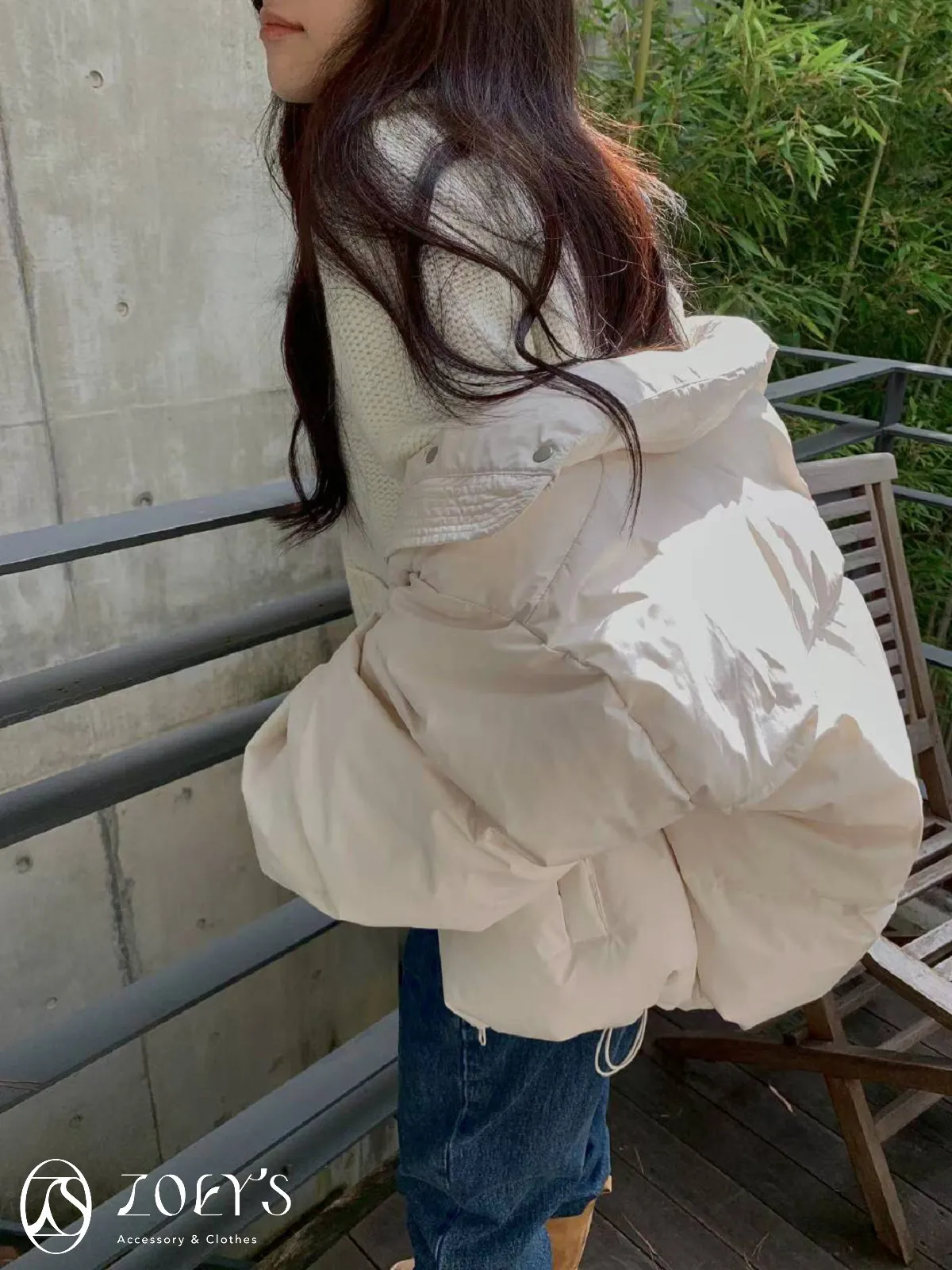 正韓 拉鍊圓扣90%鴨絨外套 黑/米/藍