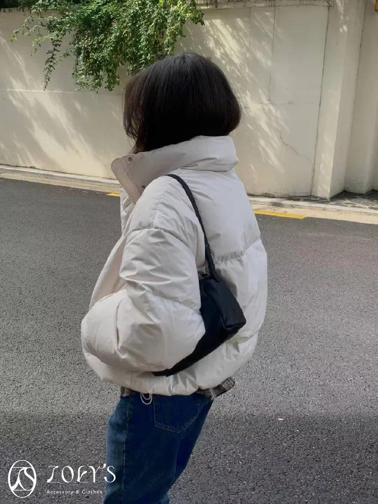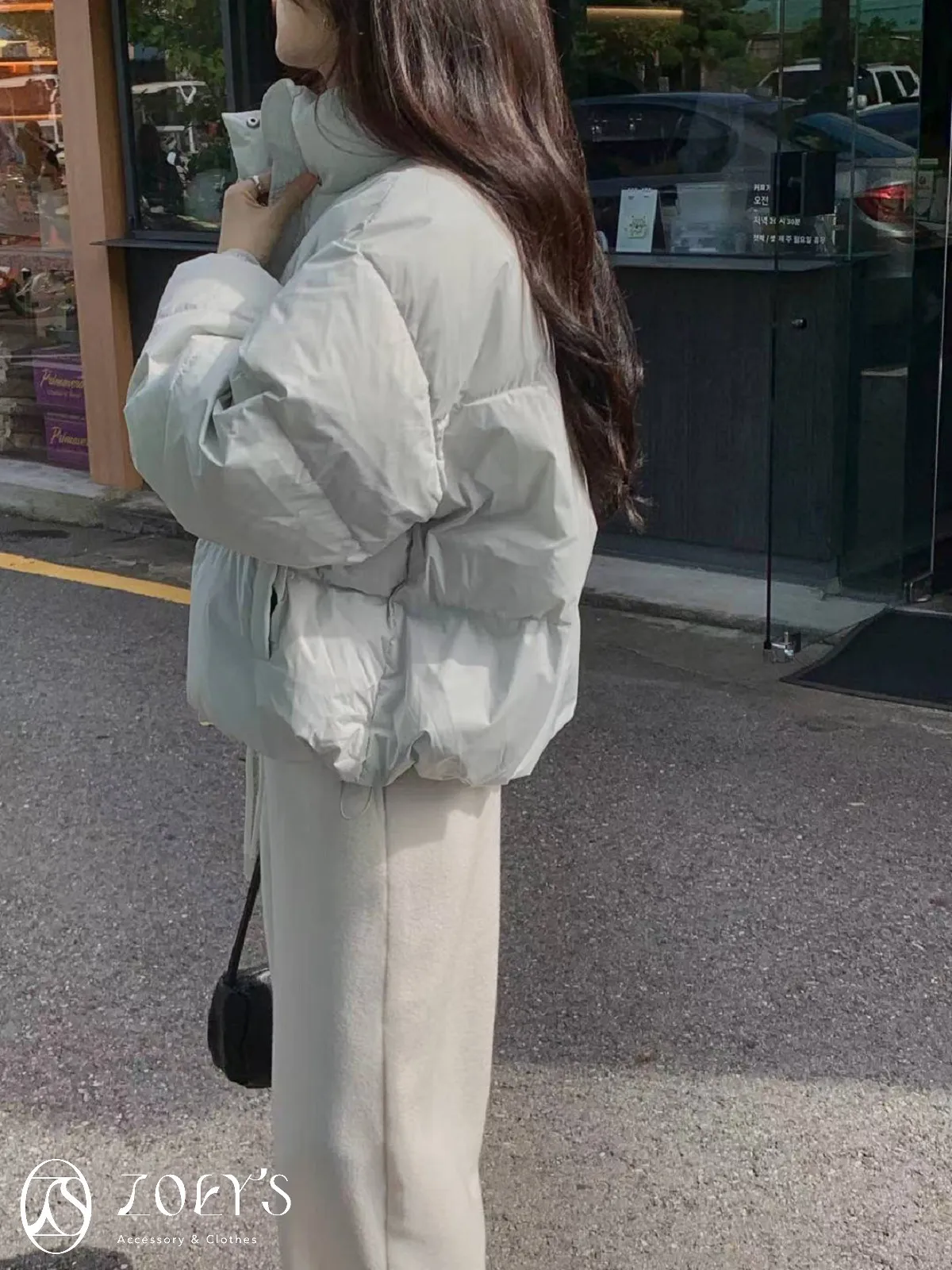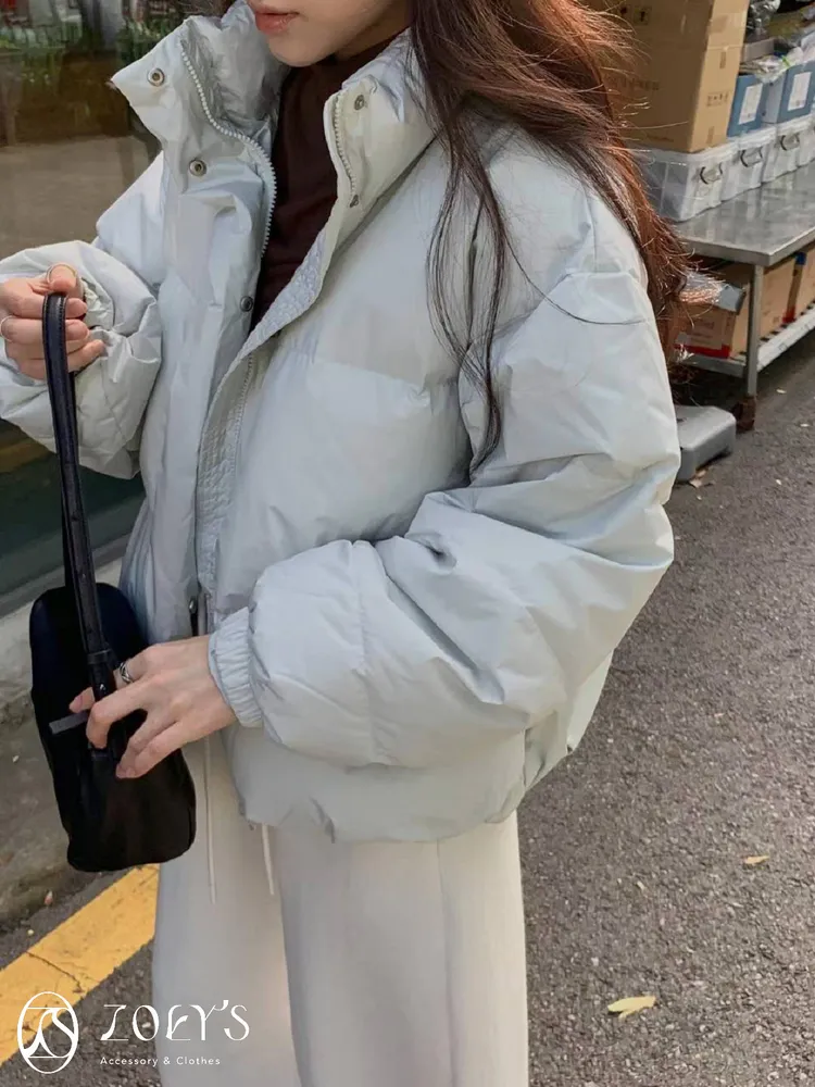 正韓 拉鍊圓扣90%鴨絨外套 黑/米/藍