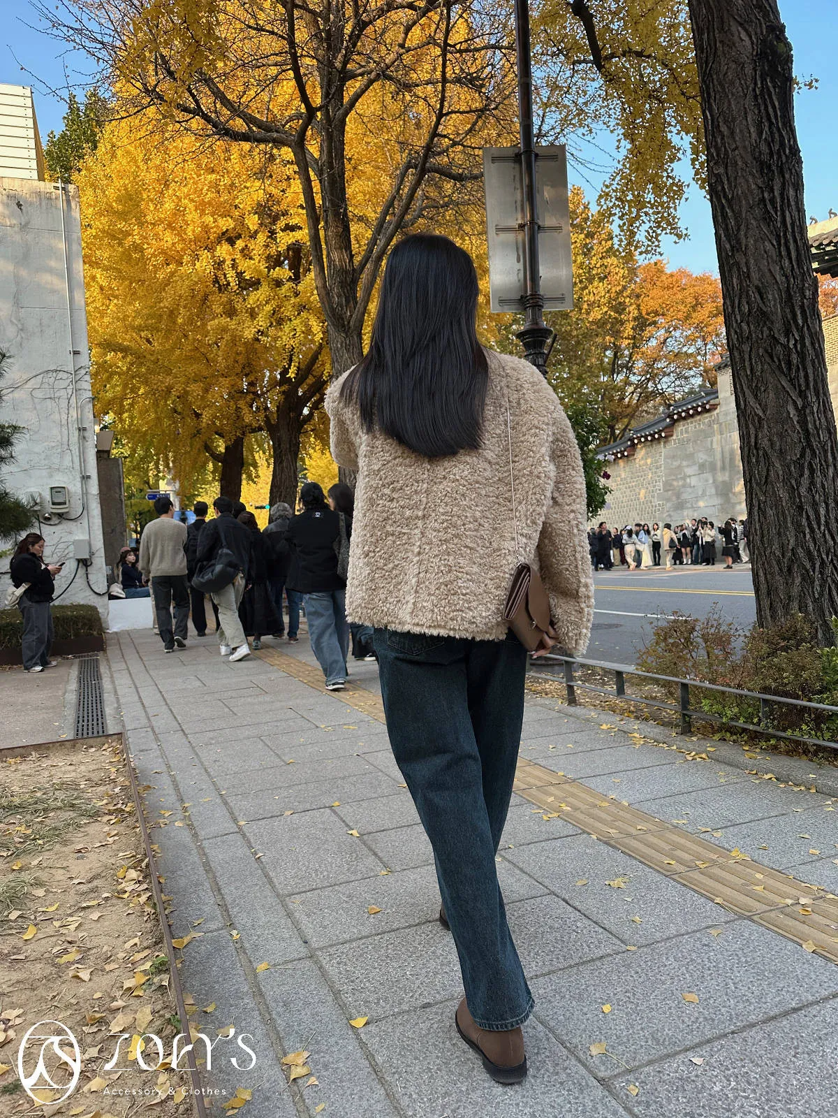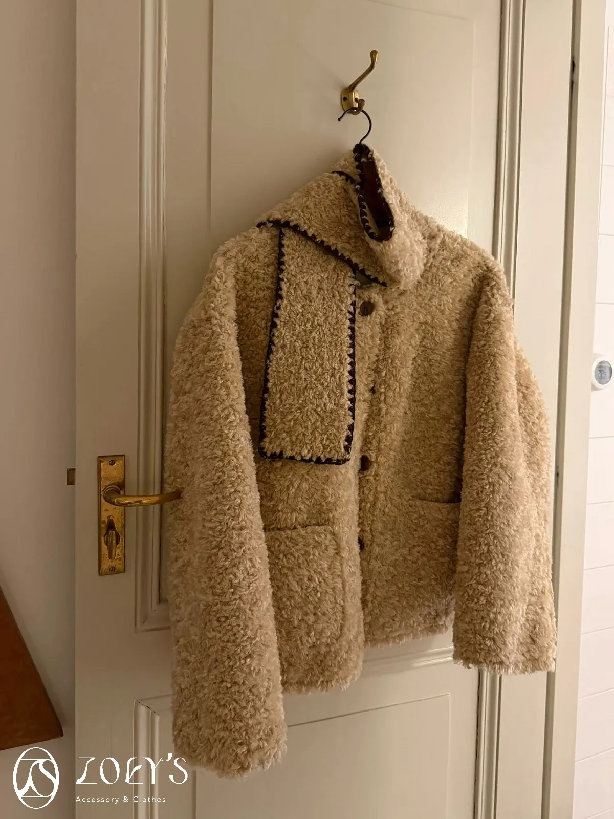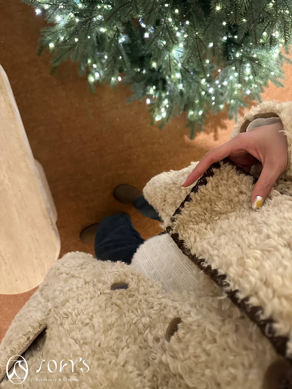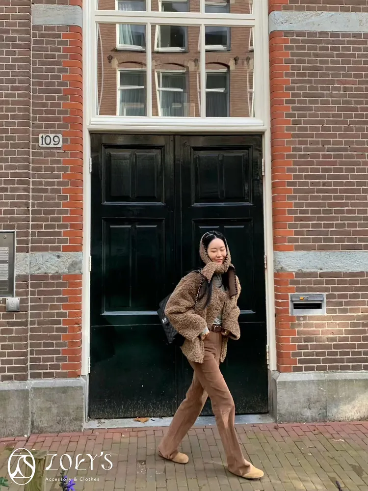 正韓 泰迪毛毛外套&圍巾SET 綠咖/卡其