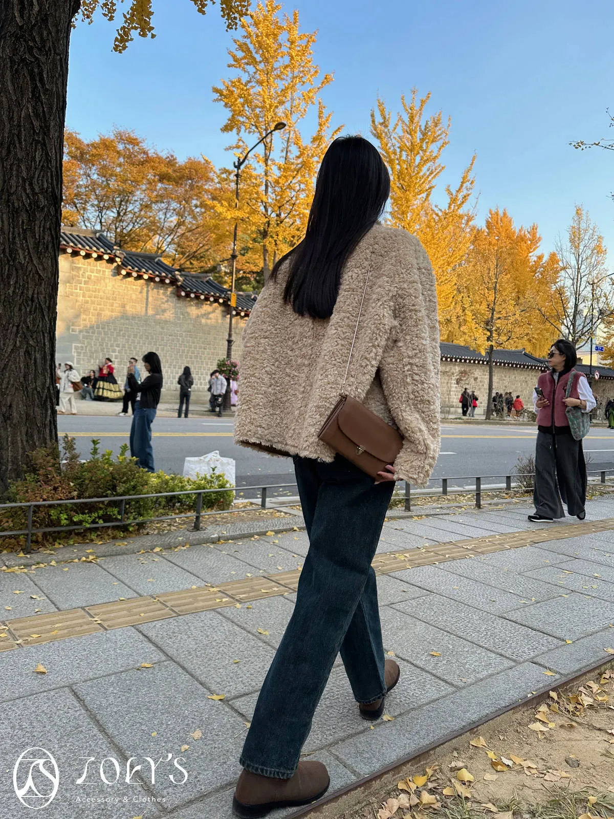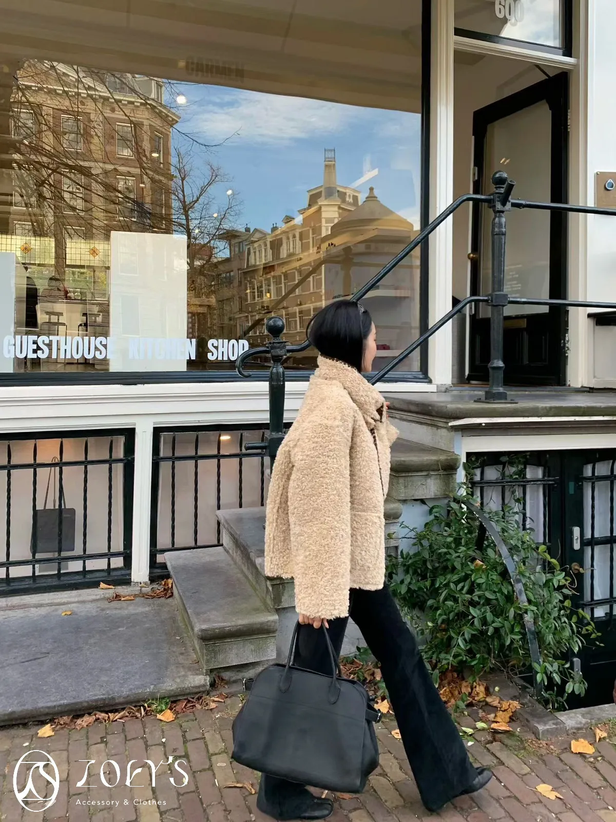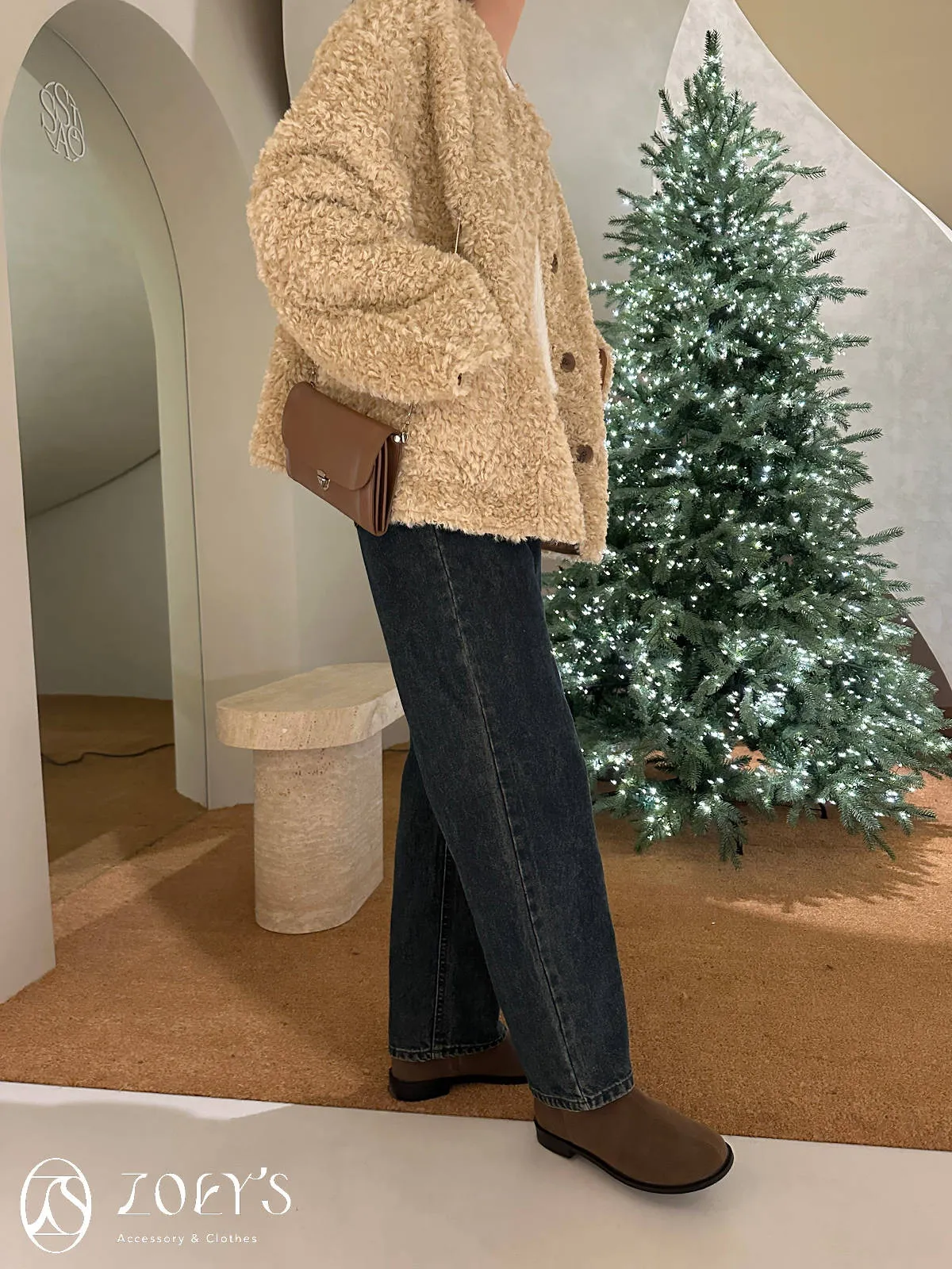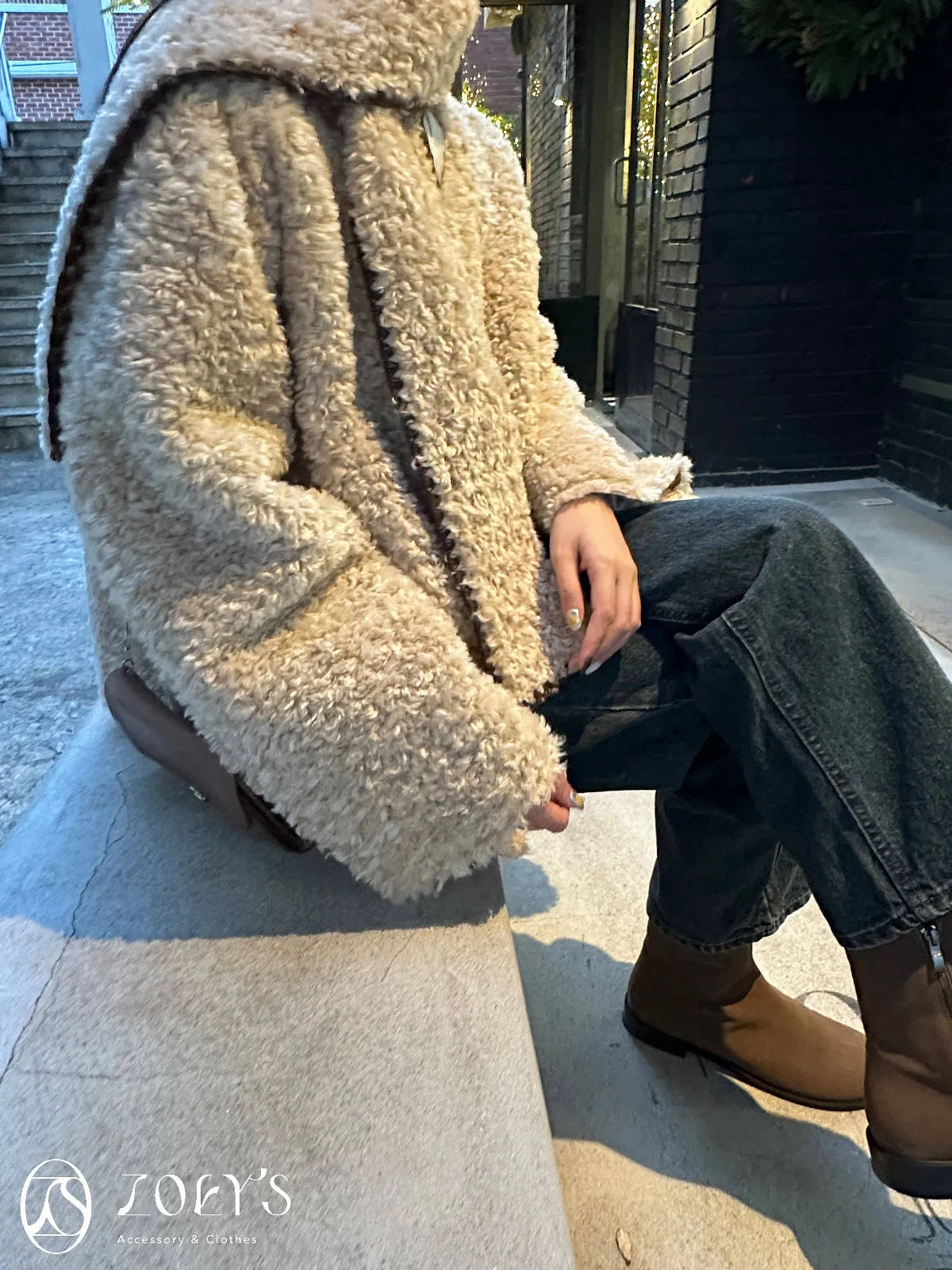 正韓 泰迪毛毛外套&圍巾SET 綠咖/卡其