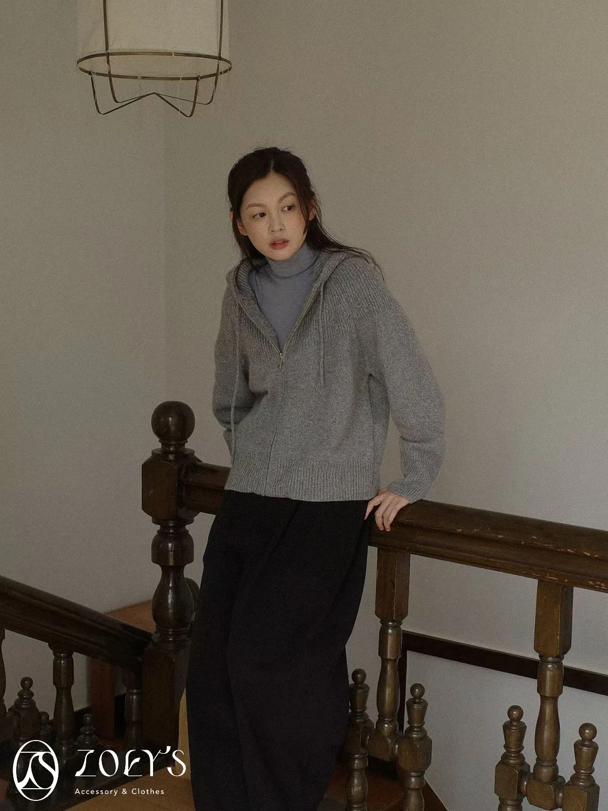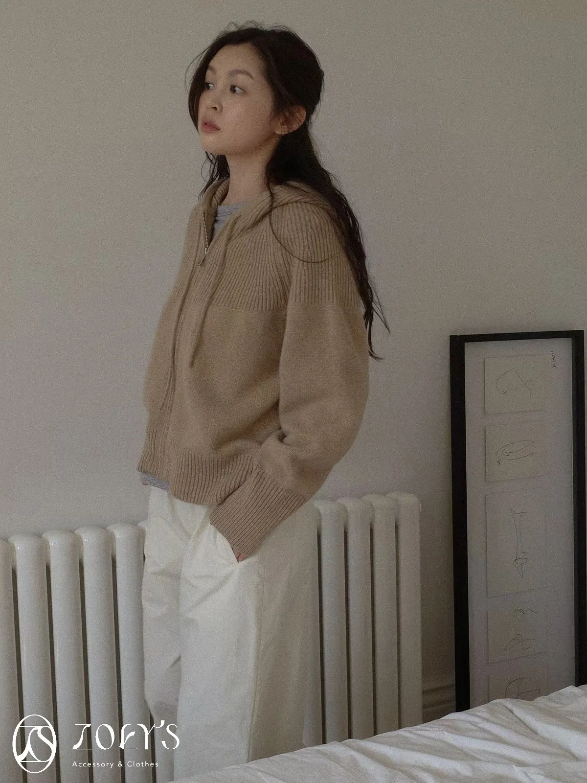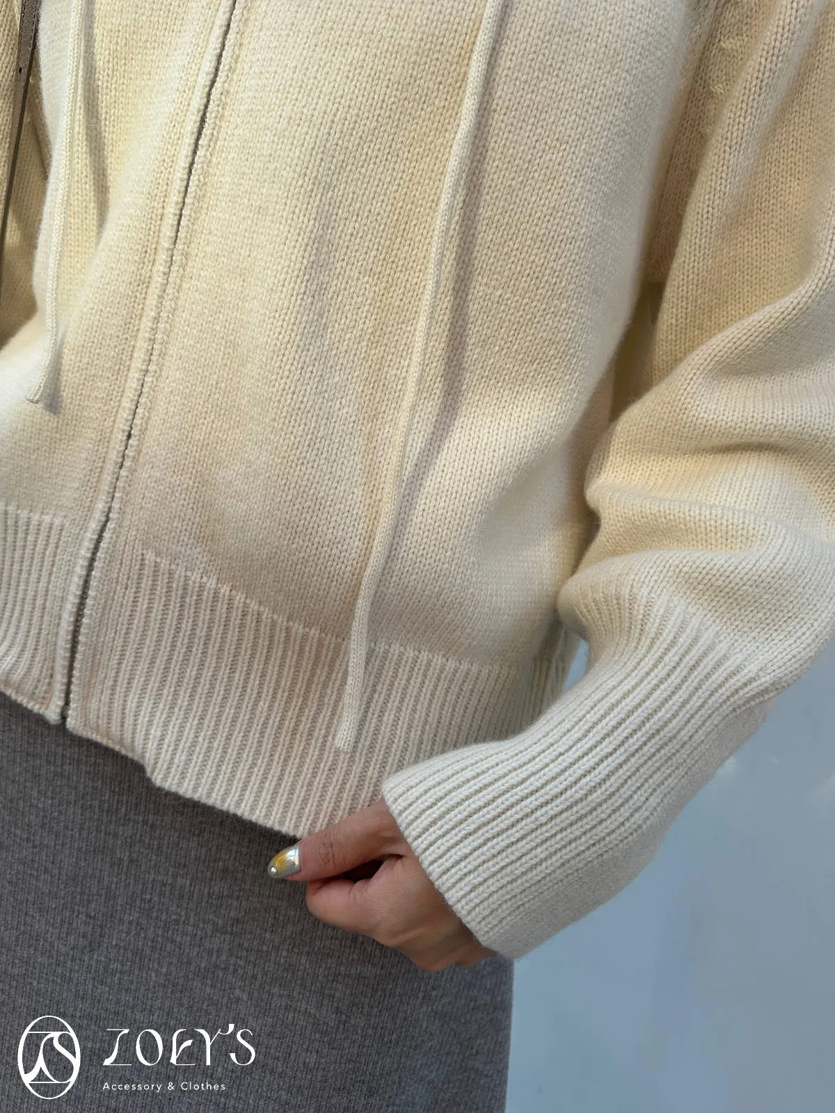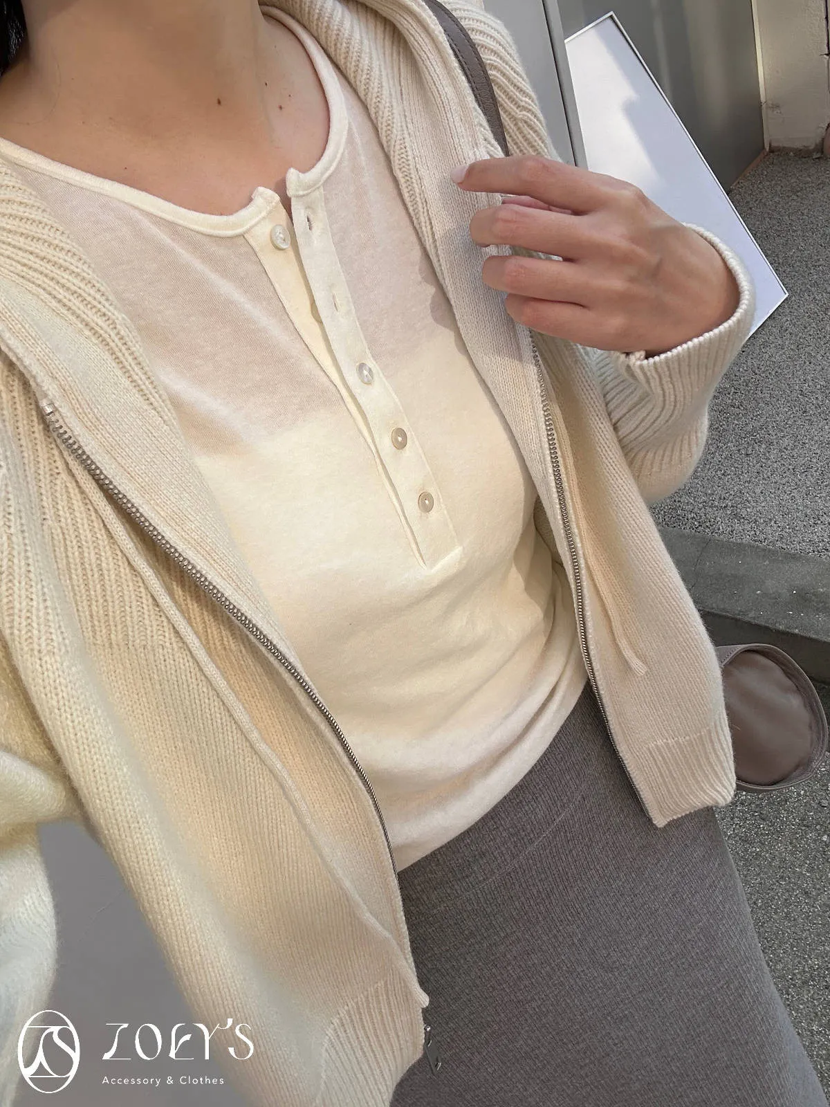 正韓 織紋連帽拉鍊羊毛外套 灰/駝/米