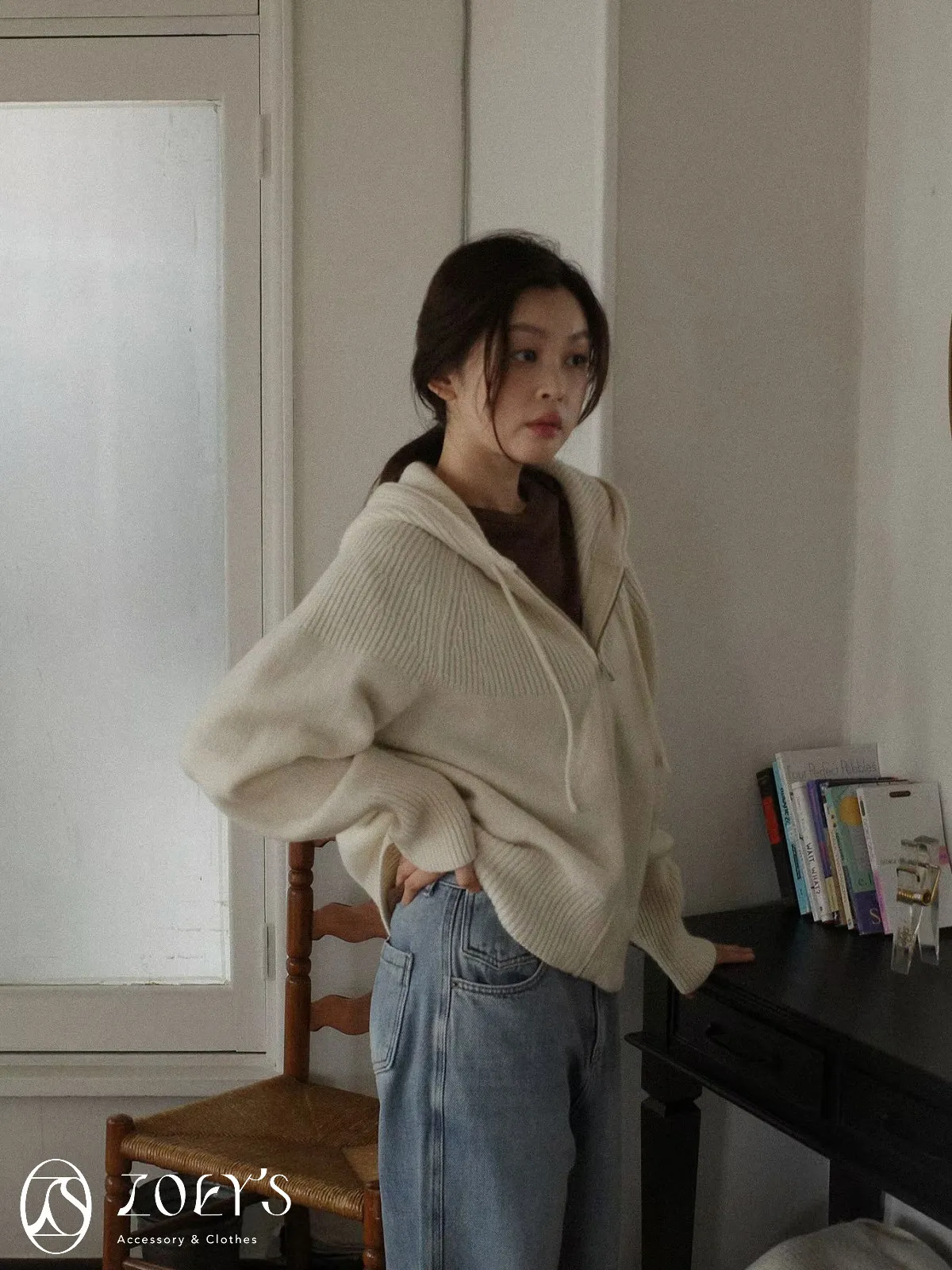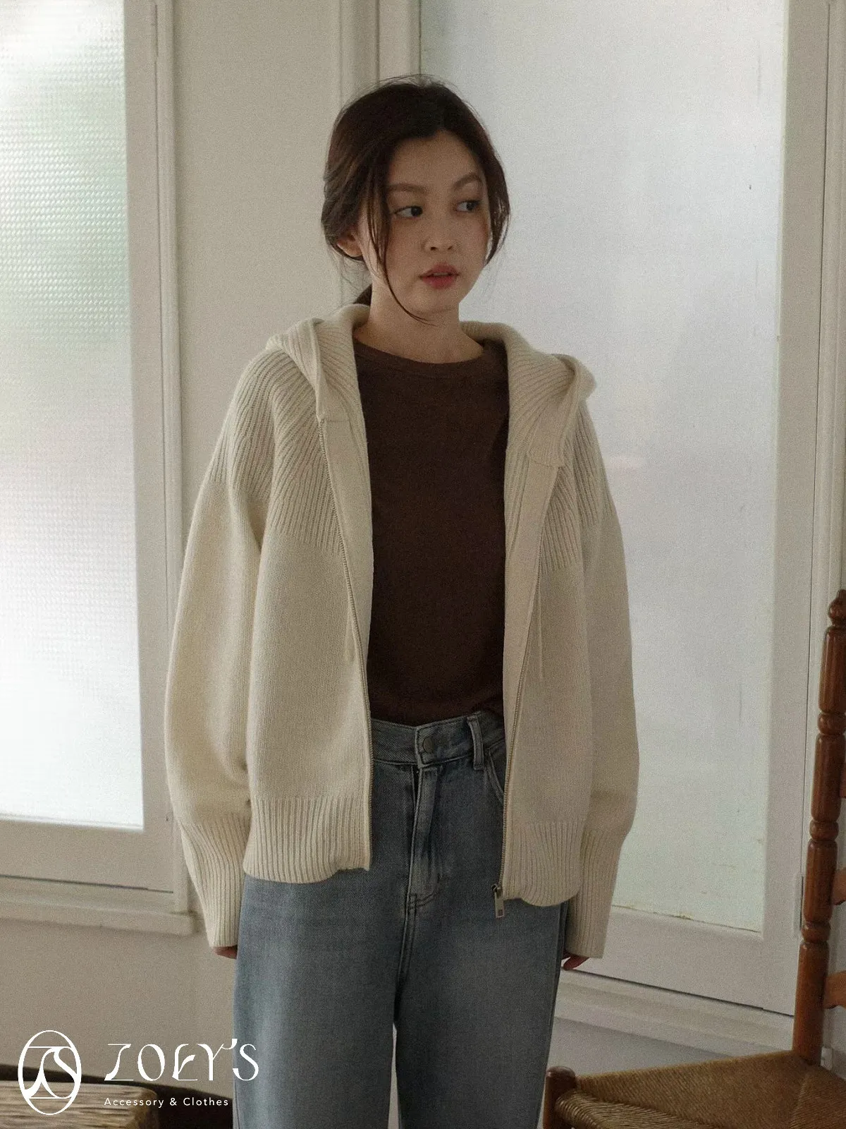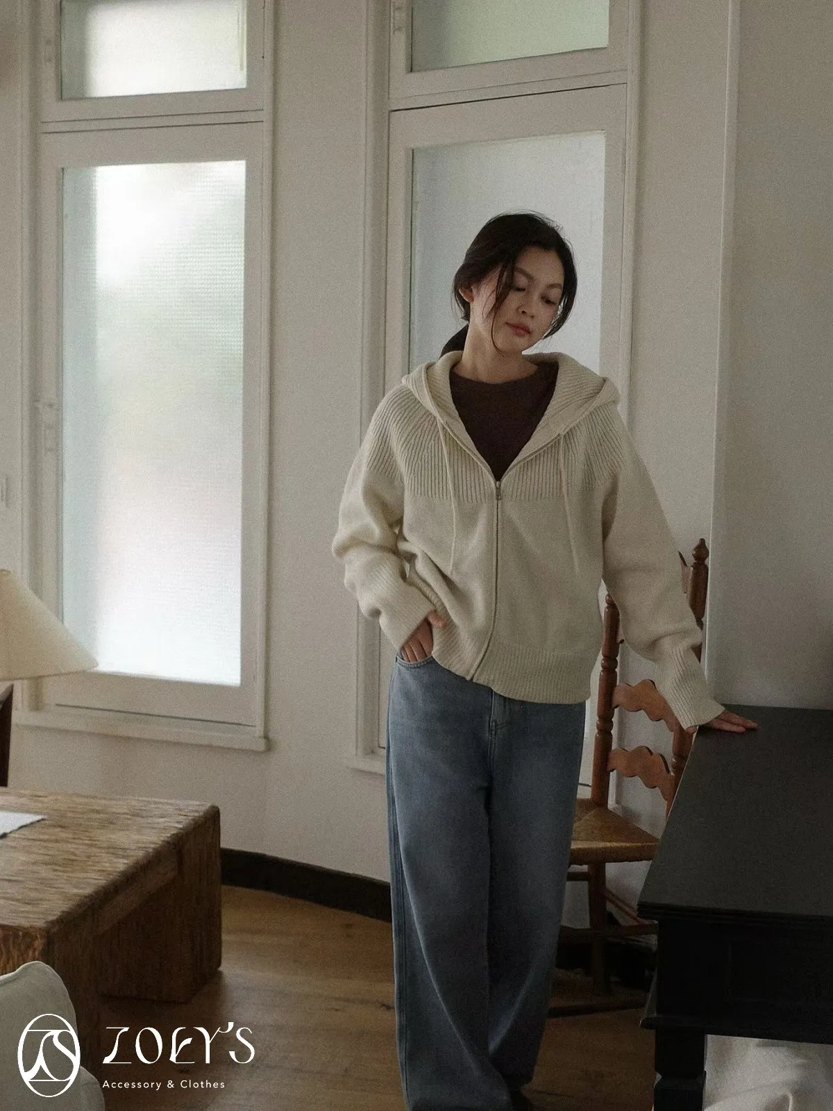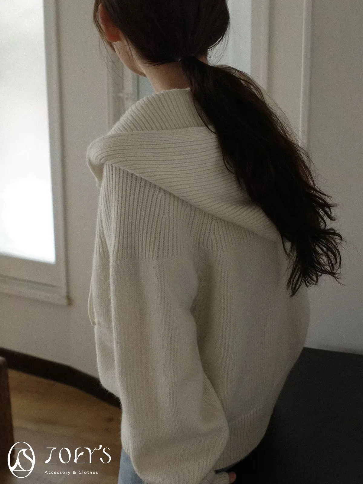正韓 織紋連帽拉鍊羊毛外套 灰/駝/米
