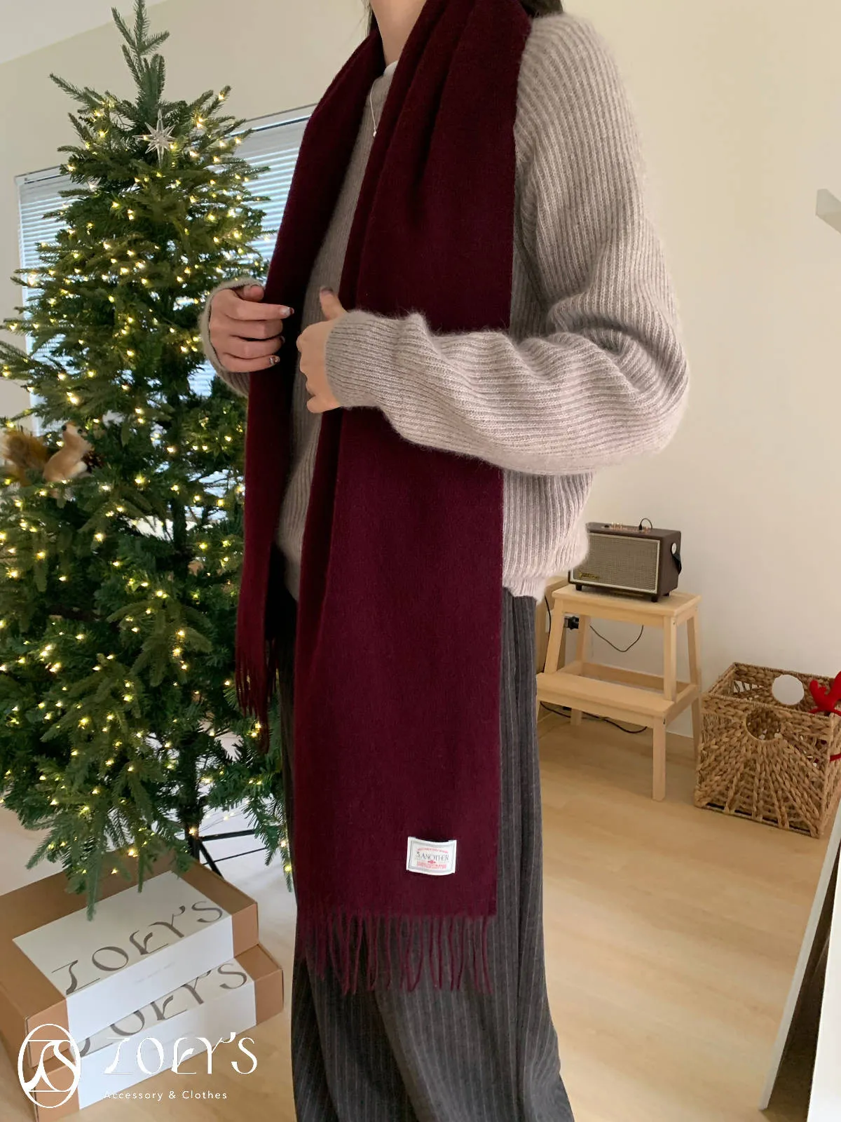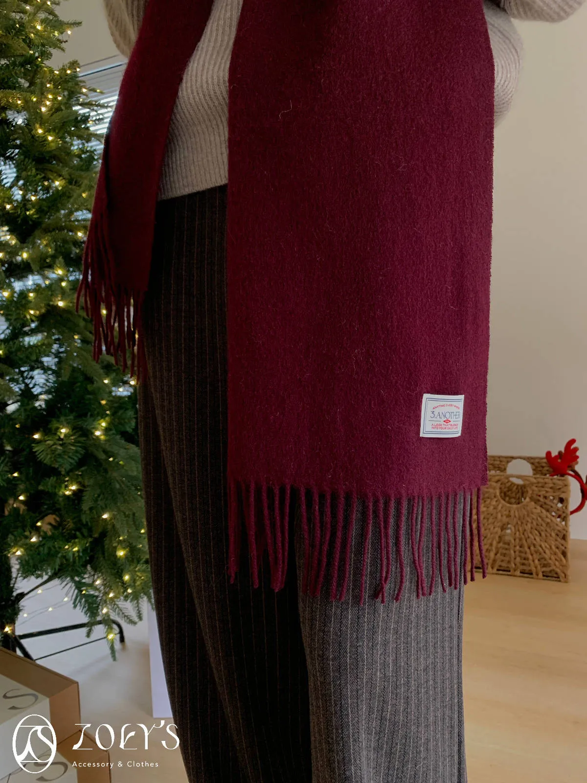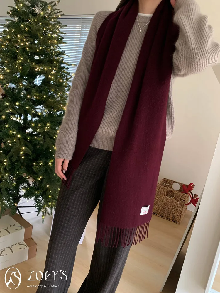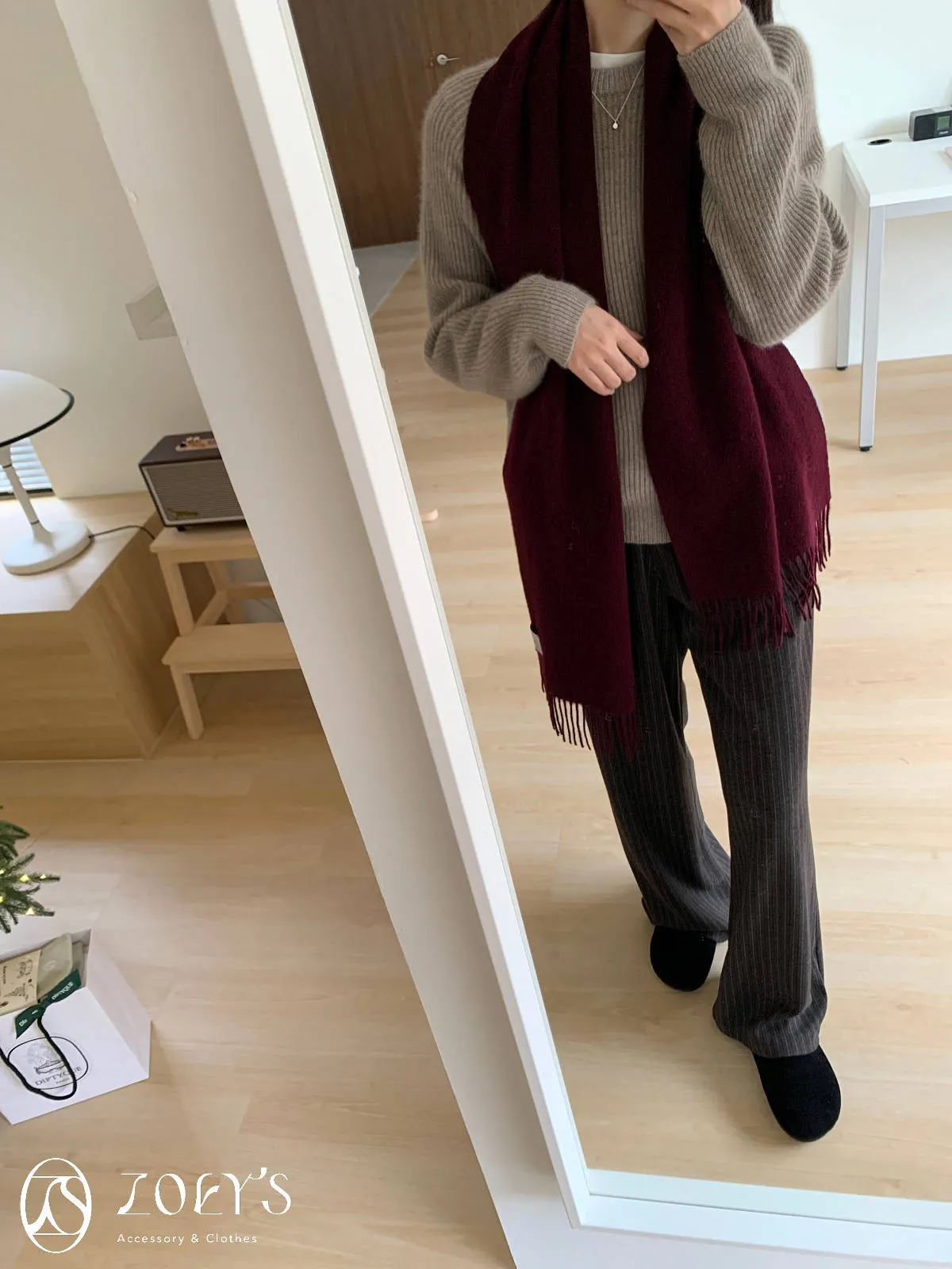 正韓 質感日常100%羊毛圍巾 酒紅/寶寶藍