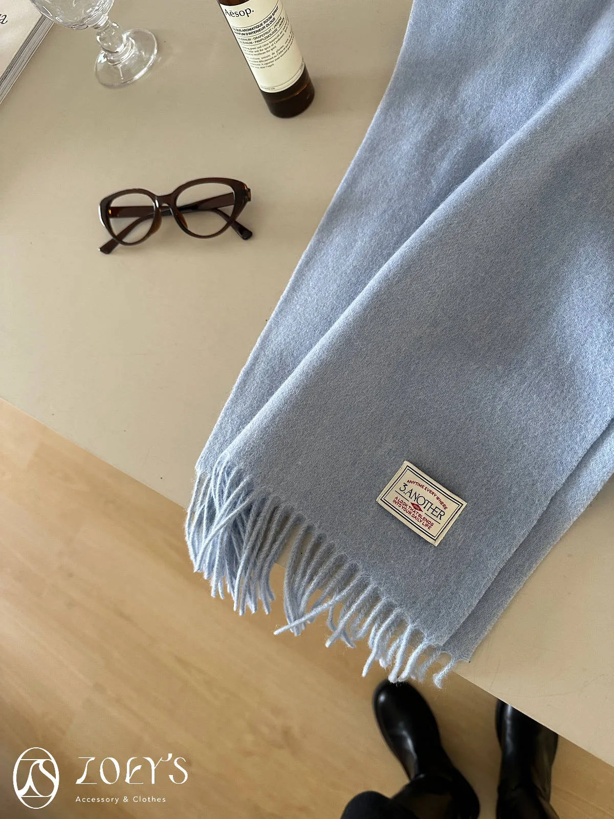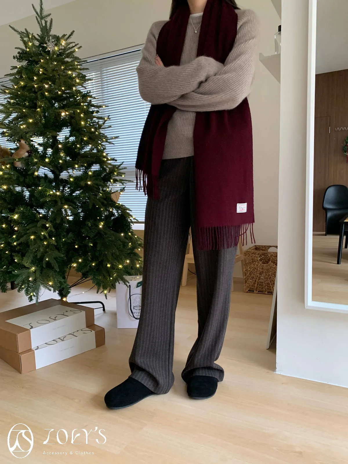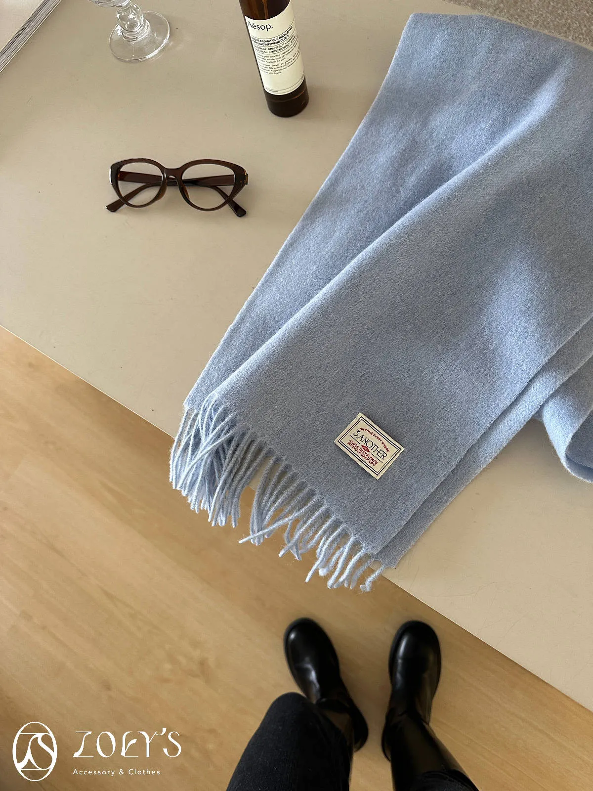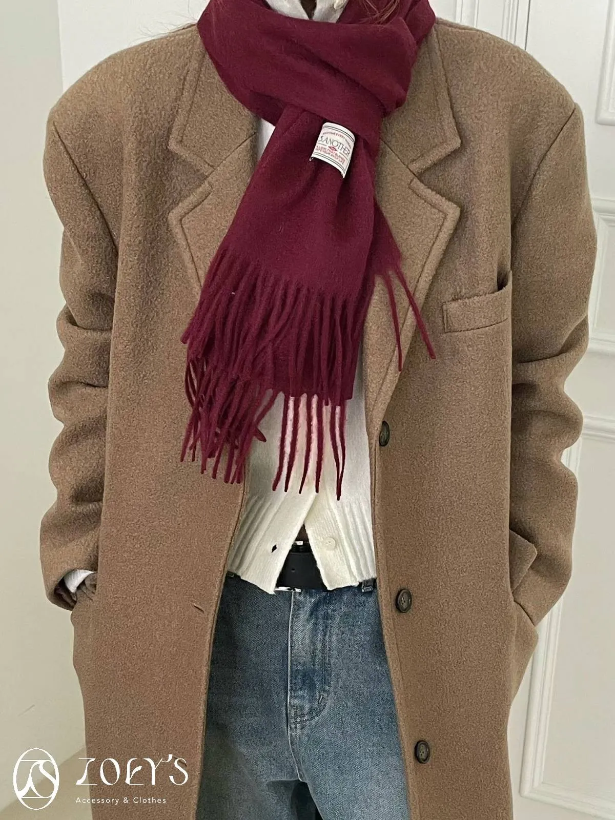 正韓 質感日常100%羊毛圍巾 酒紅/寶寶藍