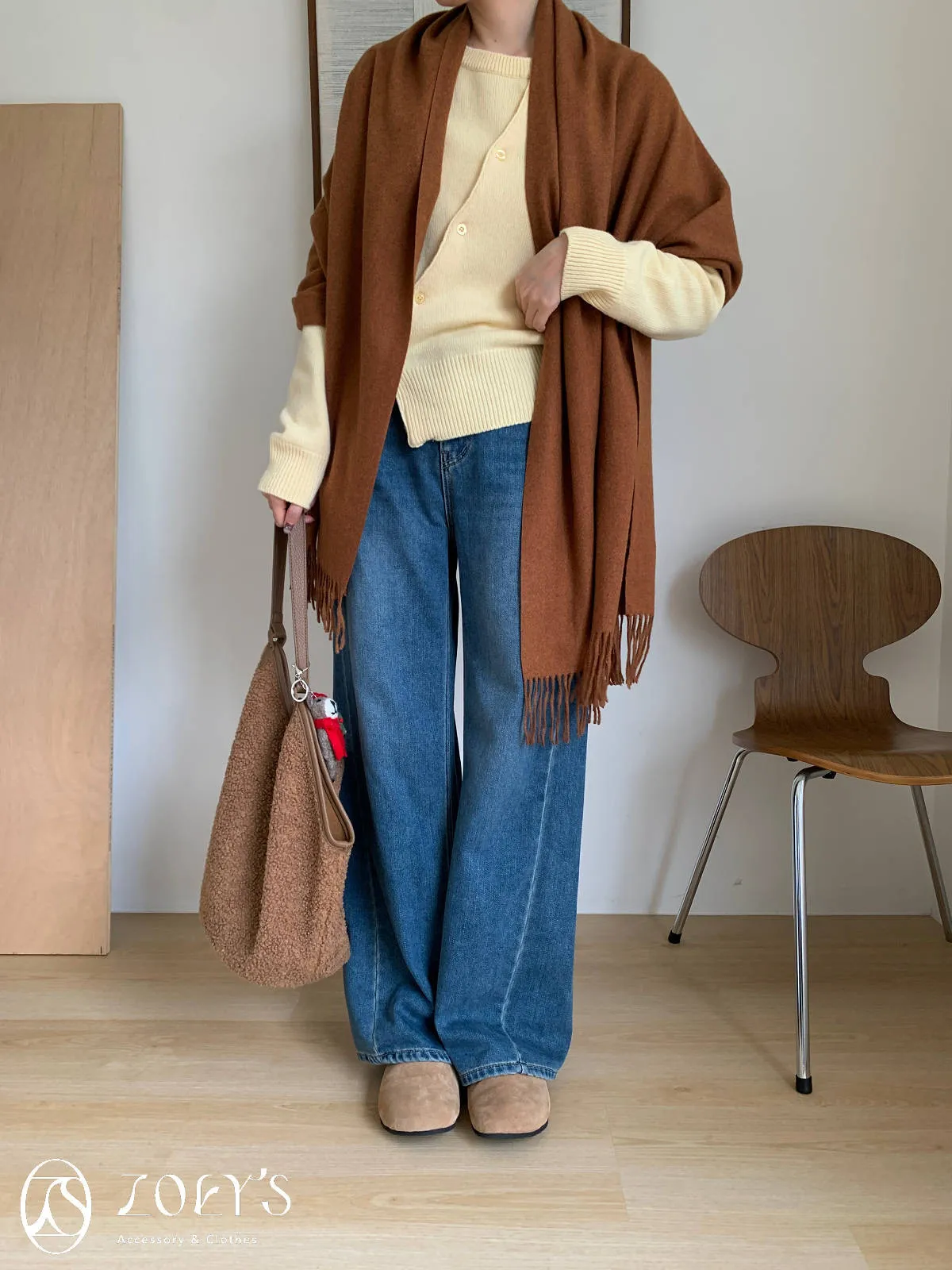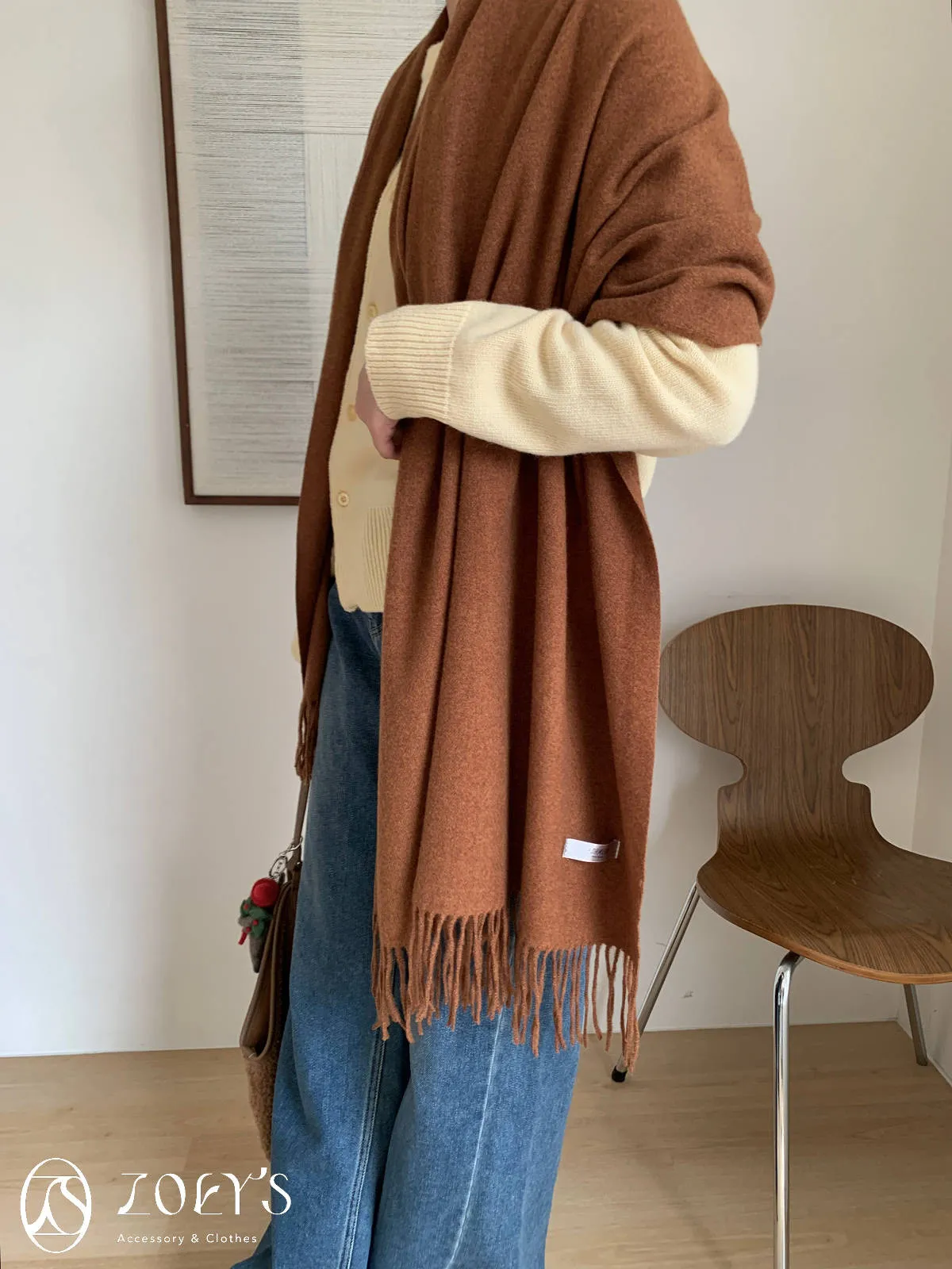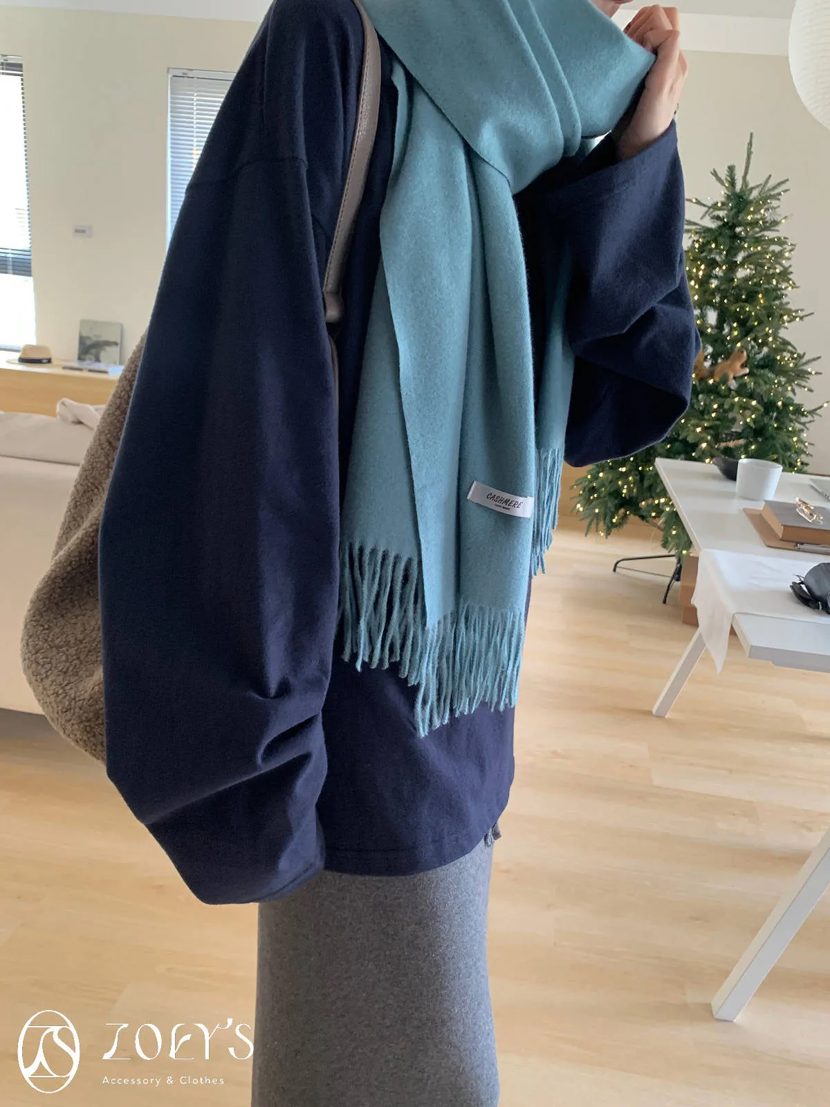 正韓 極柔手感喀什米爾圍巾 焦糖/深灰/湖綠