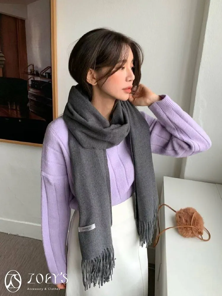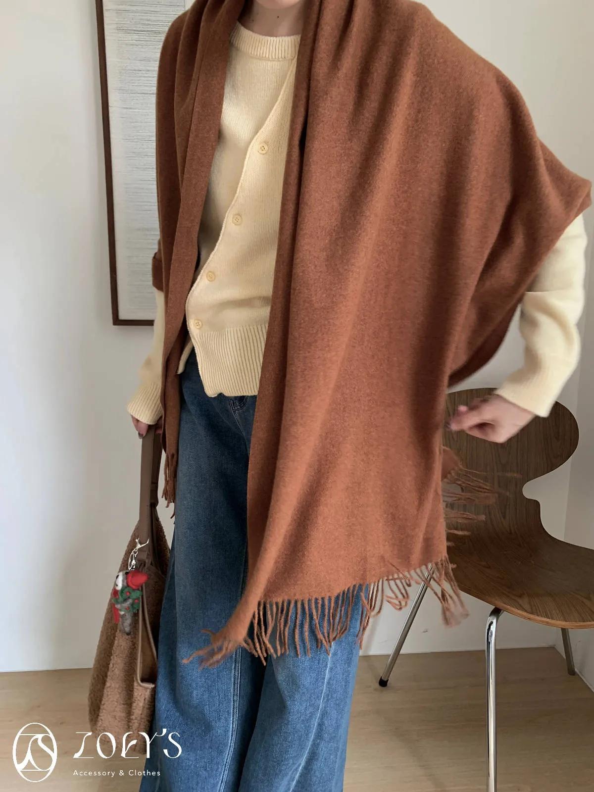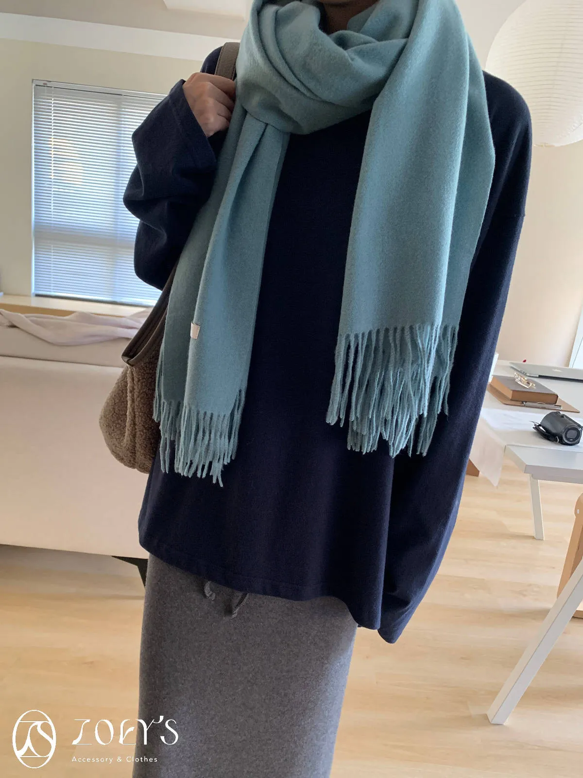 正韓 極柔手感喀什米爾圍巾 焦糖/深灰/湖綠