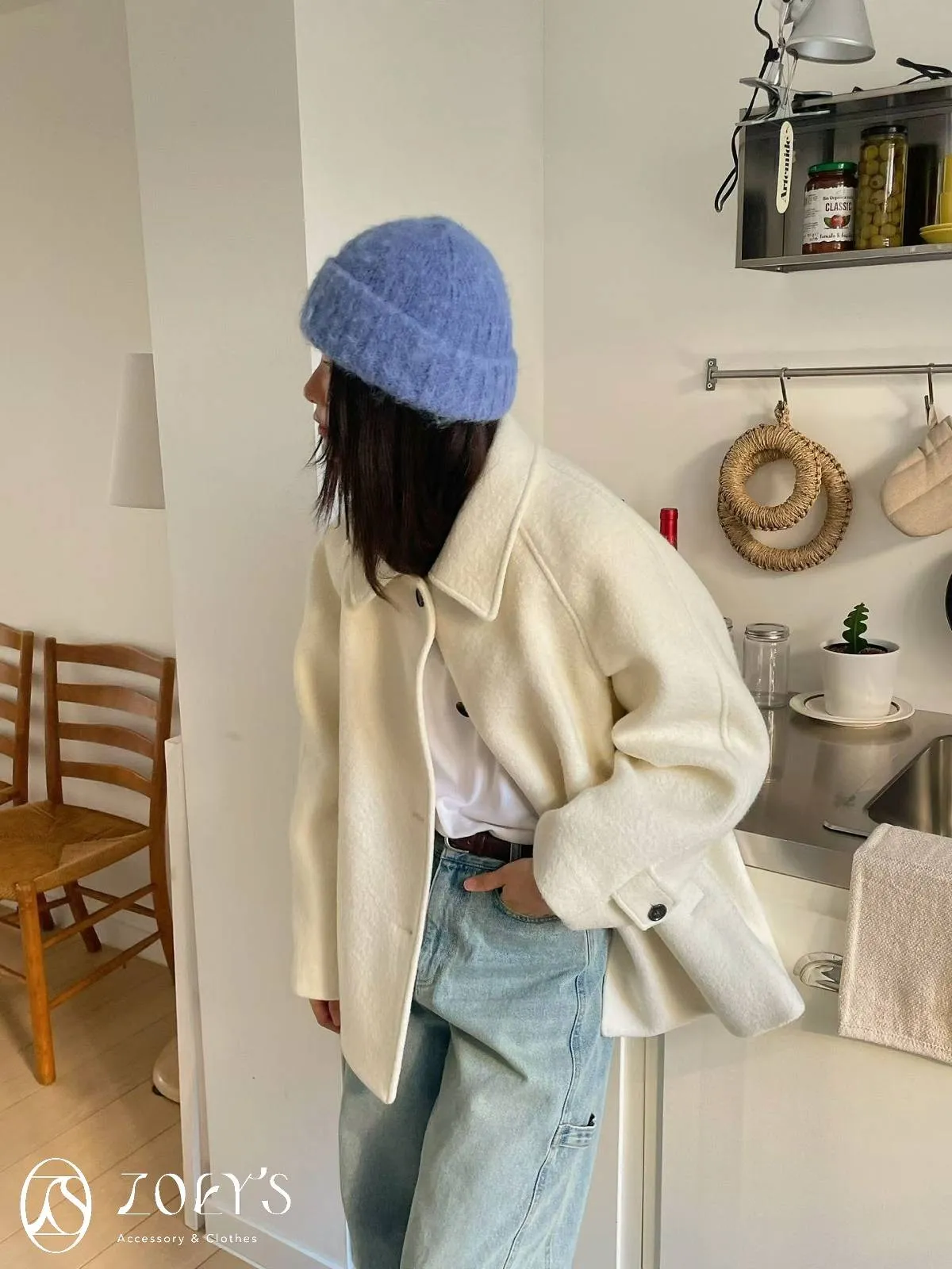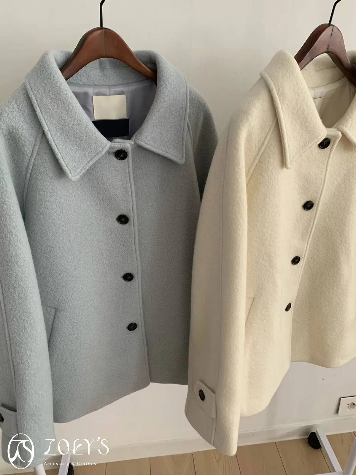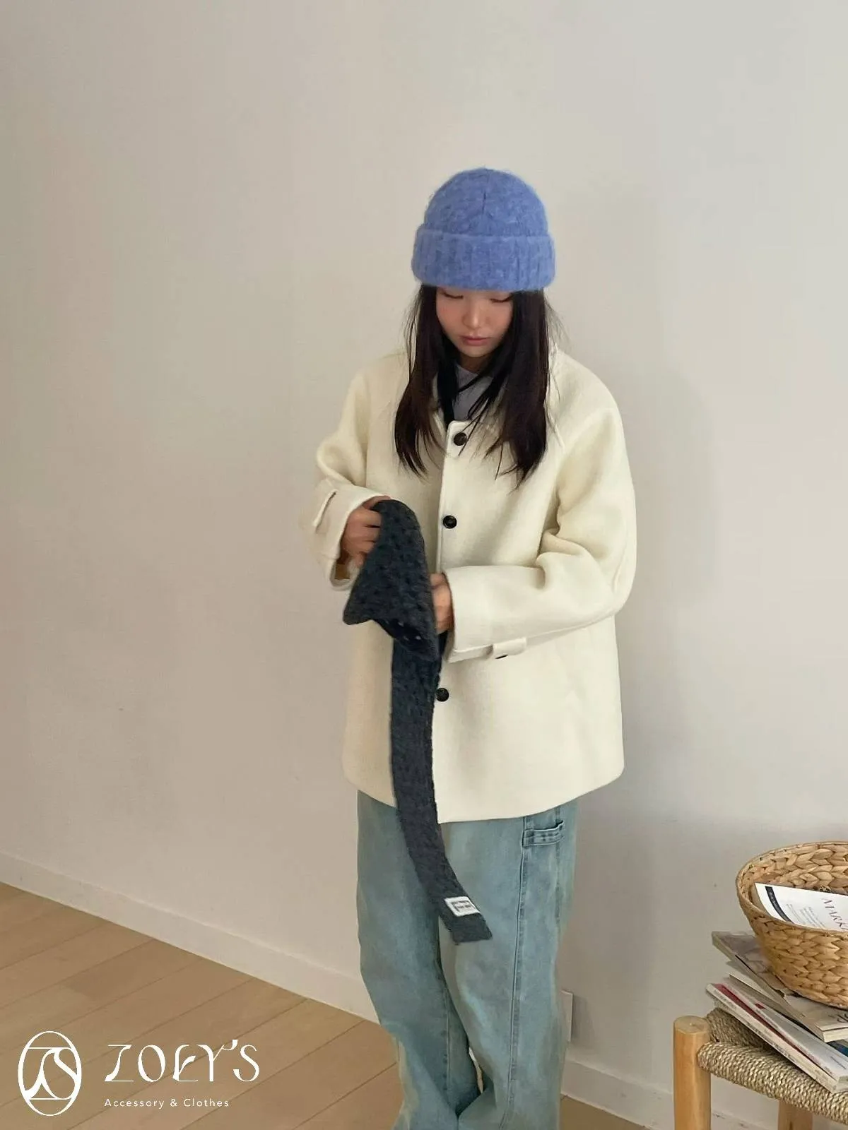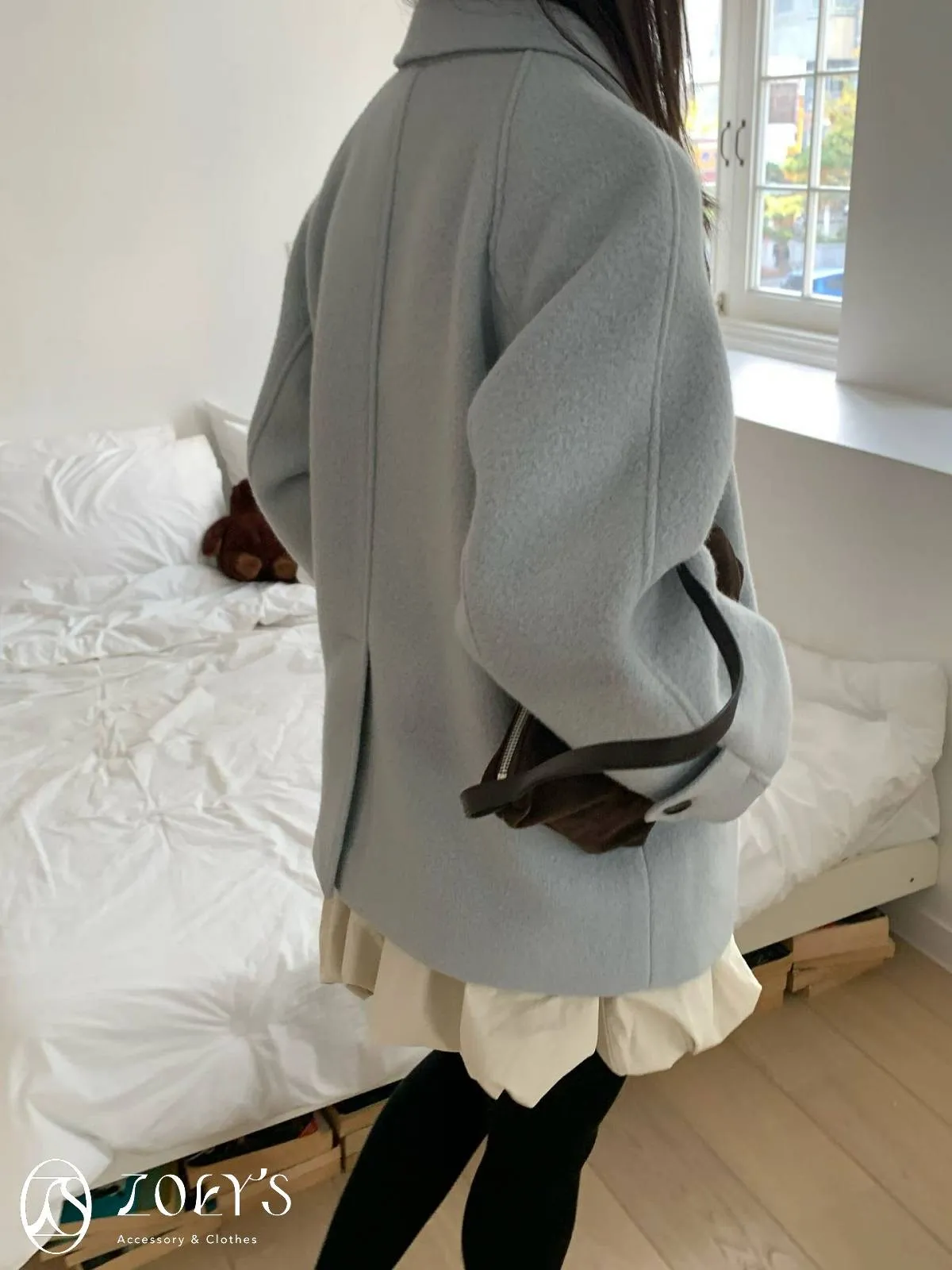 正韓 美麗諾羊毛圓扣大衣 寶寶藍/米白