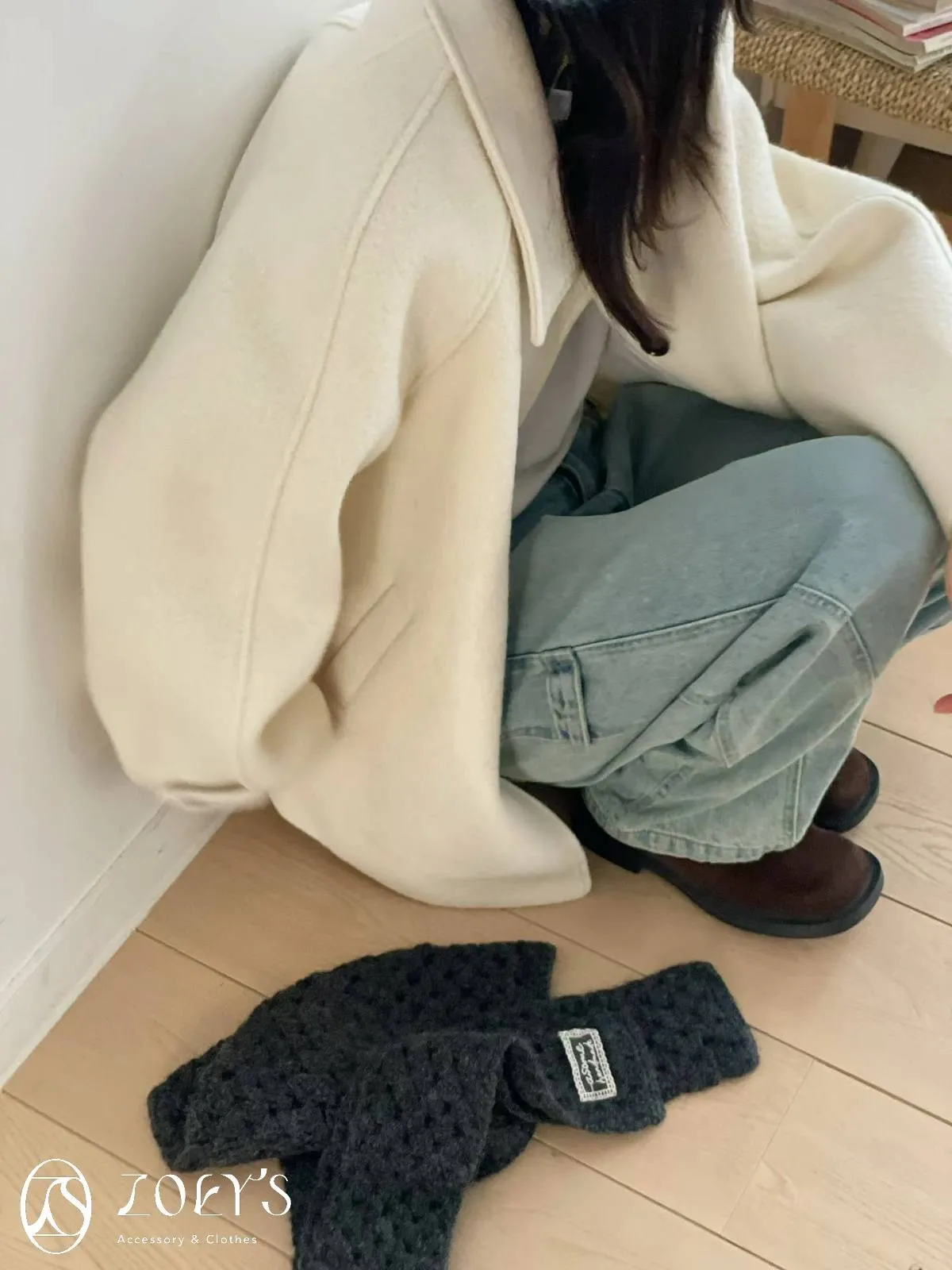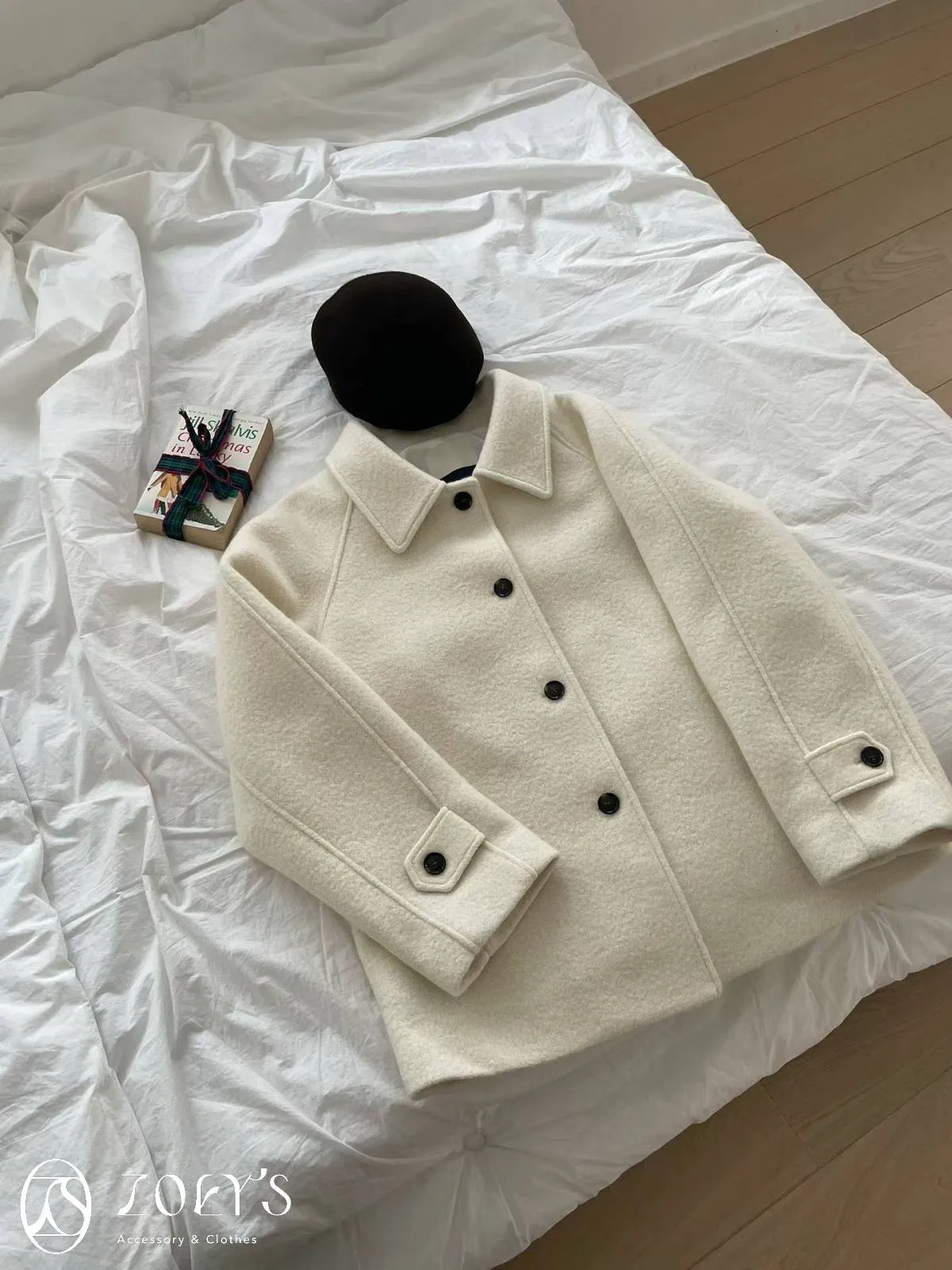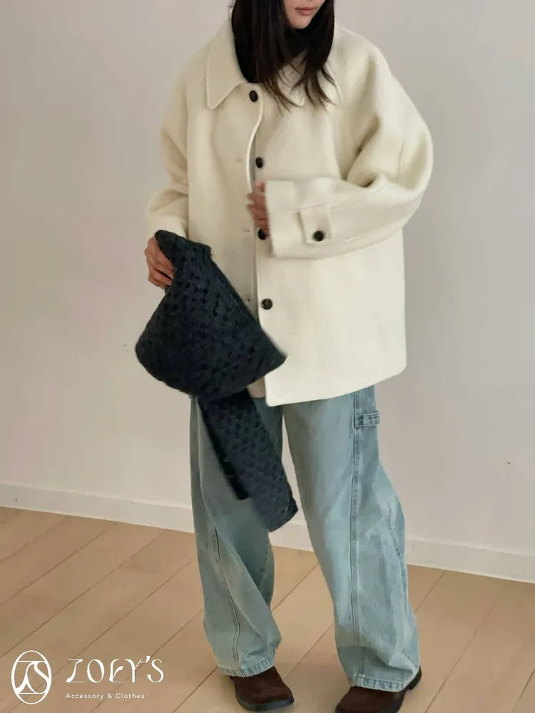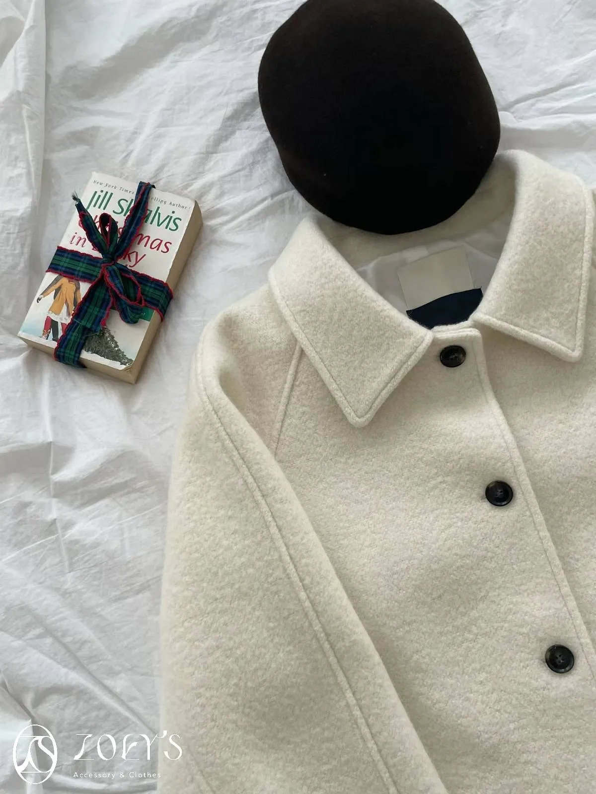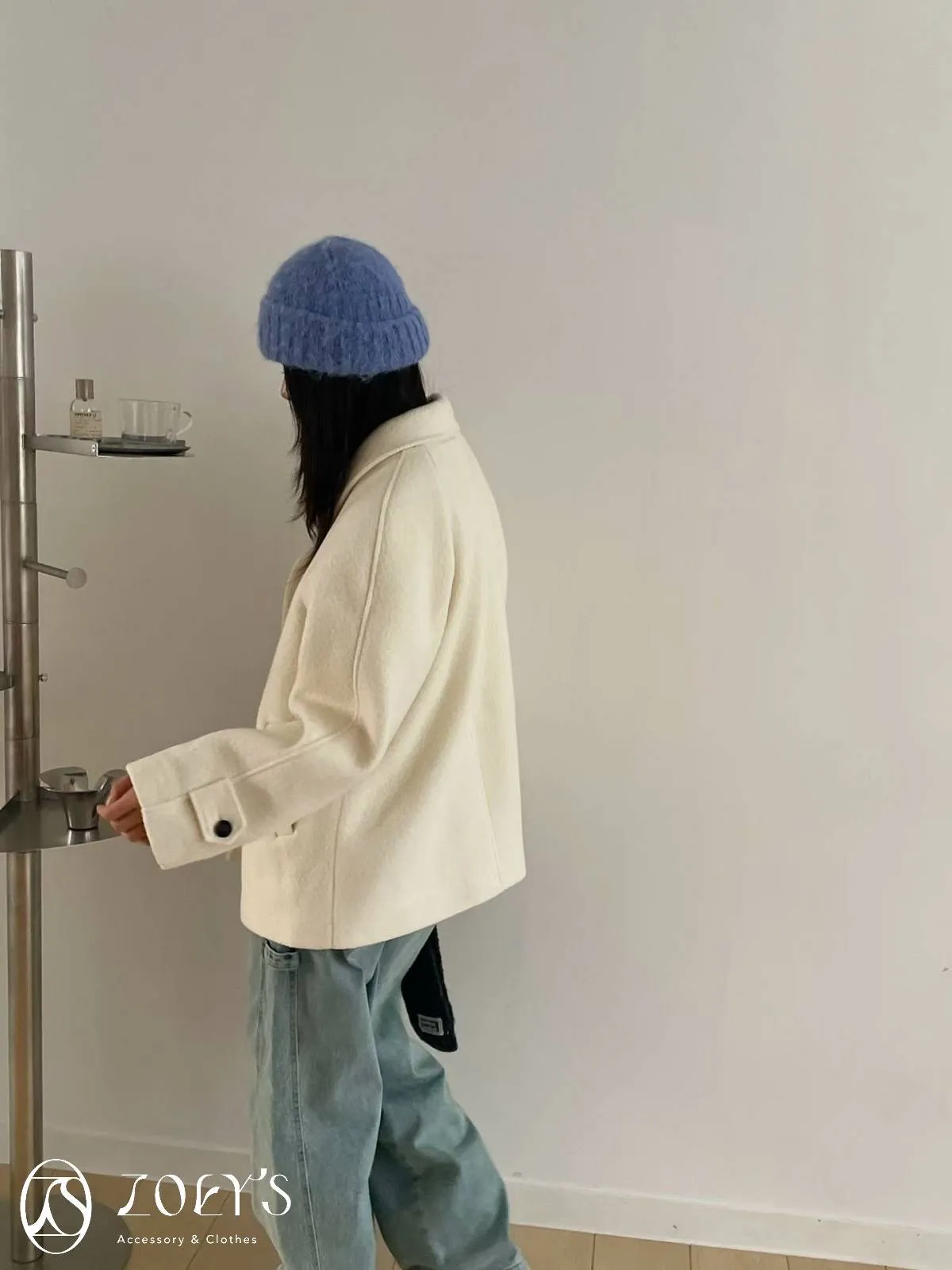 正韓 美麗諾羊毛圓扣大衣 寶寶藍/米白