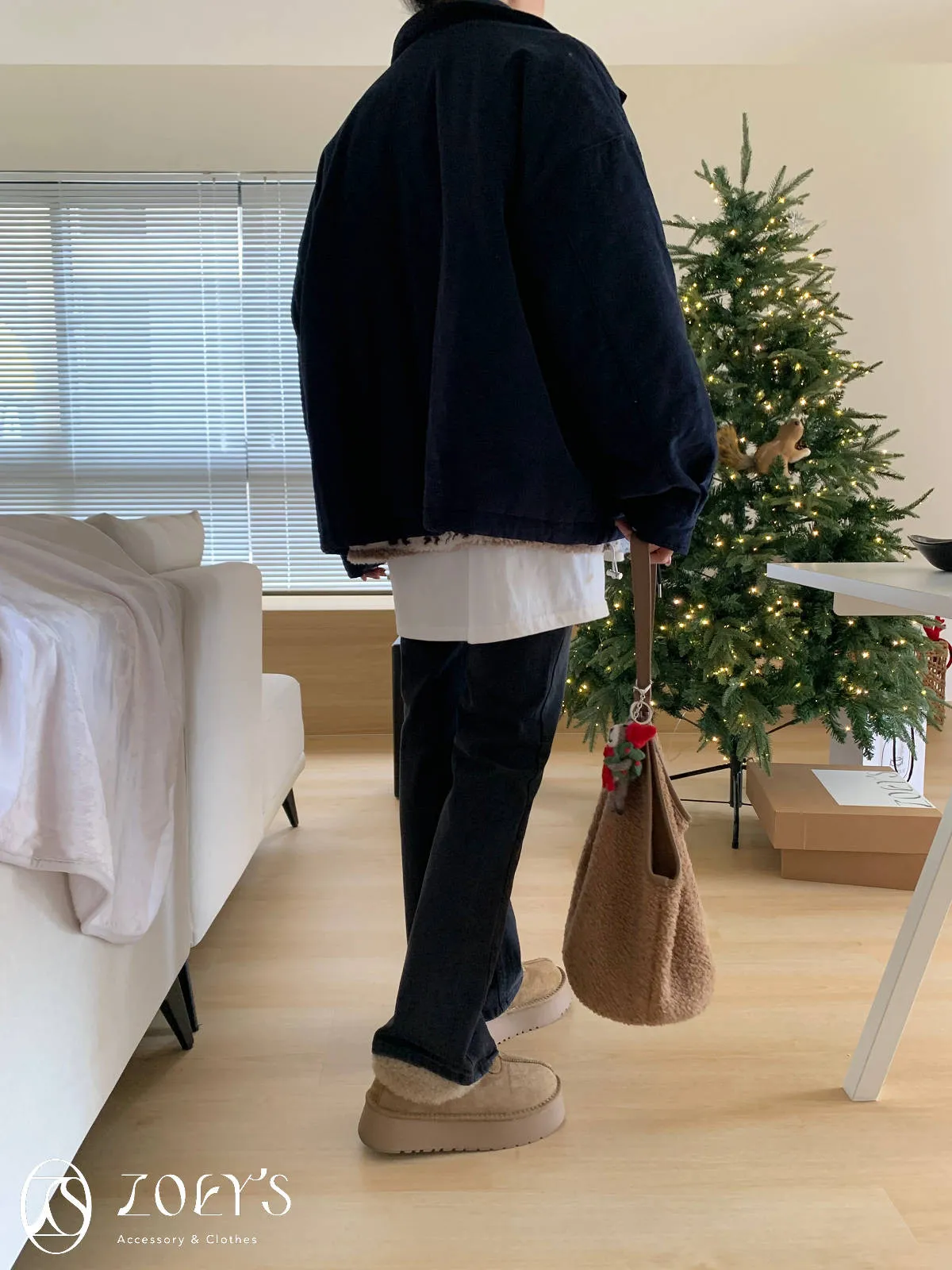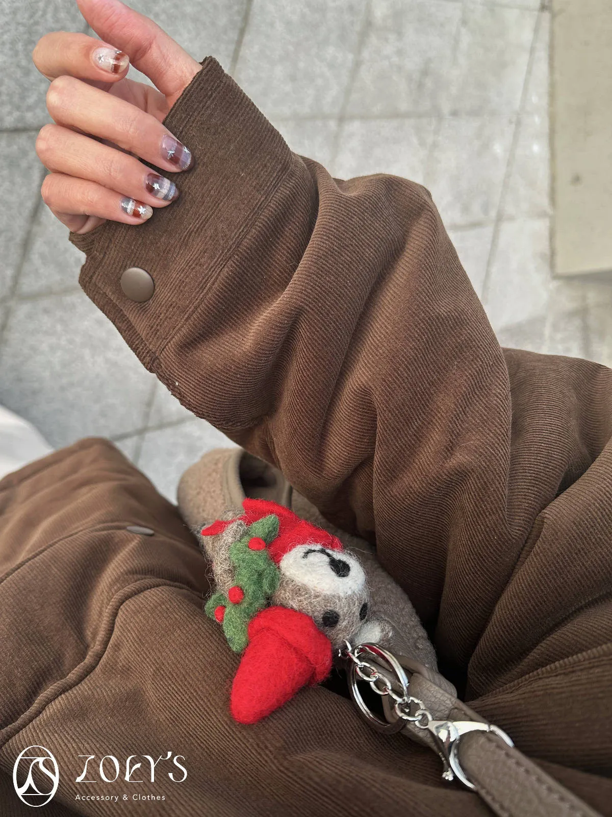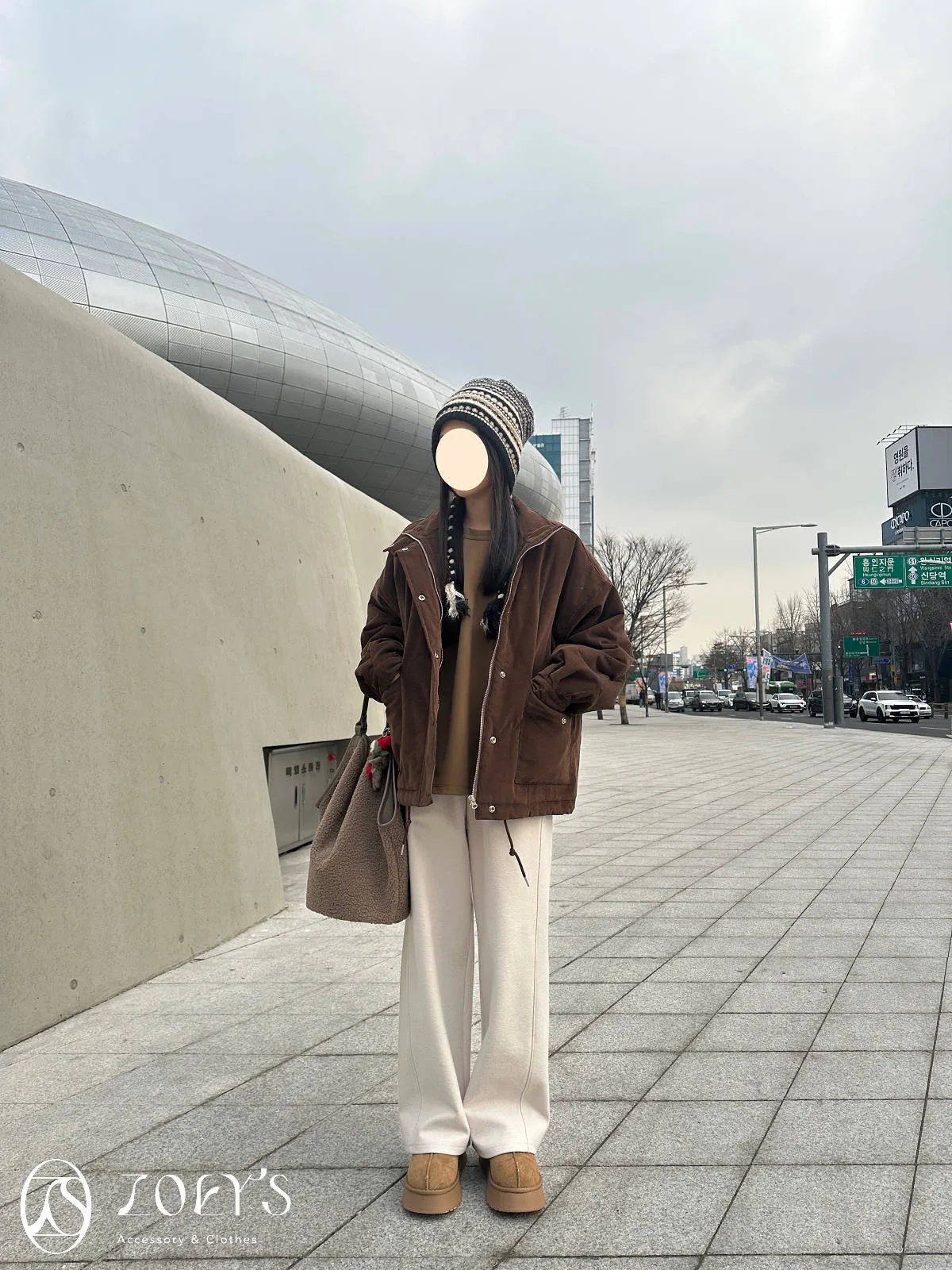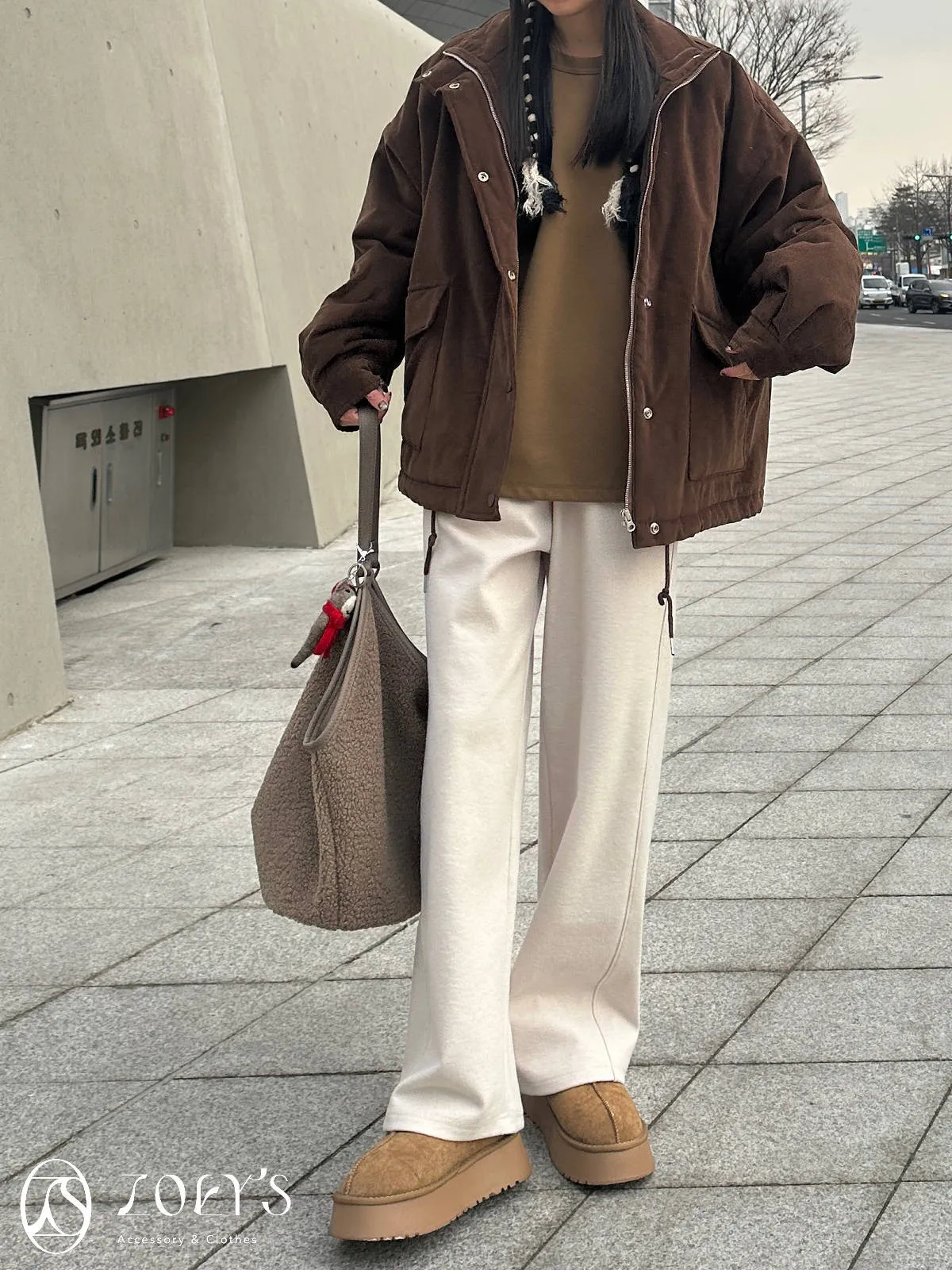 正韓 燈芯絨拉鍊圓扣鋪棉外套 深藍/咖