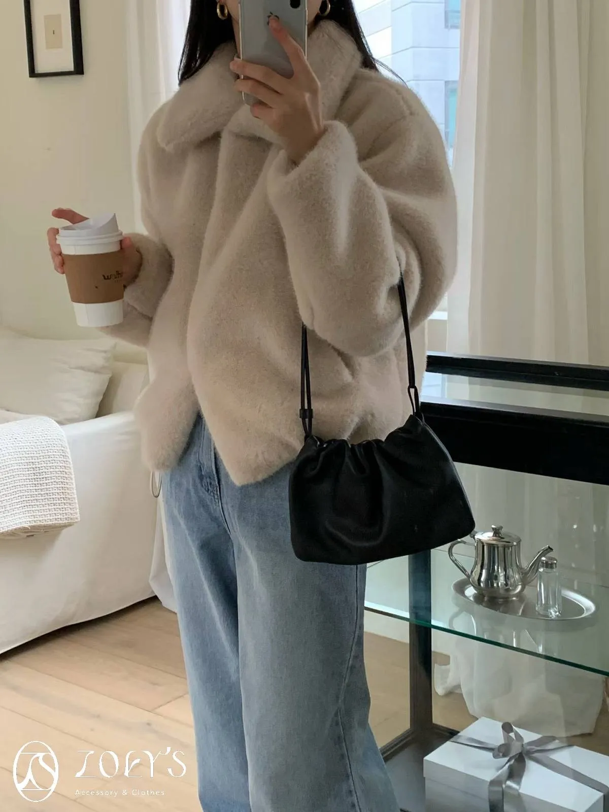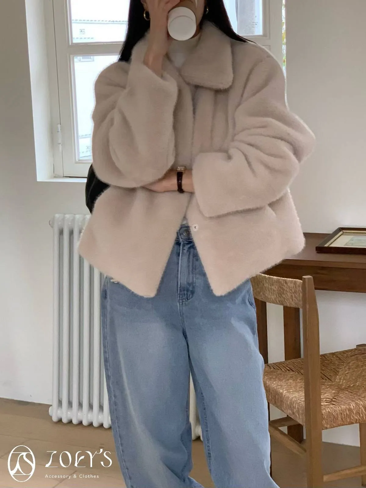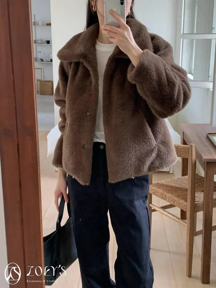 正韓 小貴氣極柔毛茸外套 咖/米