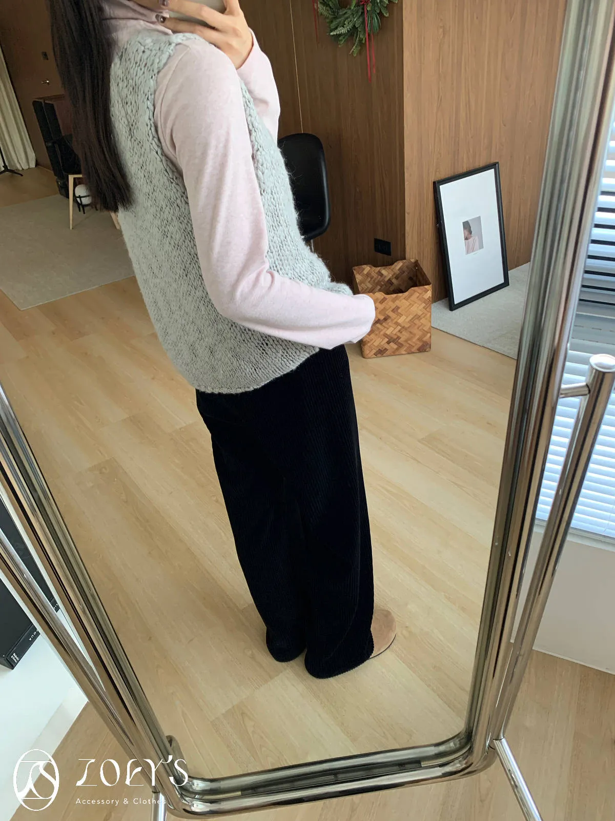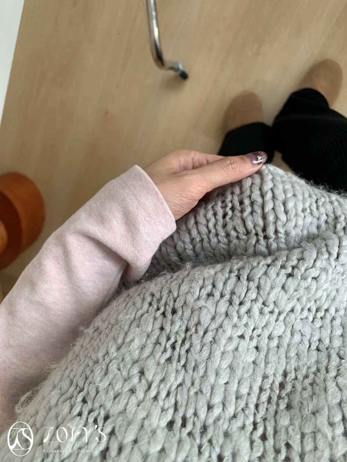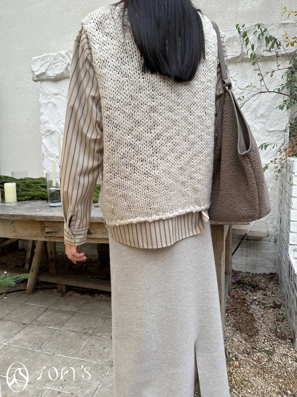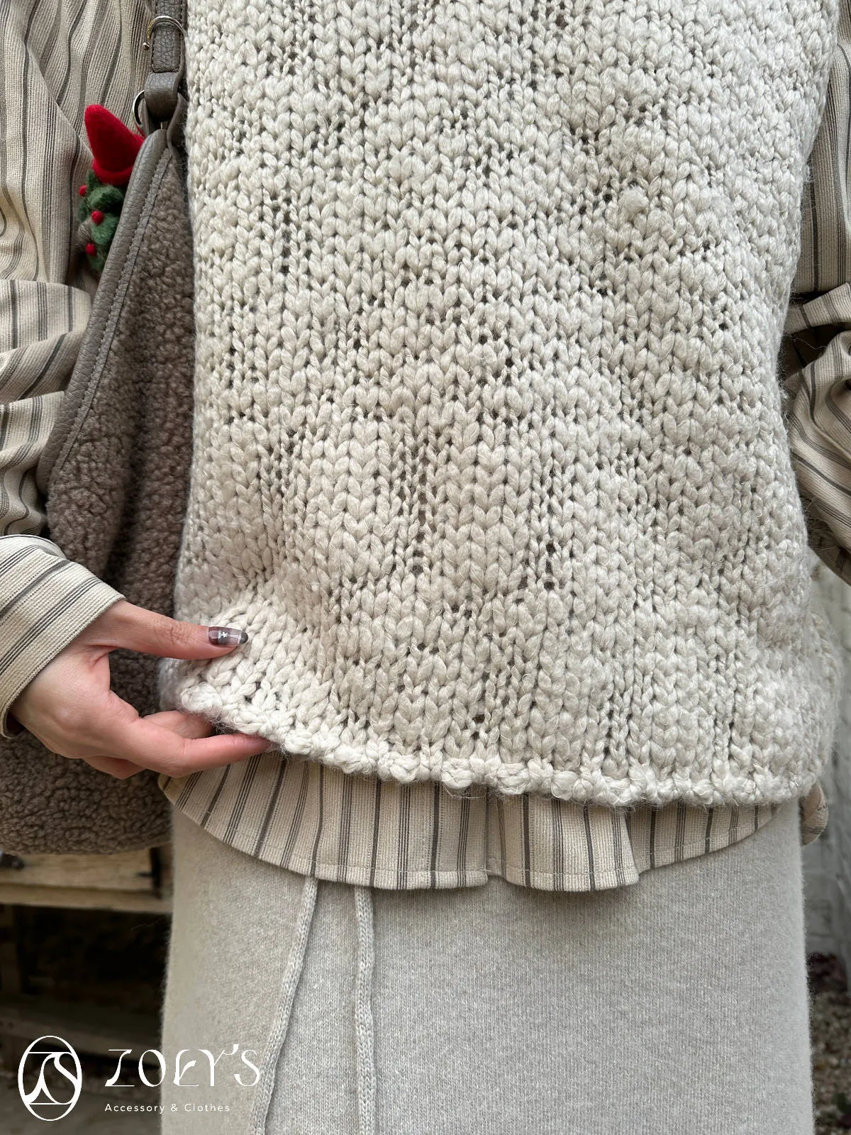正韓 雪花感手工勾針羊毛背心 灰/米