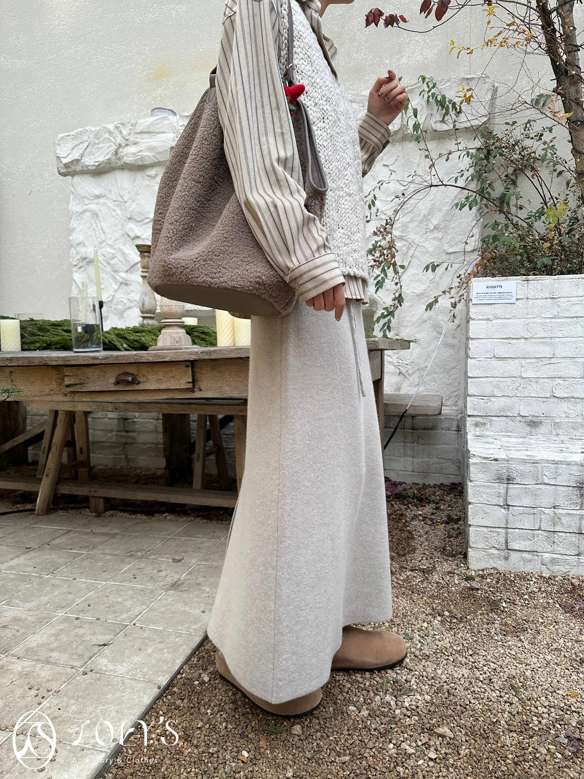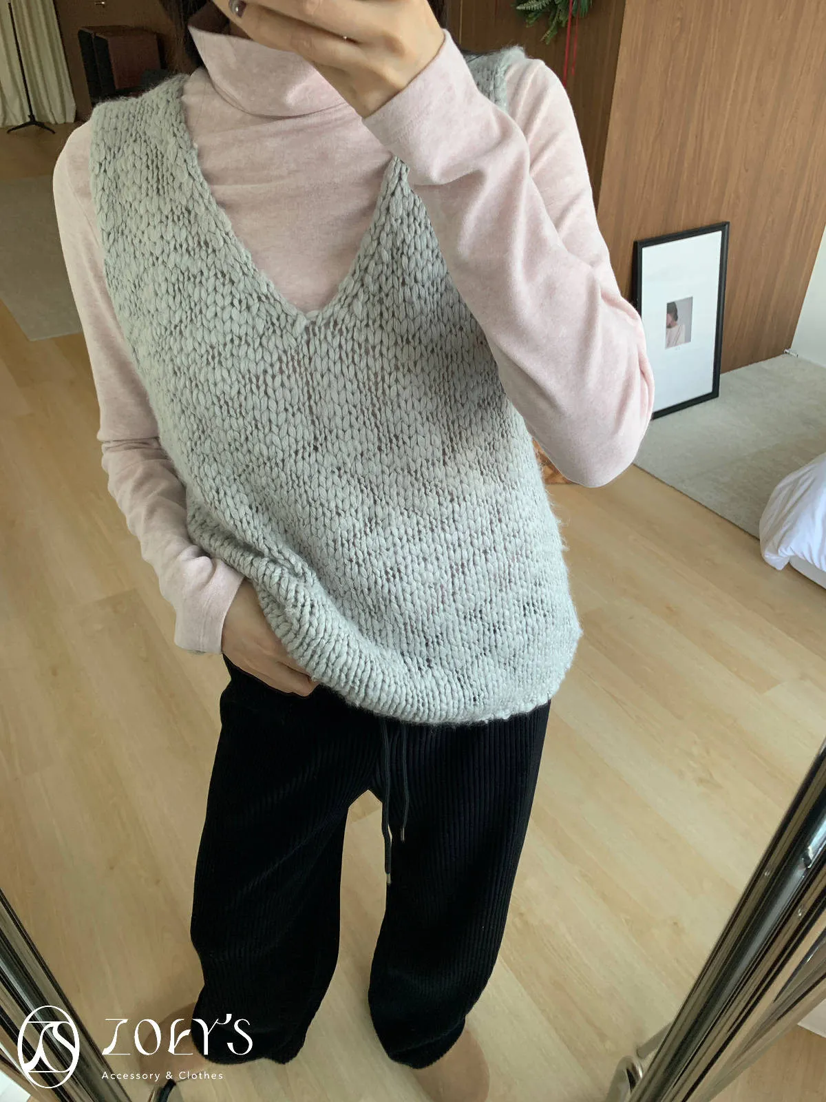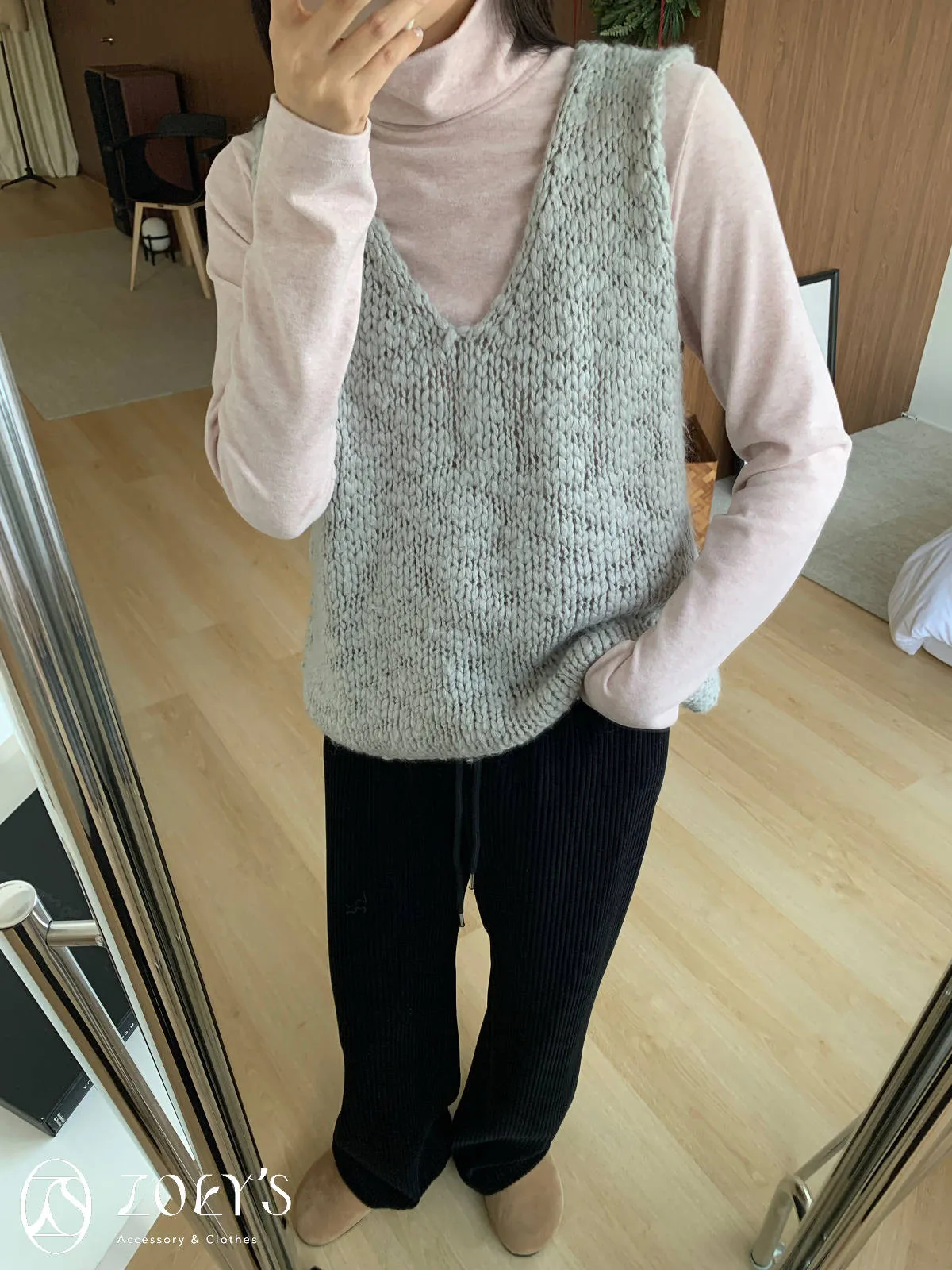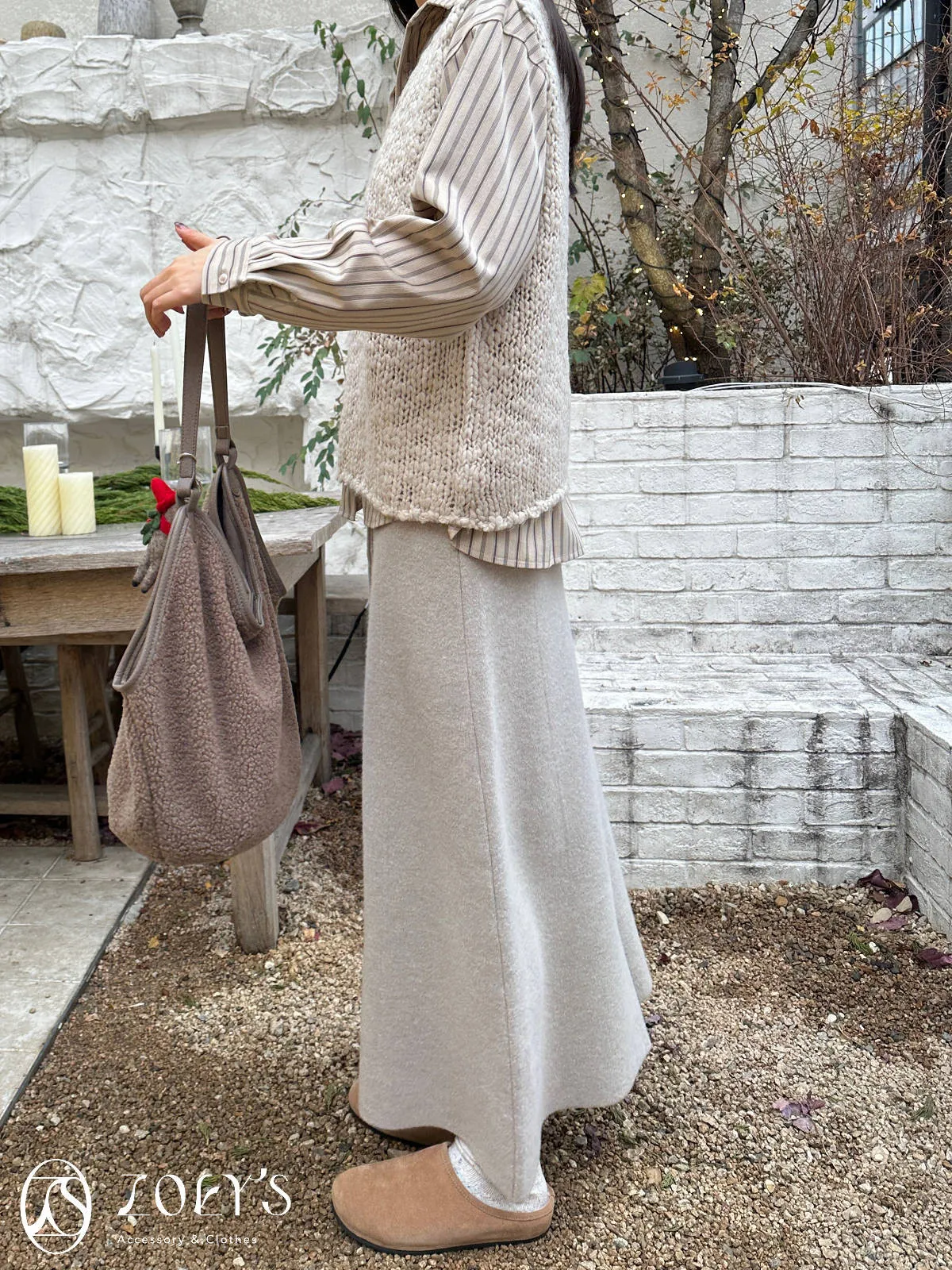 正韓 雪花感手工勾針羊毛背心 灰/米