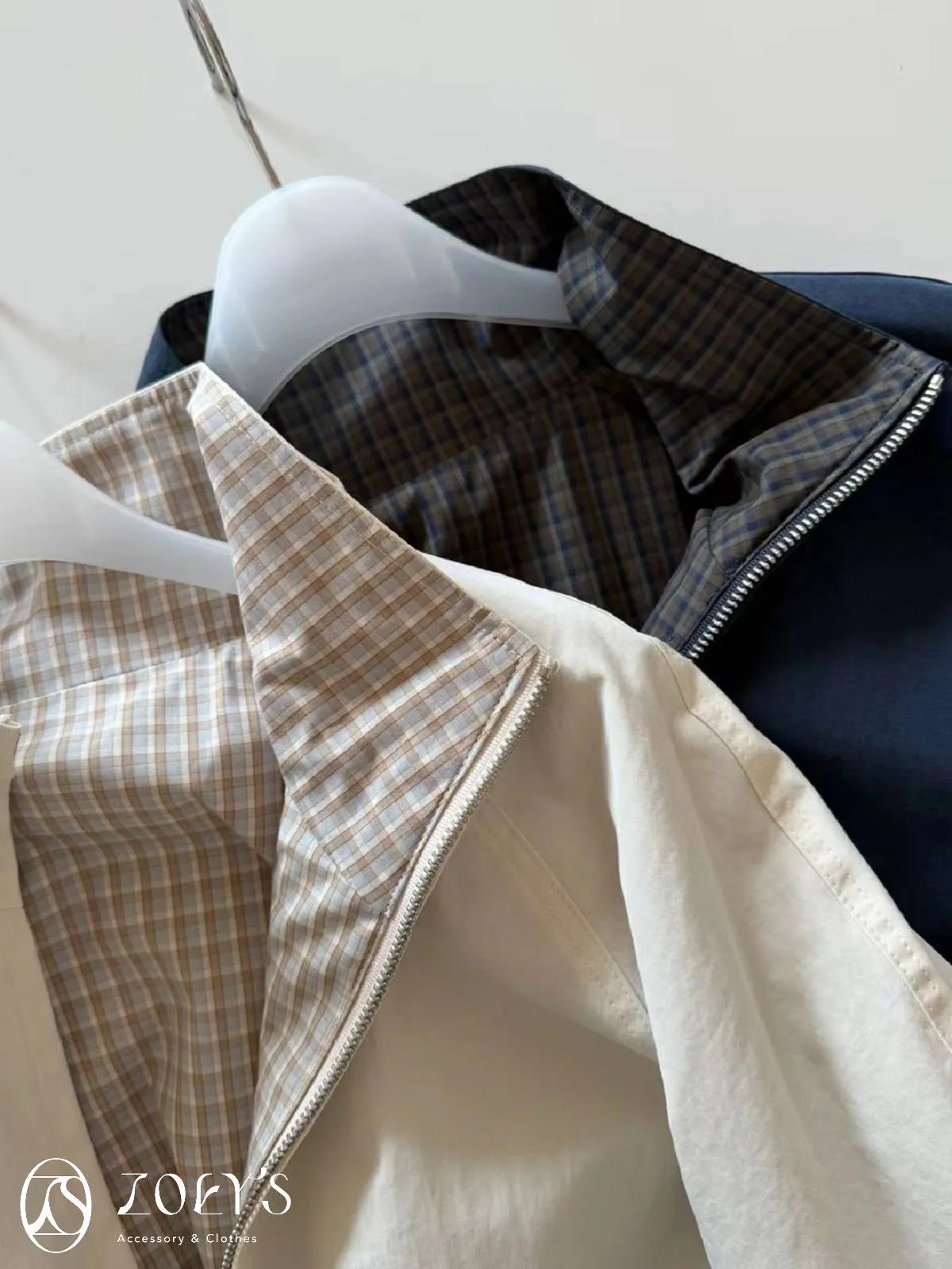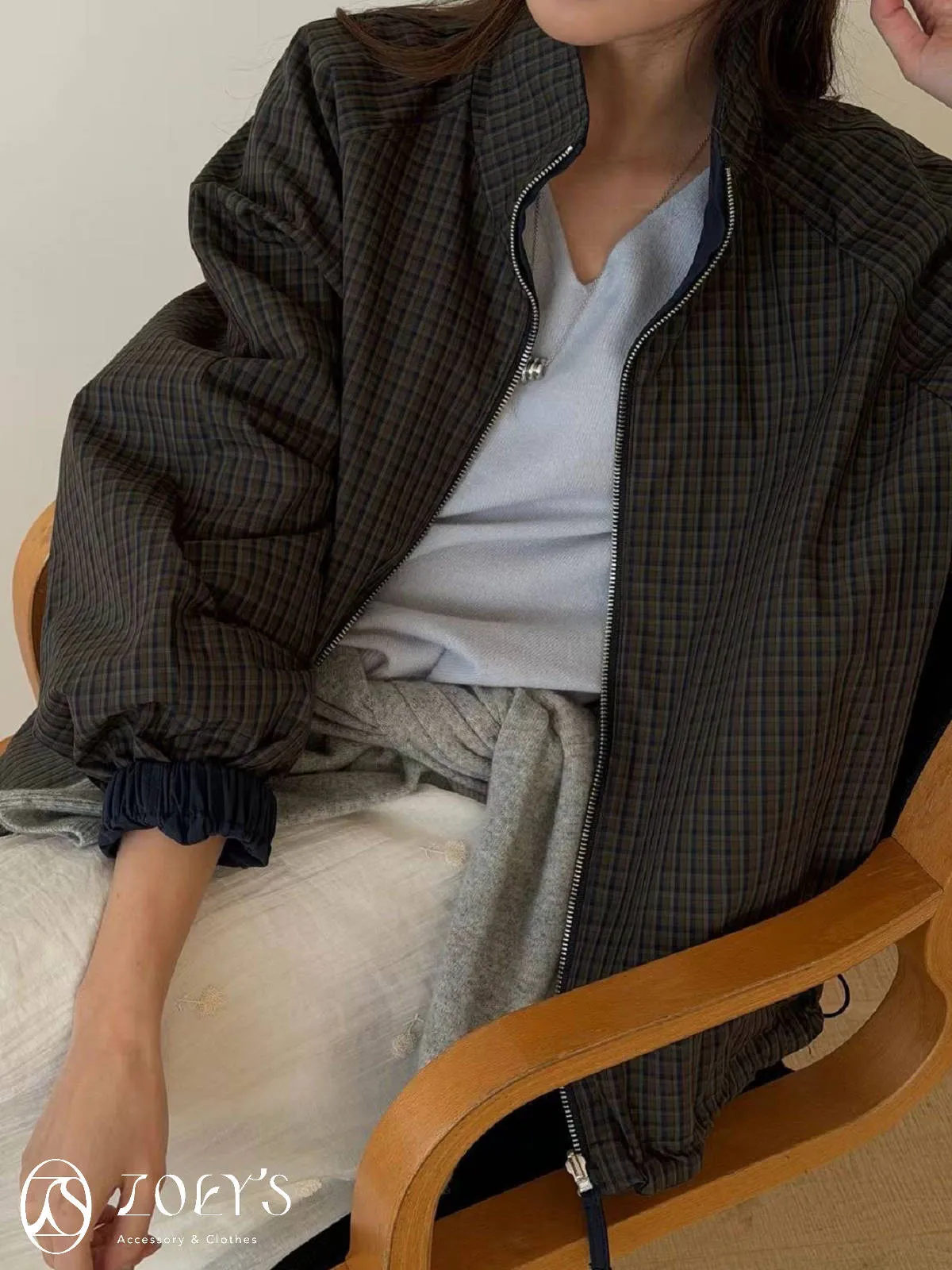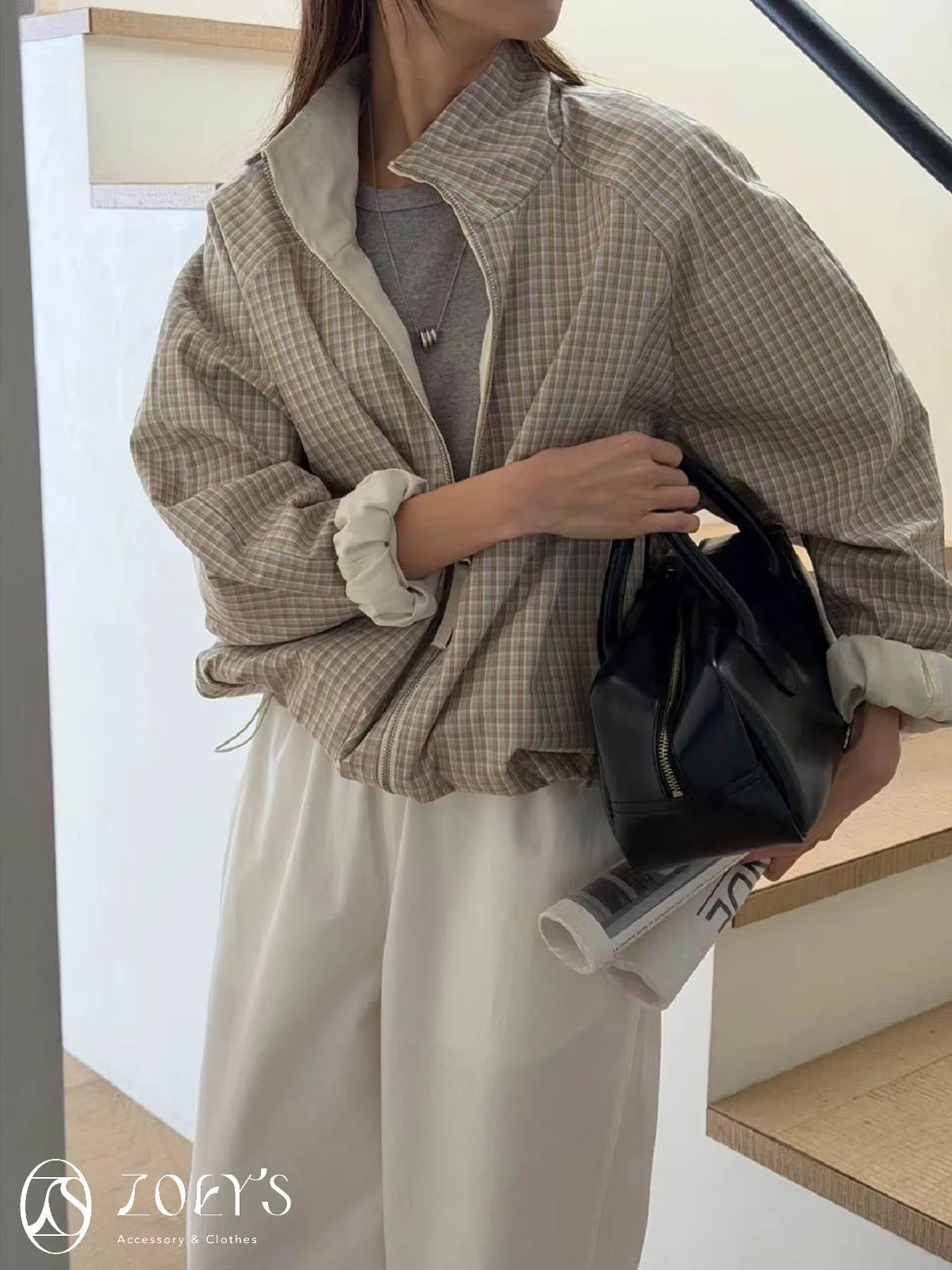 深藍和米搭配的線格顏色都超美超耐看,想素面搭配就翻面穿,cp值超高