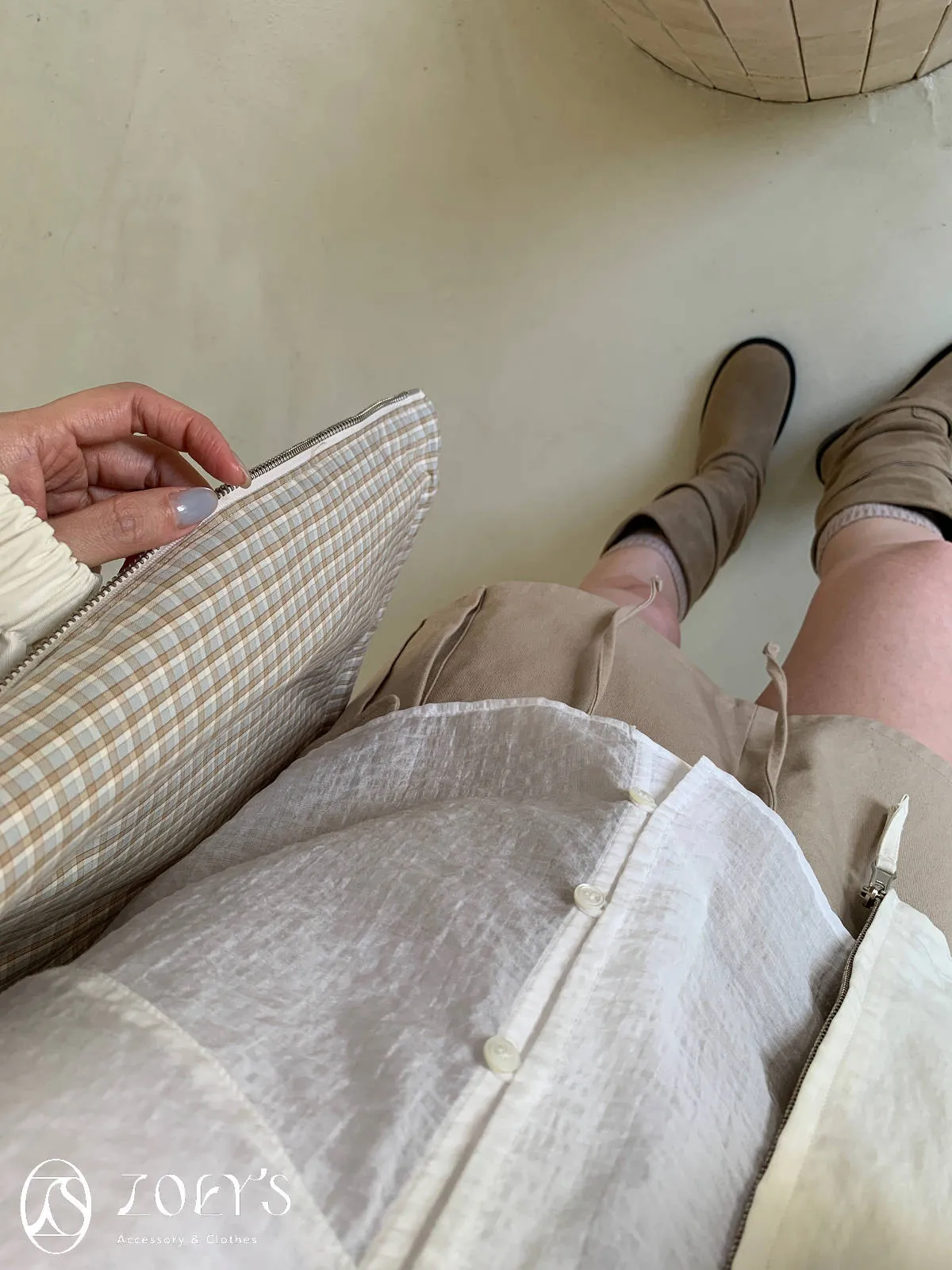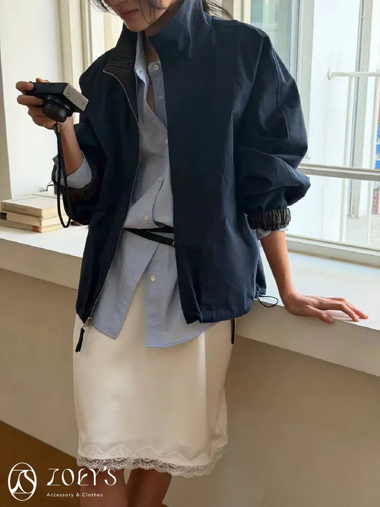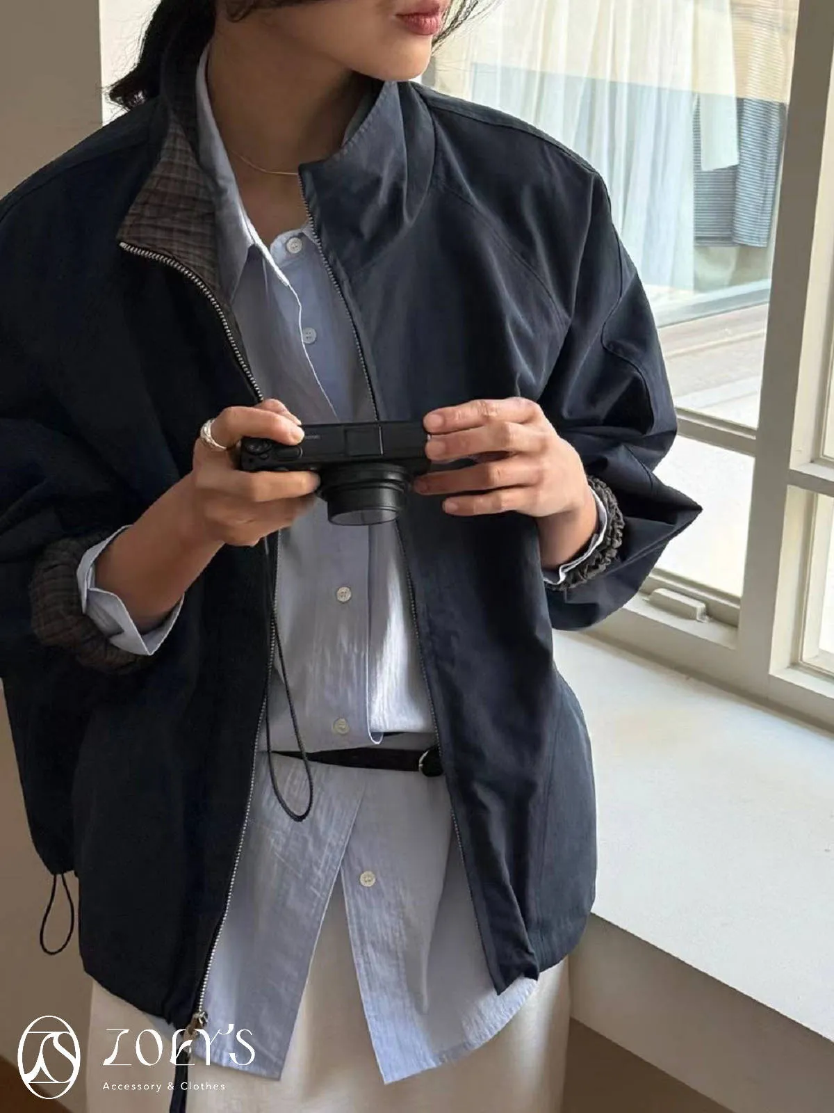 深藍和米搭配的線格顏色都超美超耐看,想素面搭配就翻面穿,cp值超高