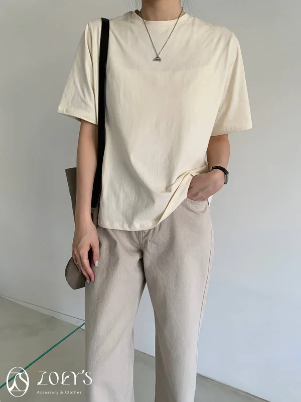 正韓 鬆身剪裁純棉上衣 燕麥/米黃/白/灰/紅