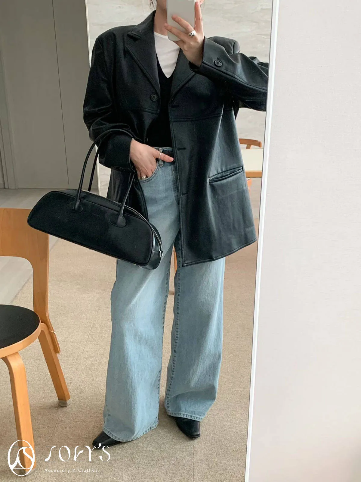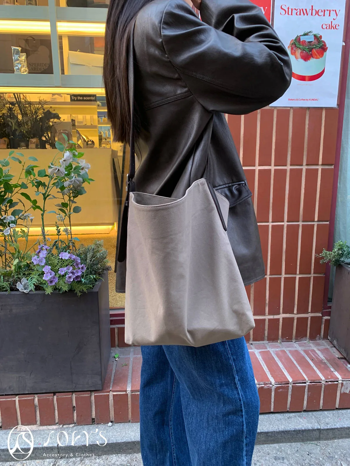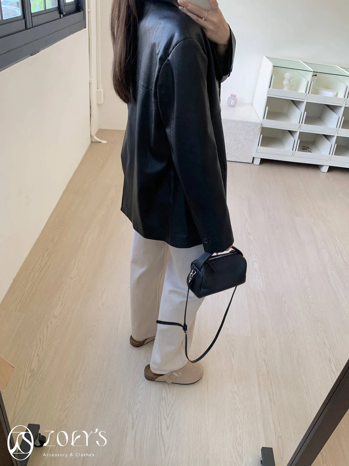 正韓 牛皮背帶帆布時髦大包 黑/綠