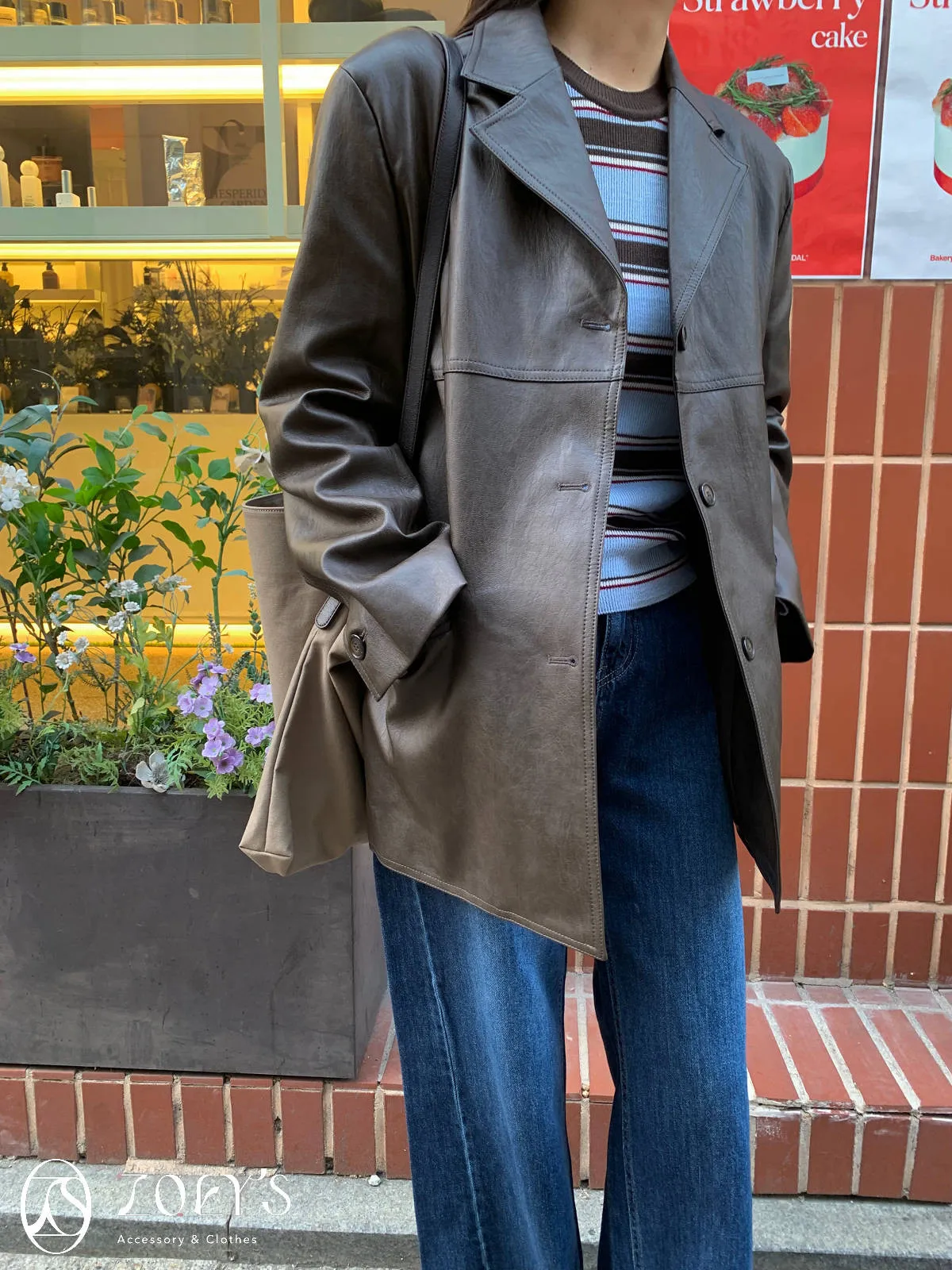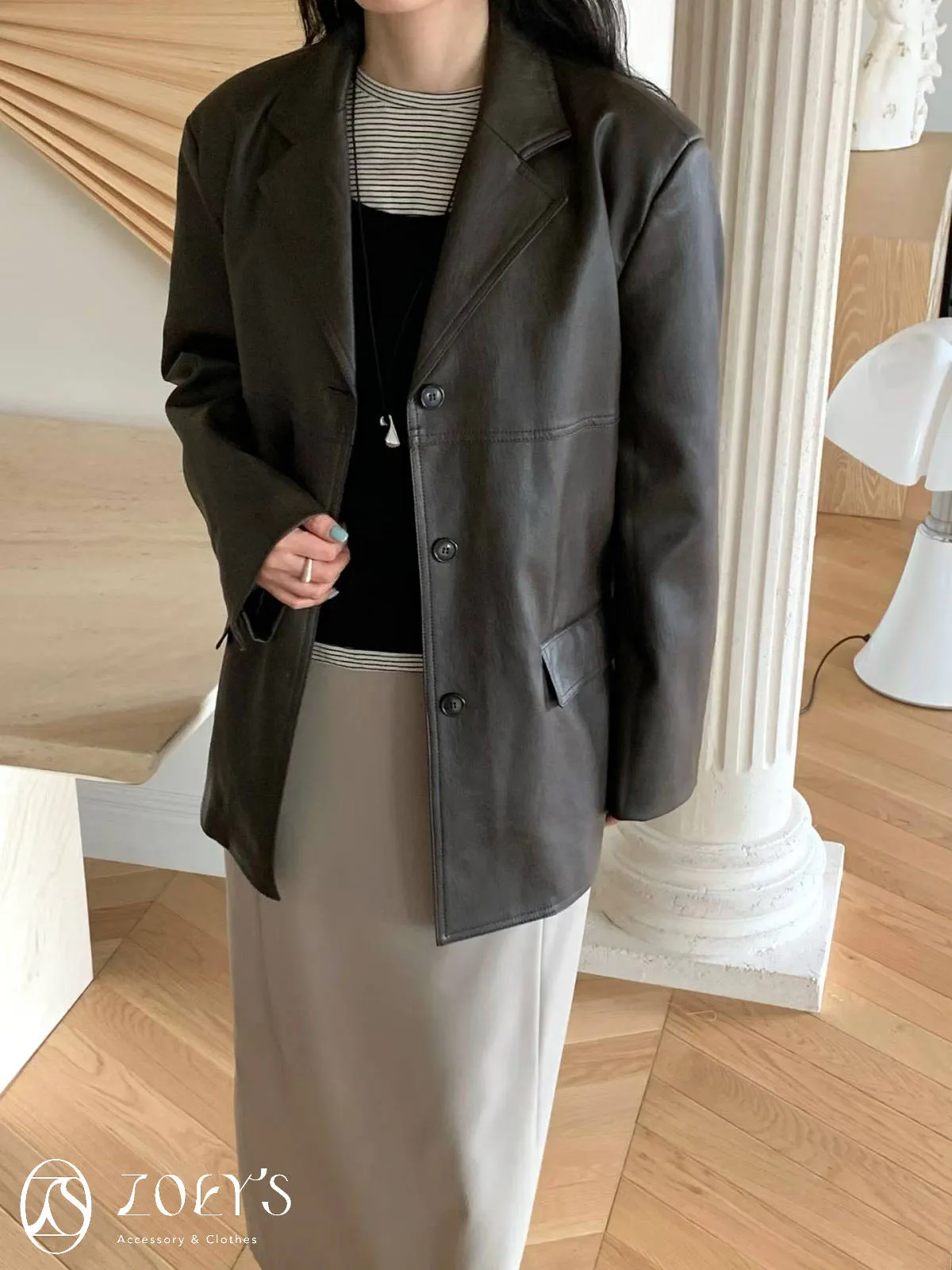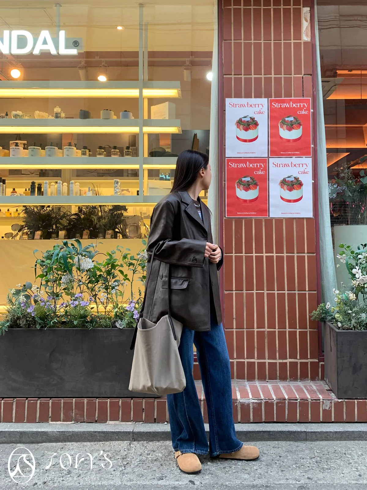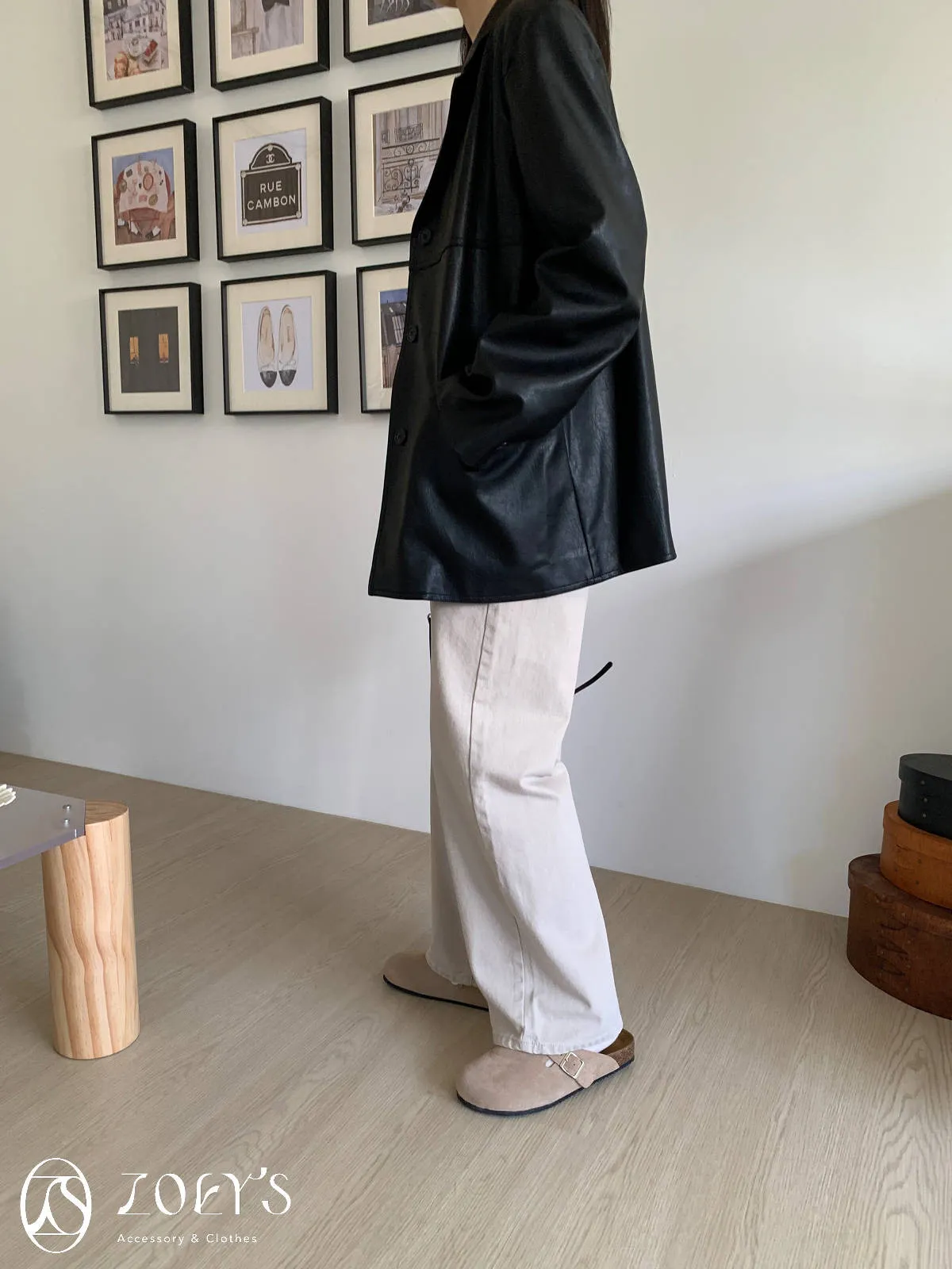 真皮牛皮扣環拖鞋 焦糖/米灰 23-25