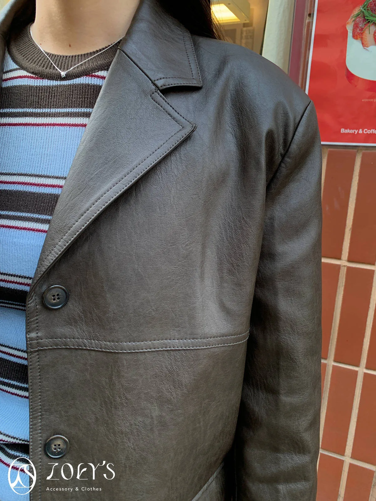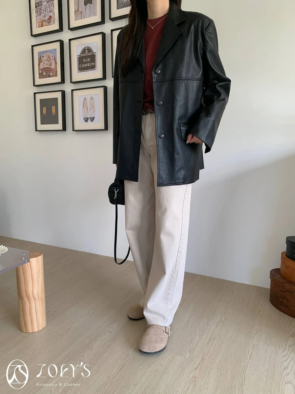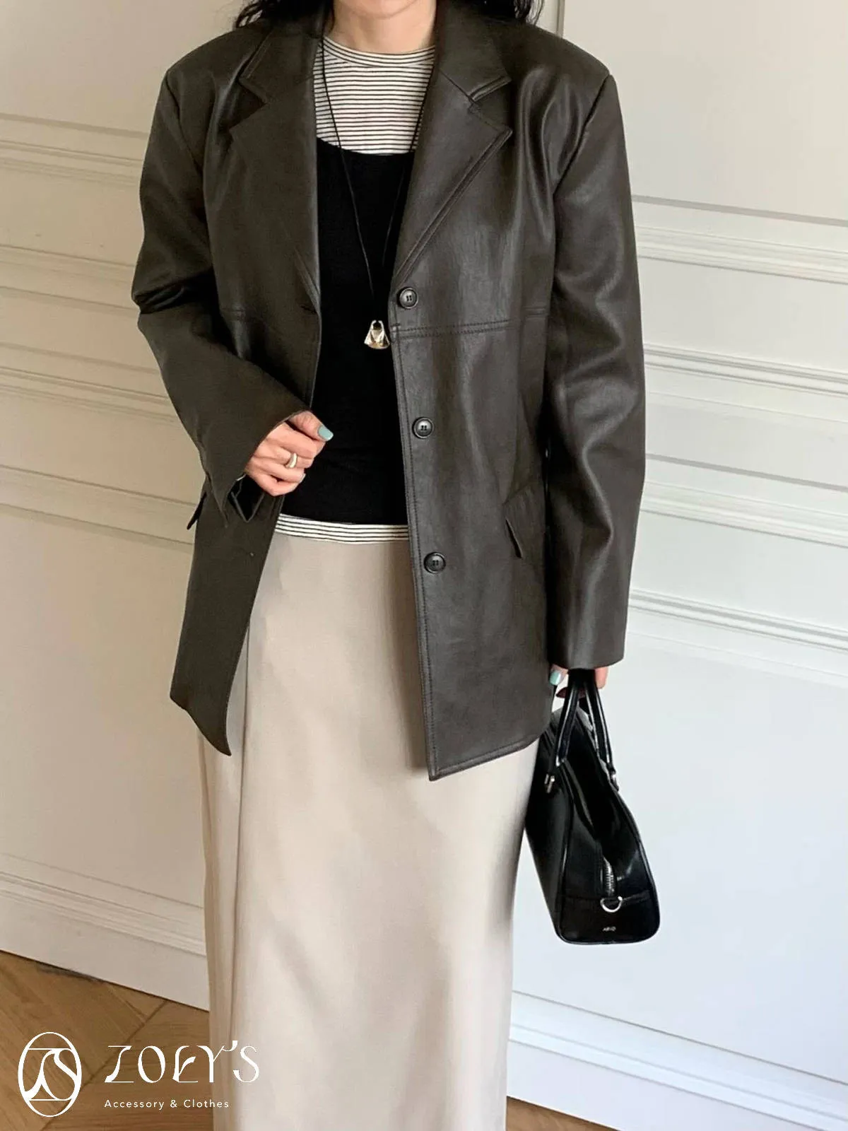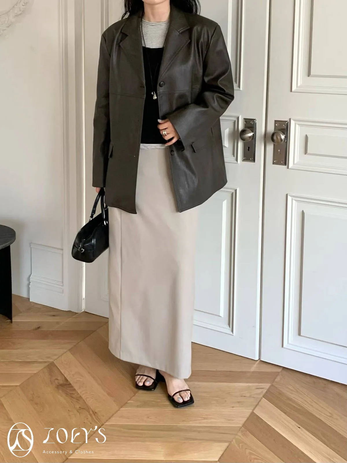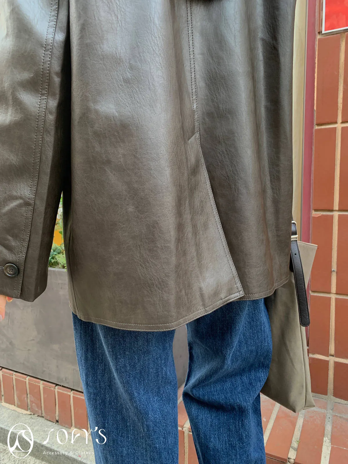 真皮牛皮扣環拖鞋 焦糖/米灰 23-25