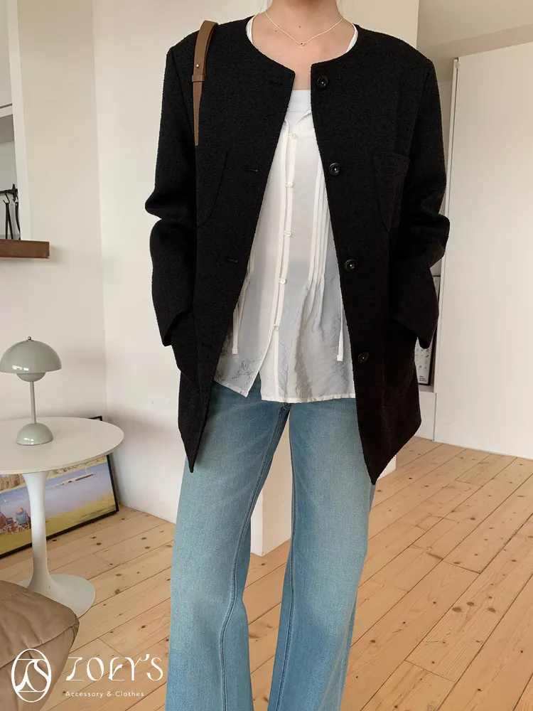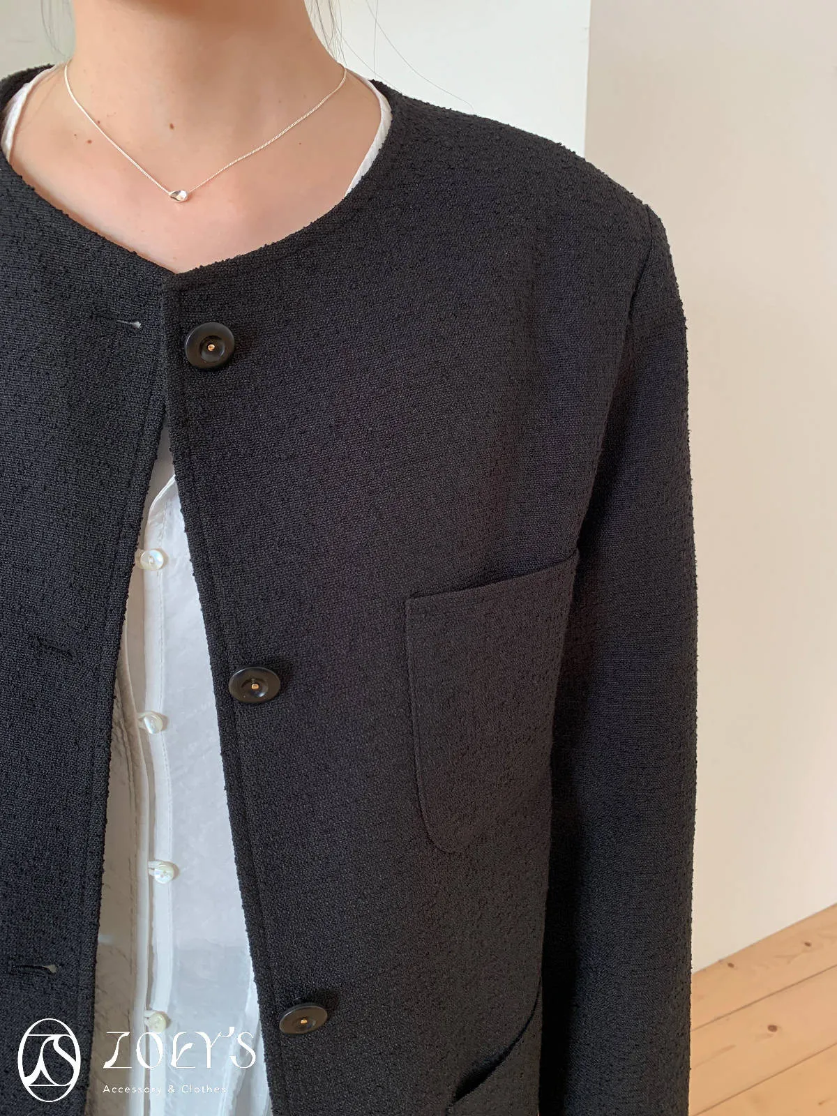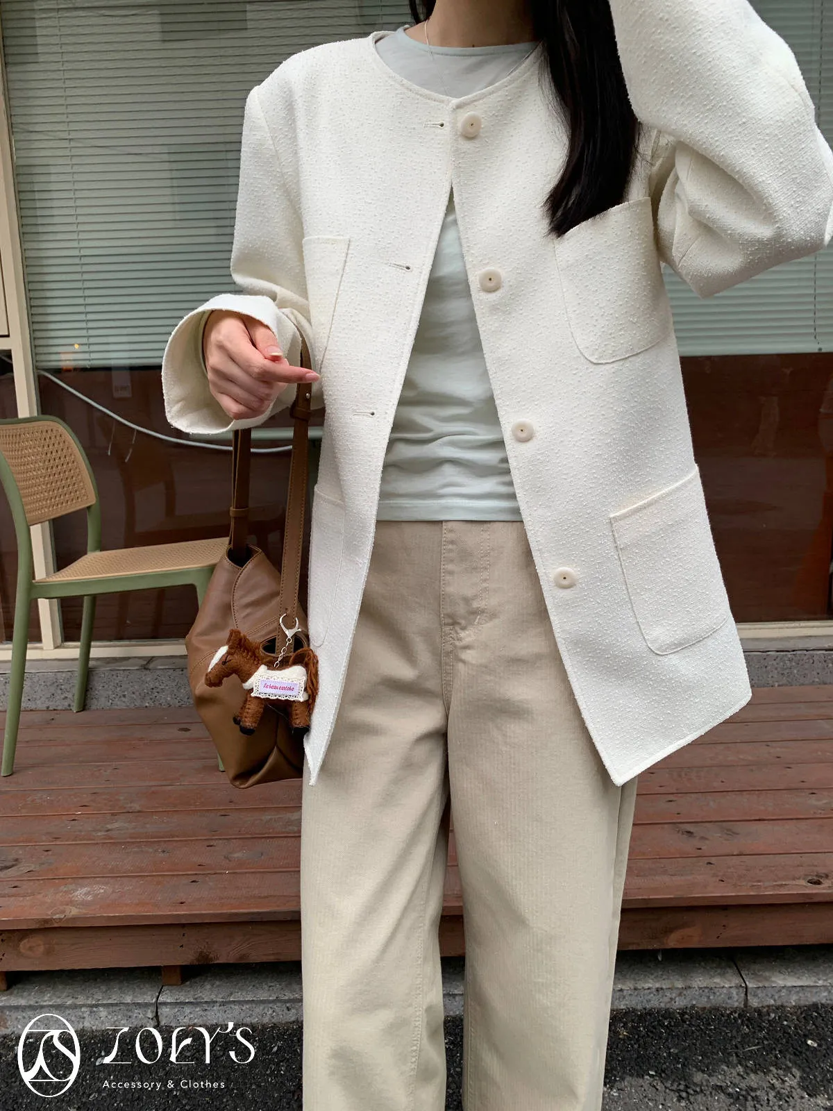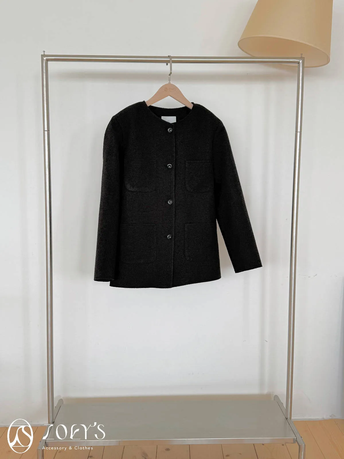 同色系圓釦中間鑲嵌金色,和布料上的細緻顆粒織法帶出剛剛好的貴氣優雅