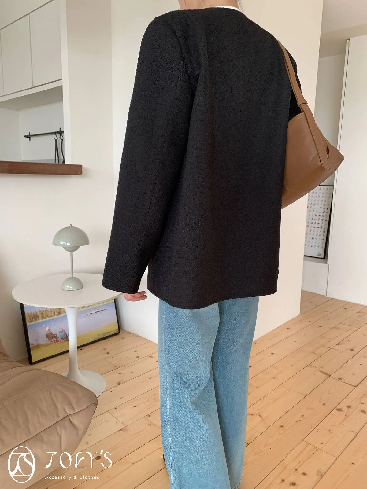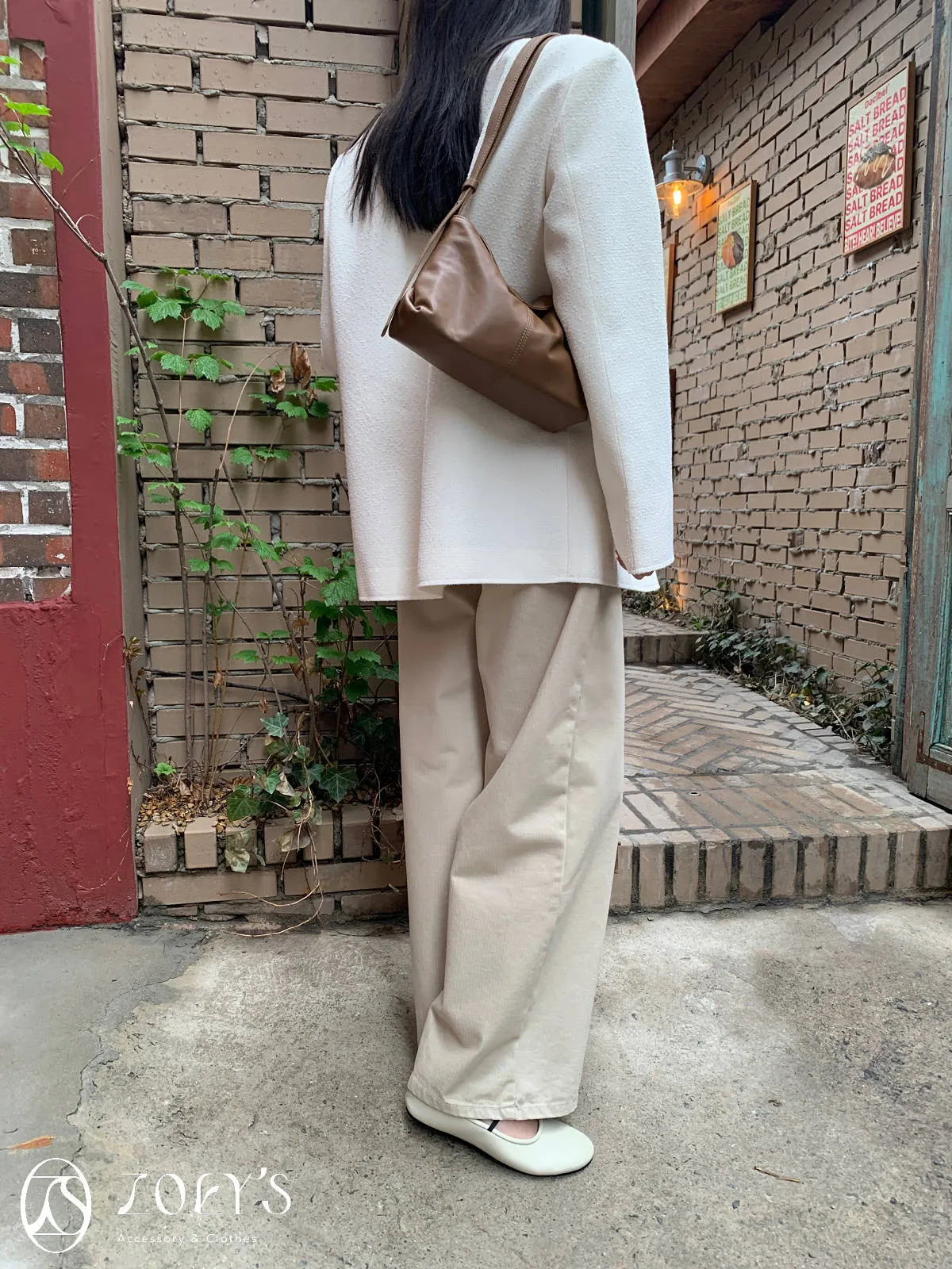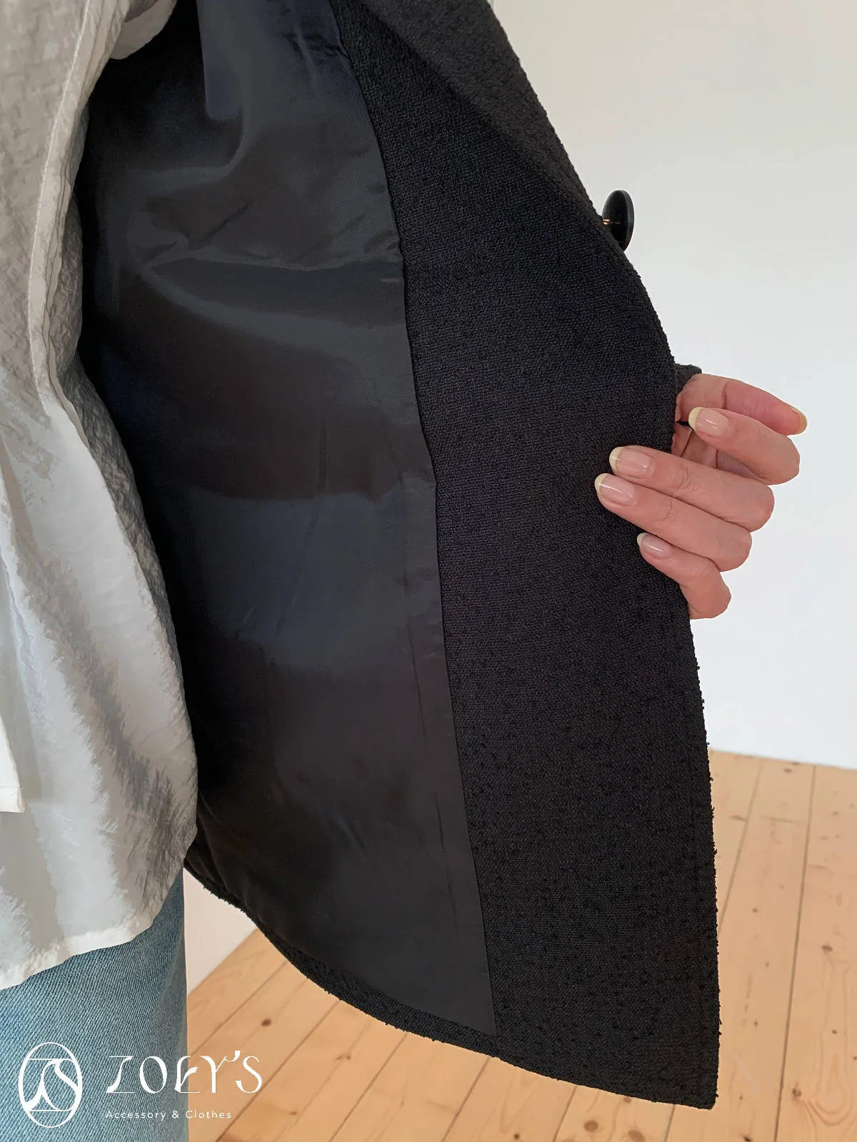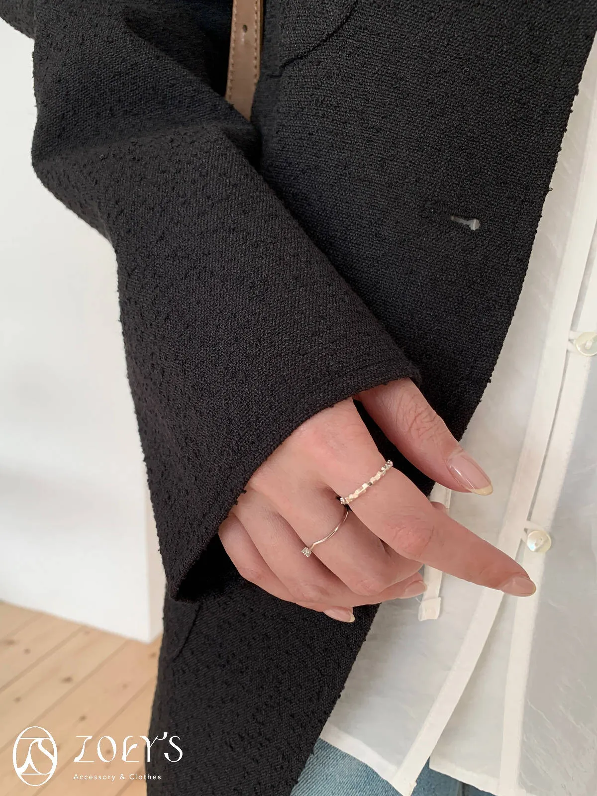 同色系圓釦中間鑲嵌金色,和布料上的細緻顆粒織法帶出剛剛好的貴氣優雅