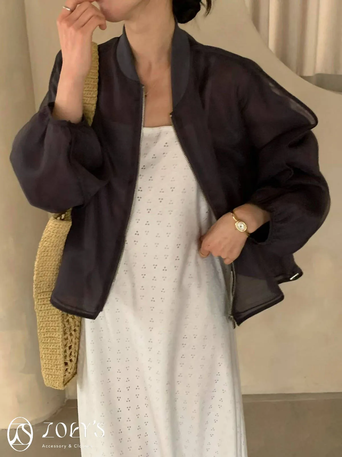 到底設計師怎麼這麼天才想到用透感紗質來做棒球外套