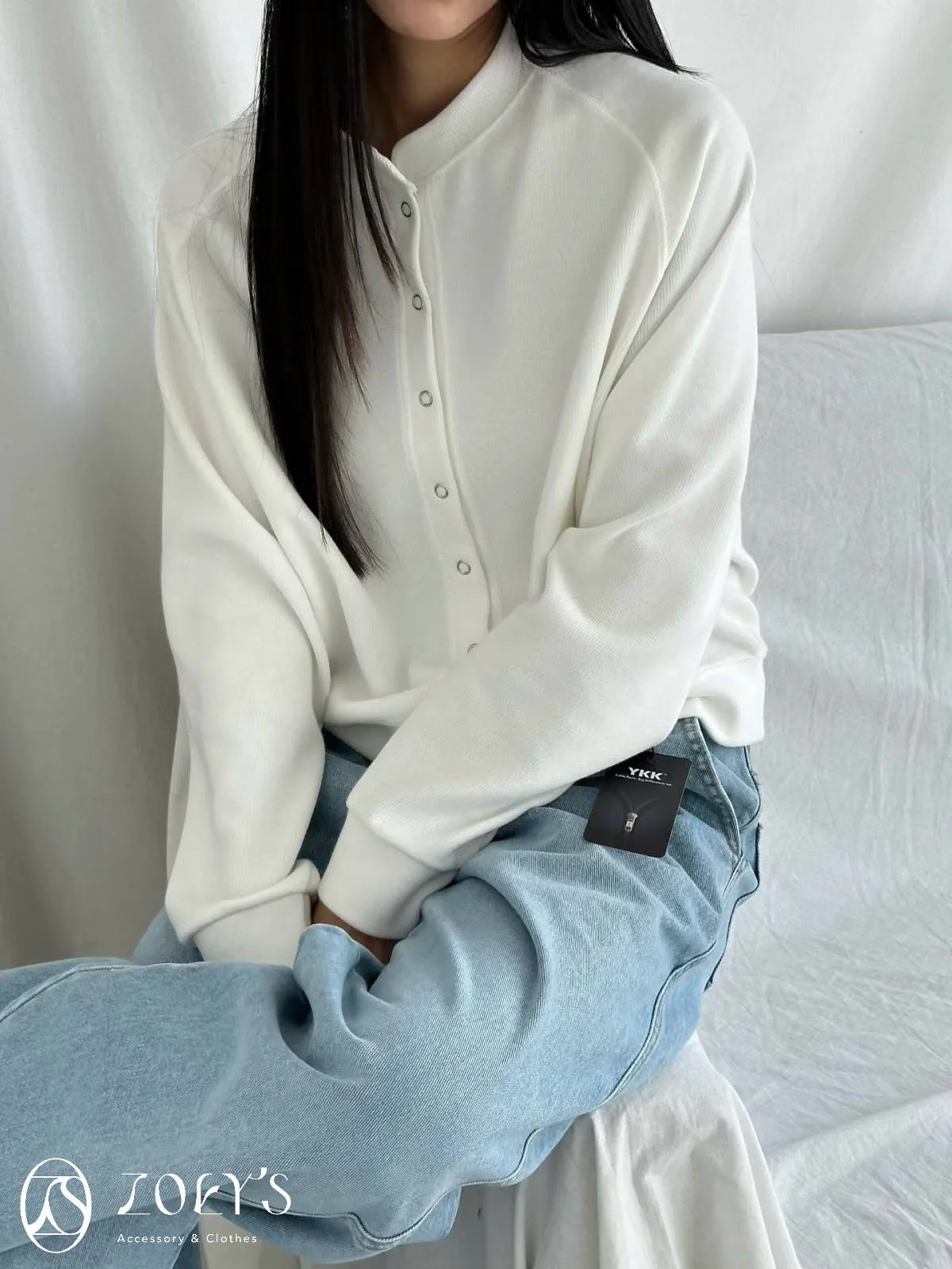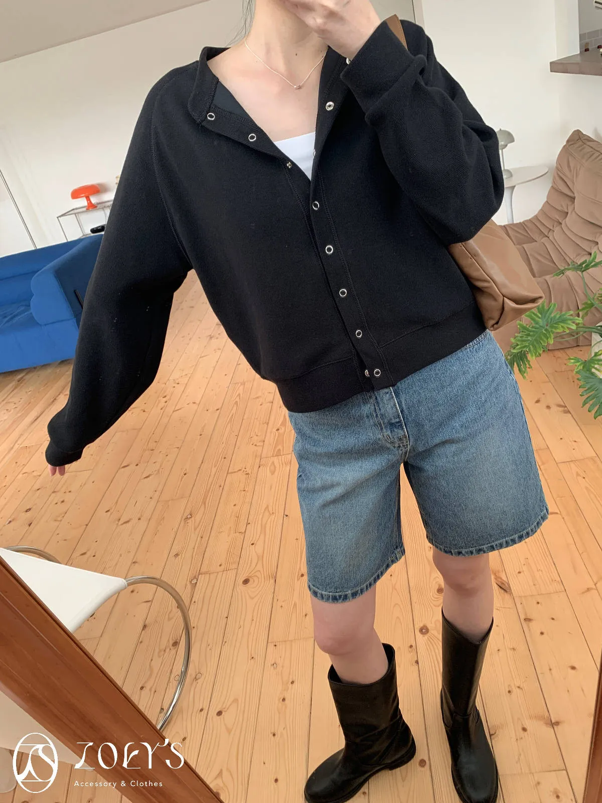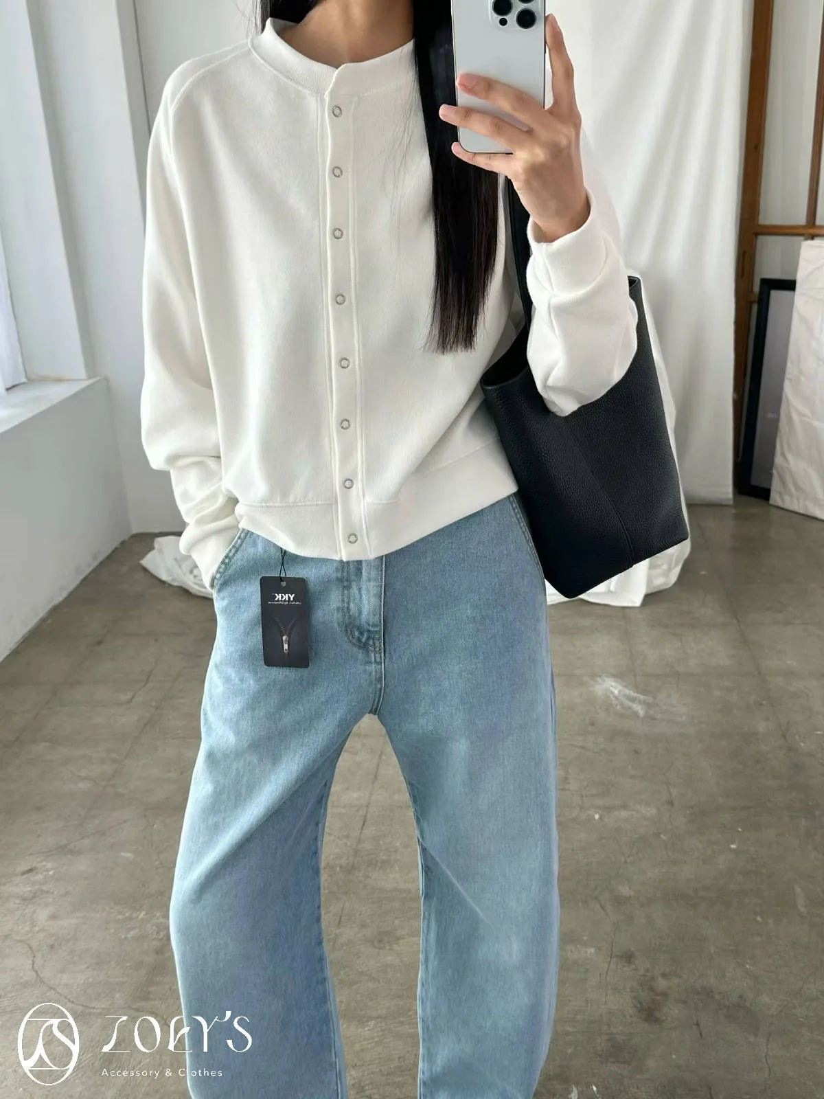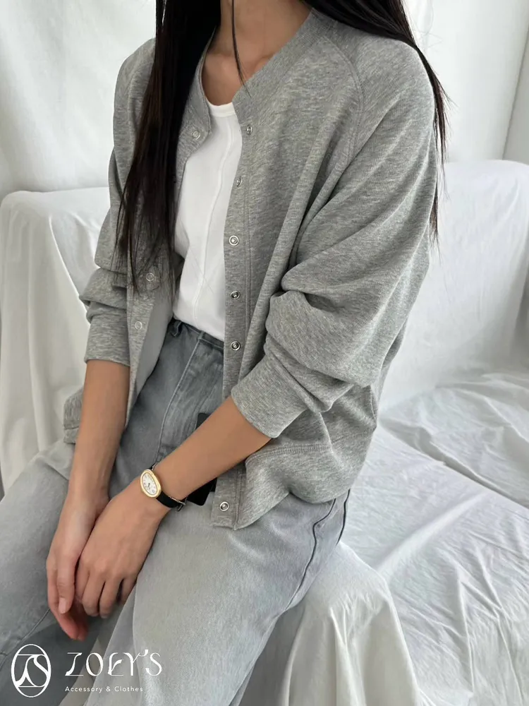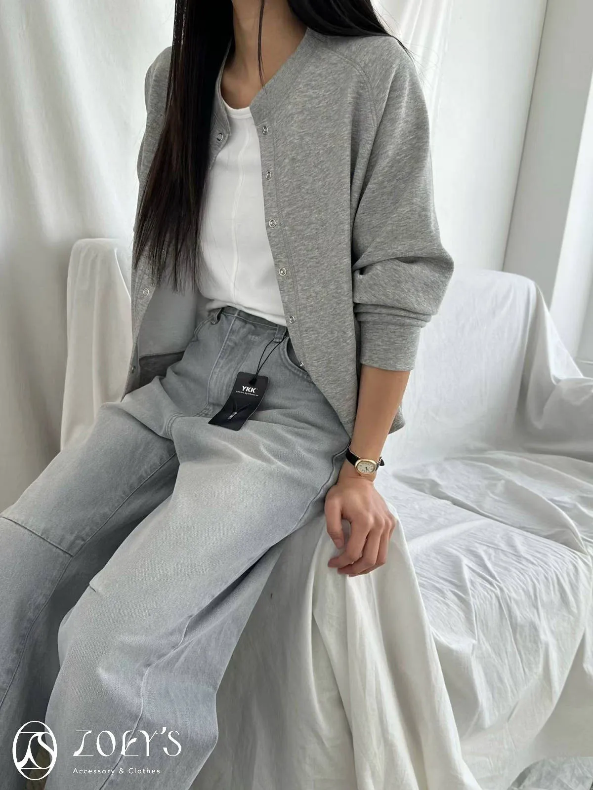 正韓 小銀扣圓領滑棉外套 黑/白/灰
