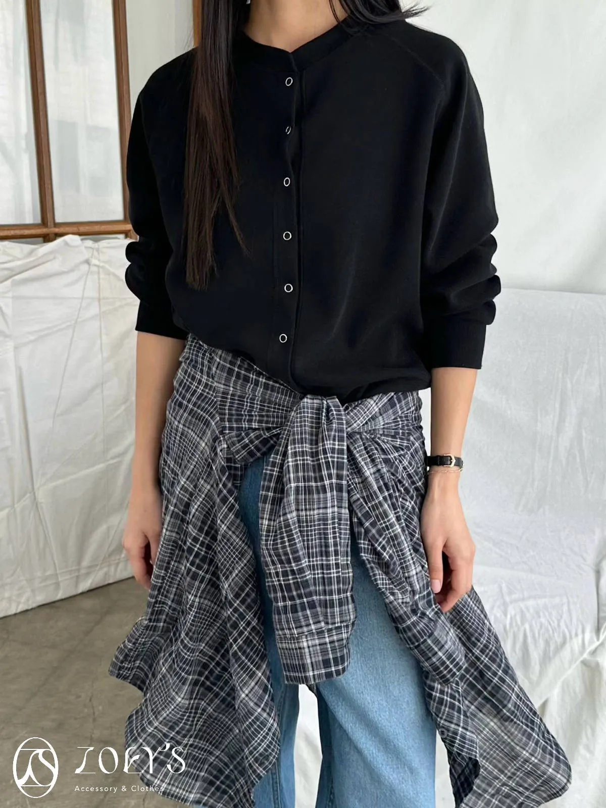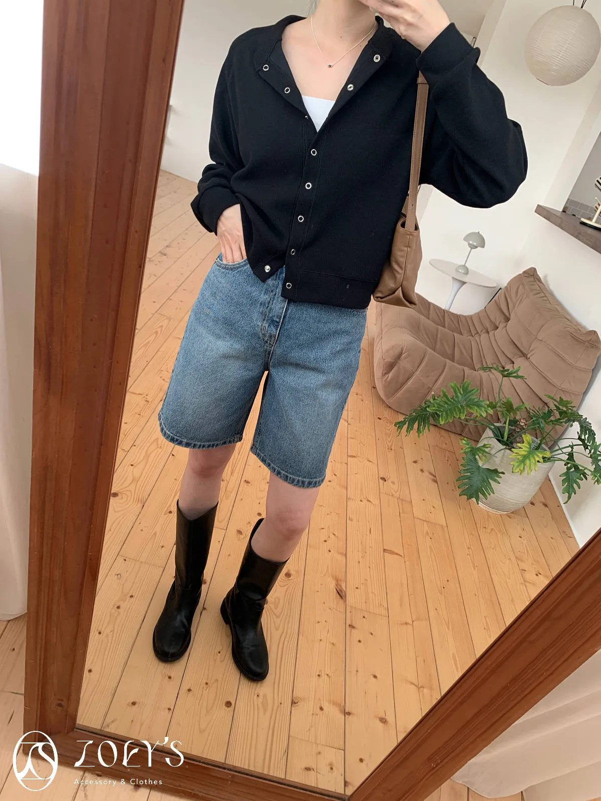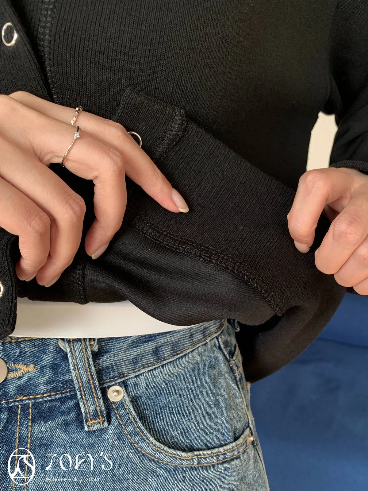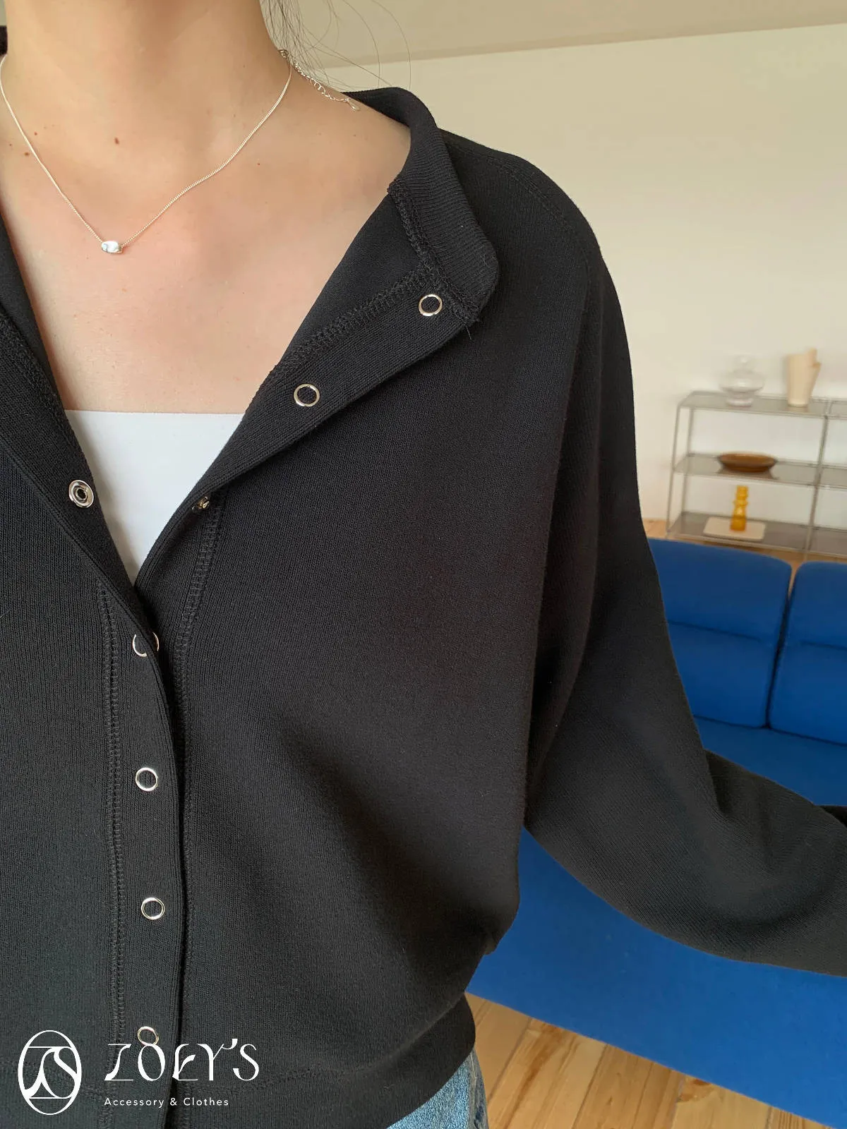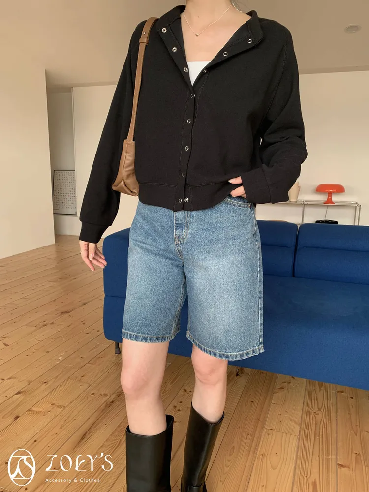 正韓 小銀扣圓領滑棉外套 黑/白/灰