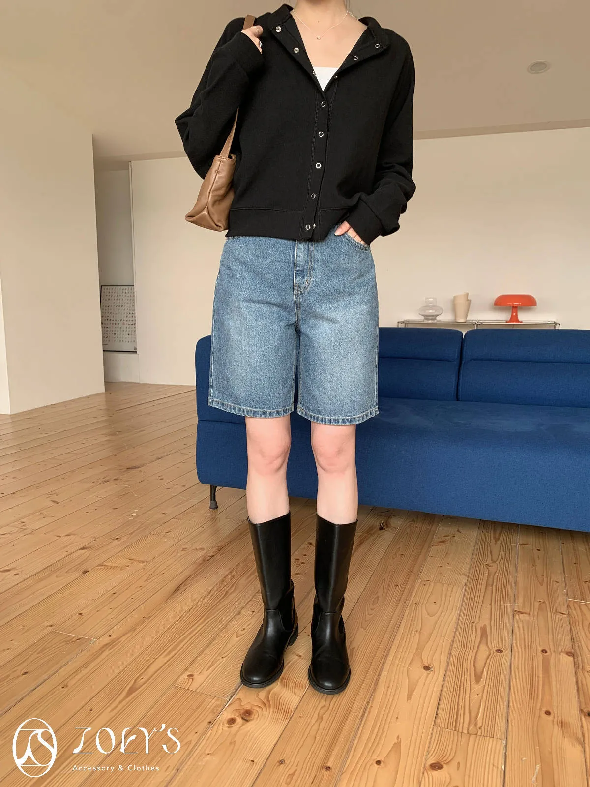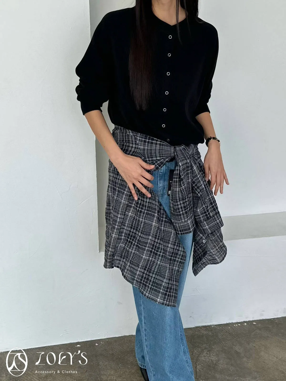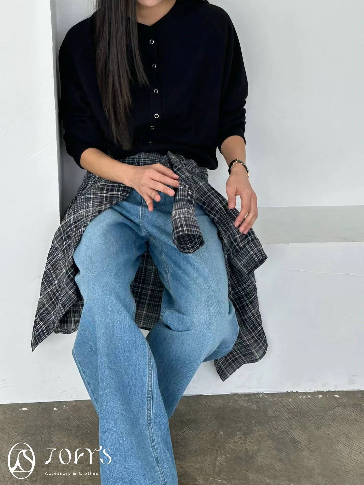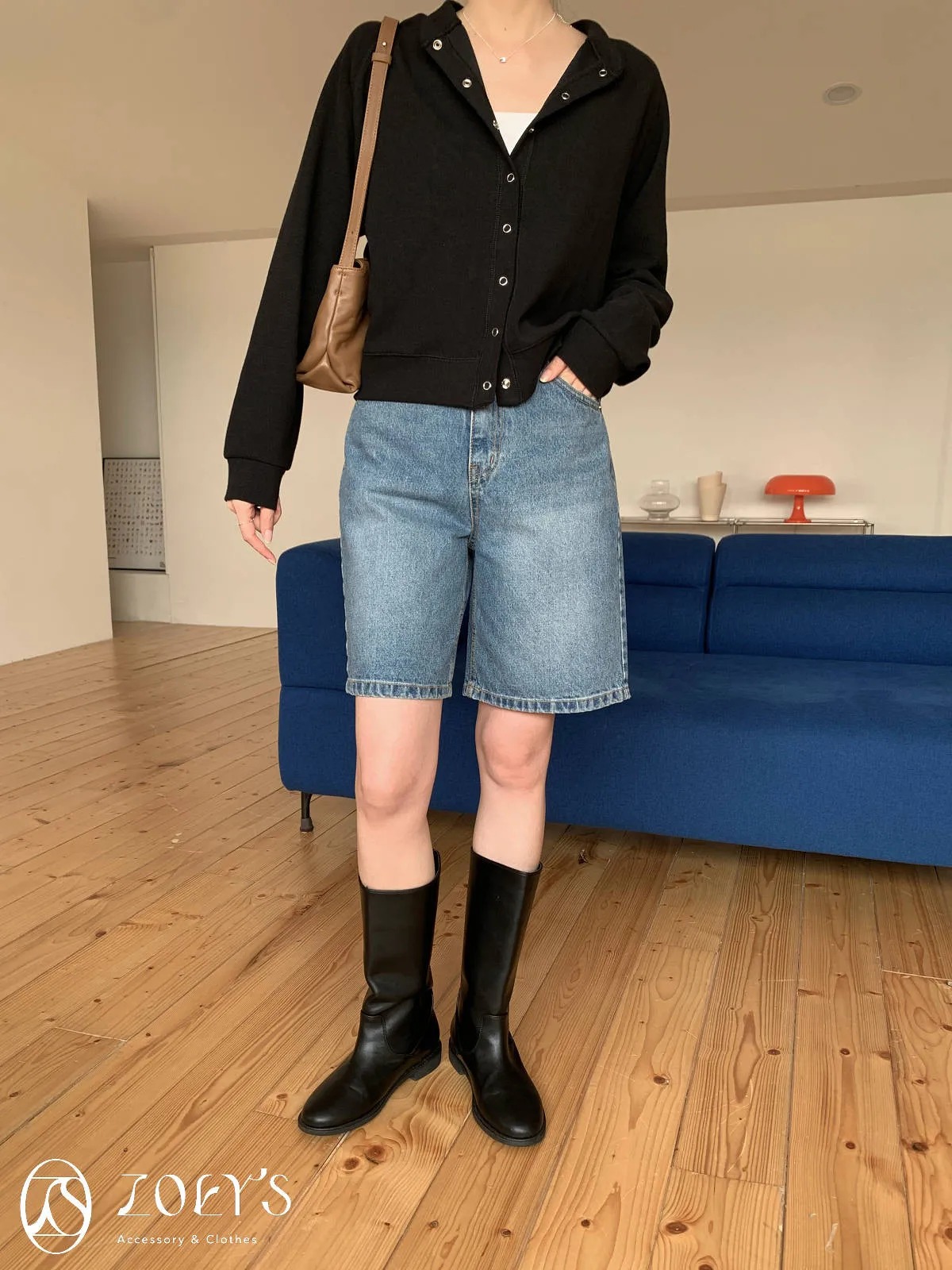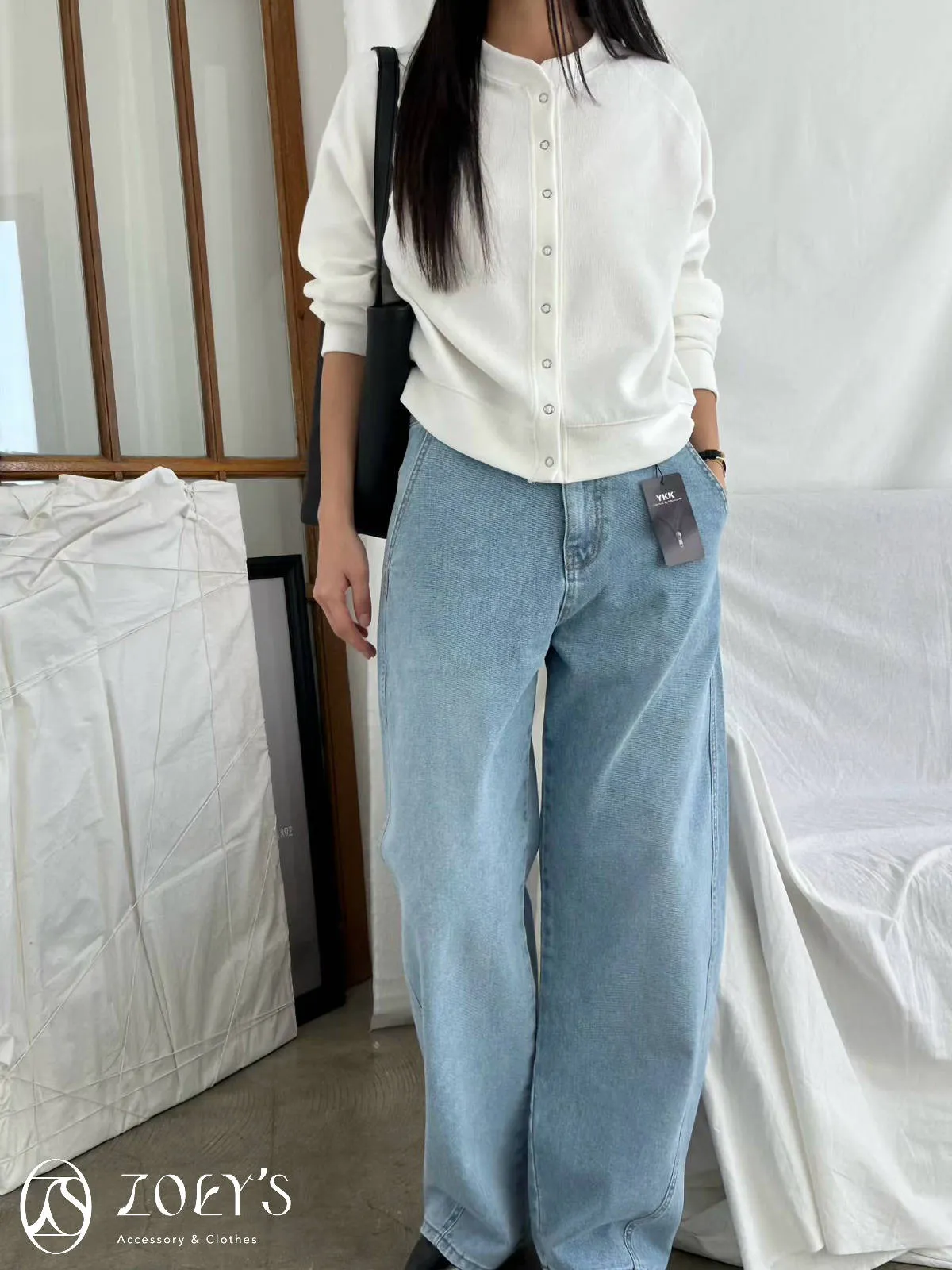 正韓 小銀扣圓領滑棉外套 黑/白/灰