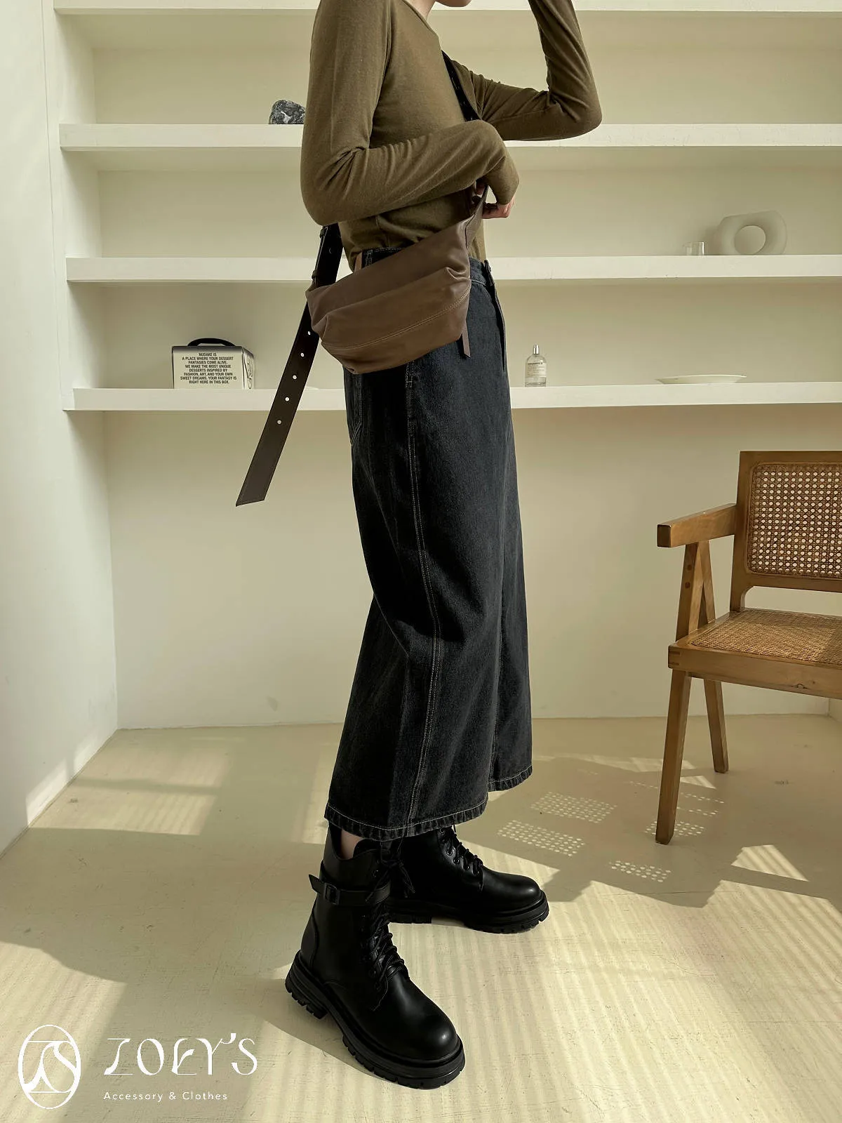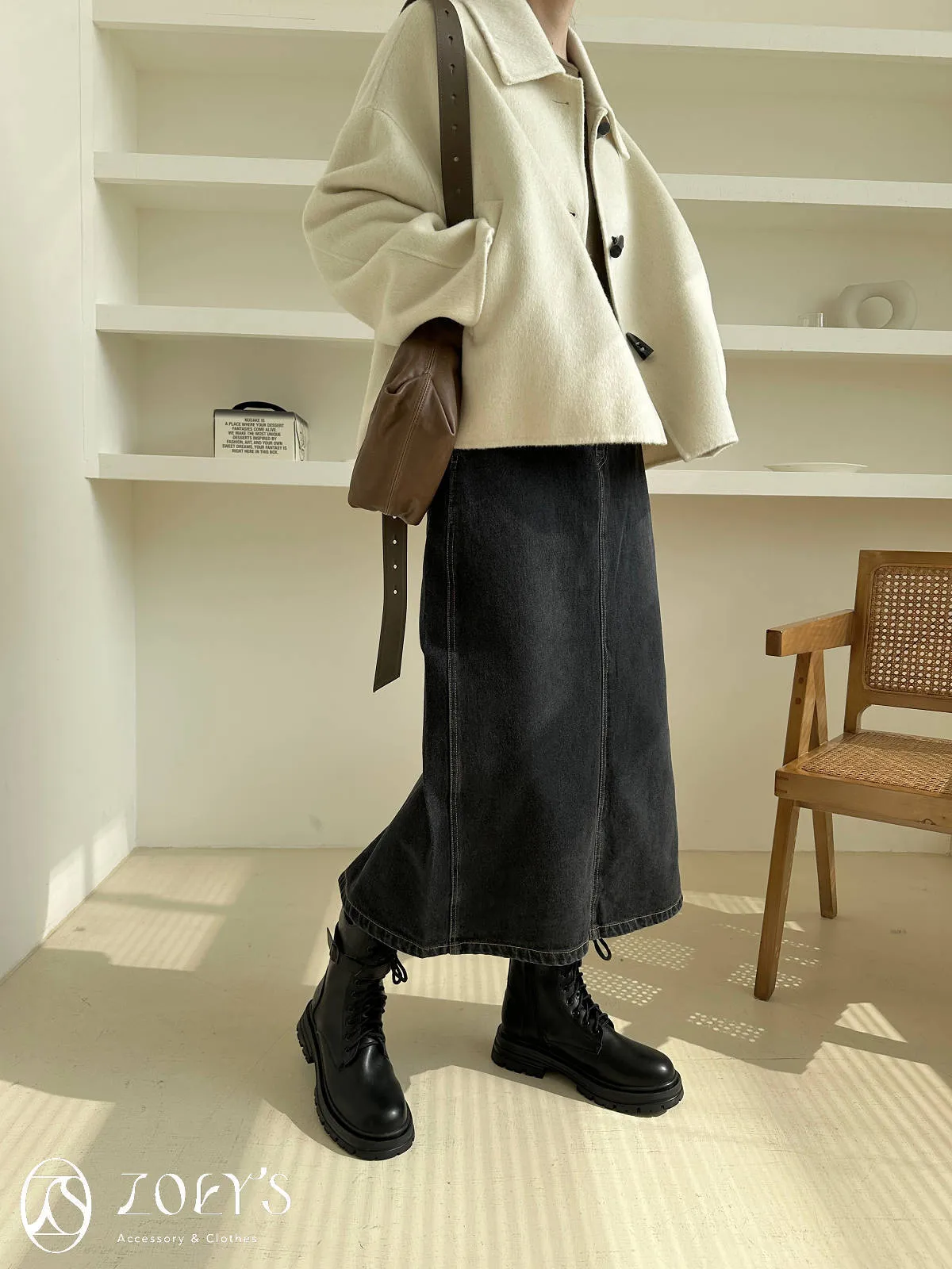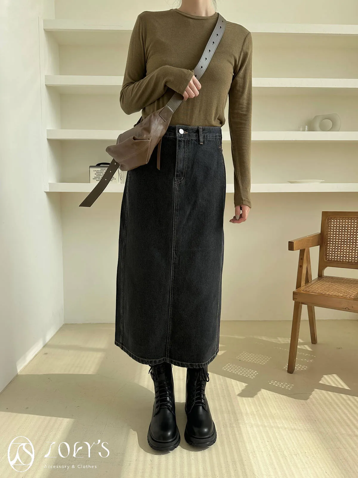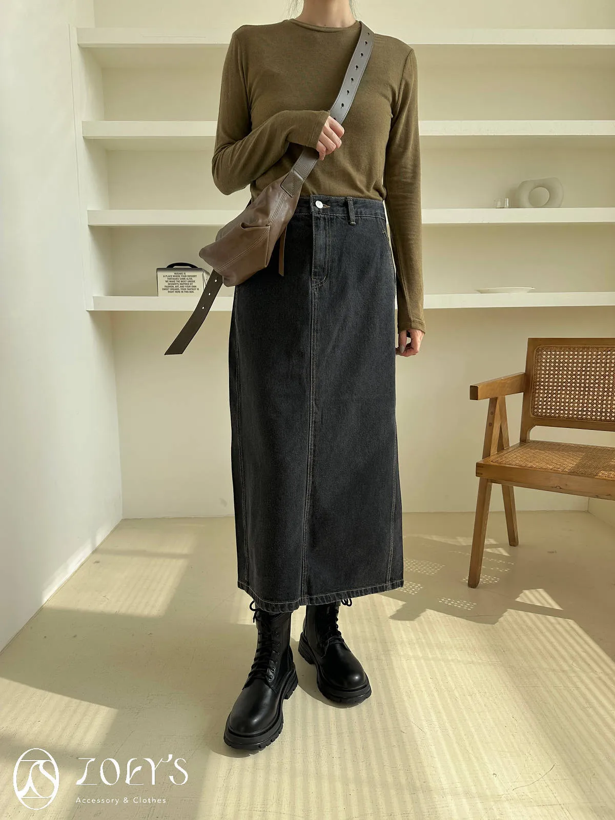 正韓 意外顯瘦腰鬆緊直坑紋開衩裙