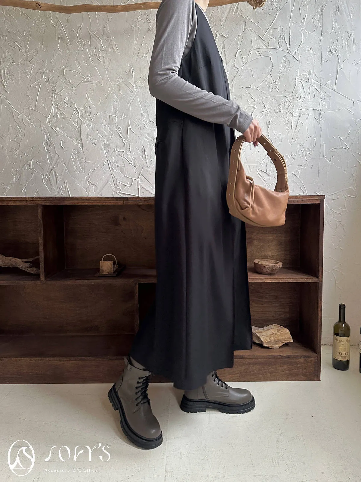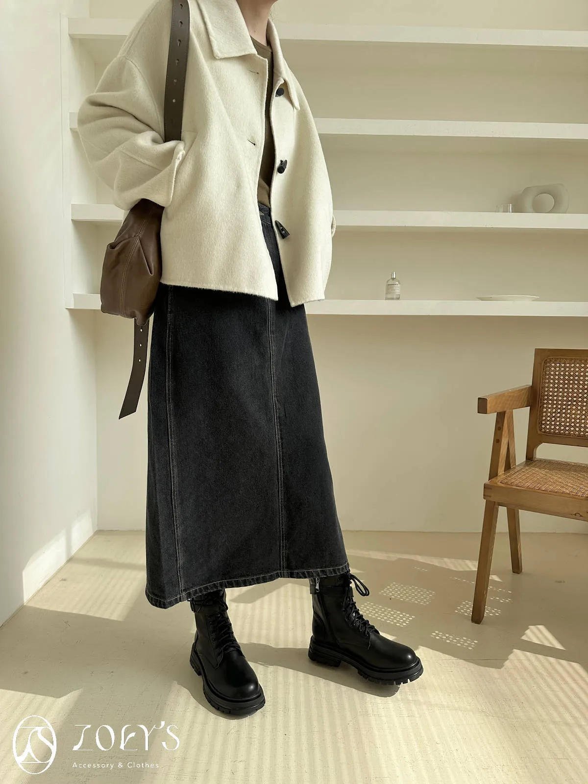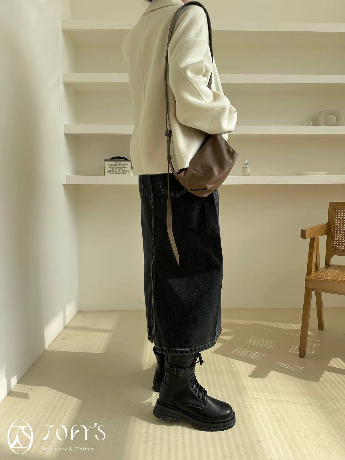 正韓 意外顯瘦腰鬆緊直坑紋開衩裙