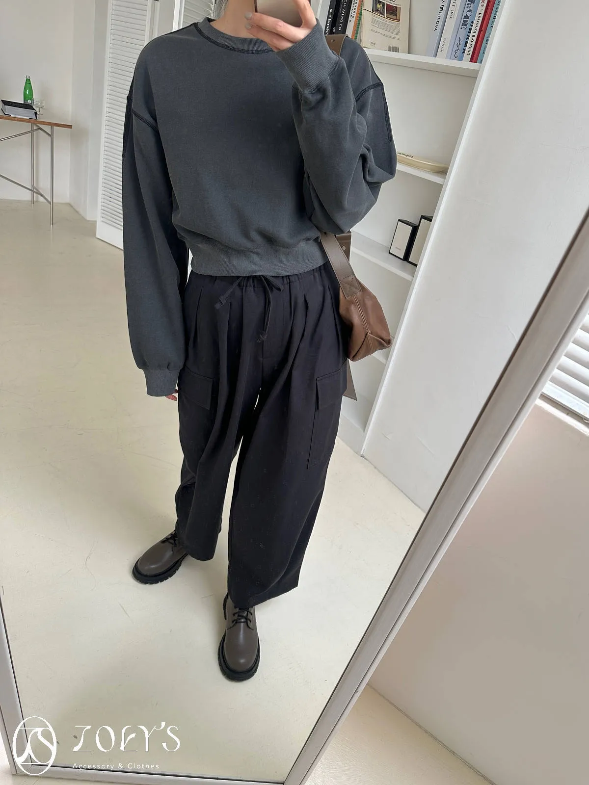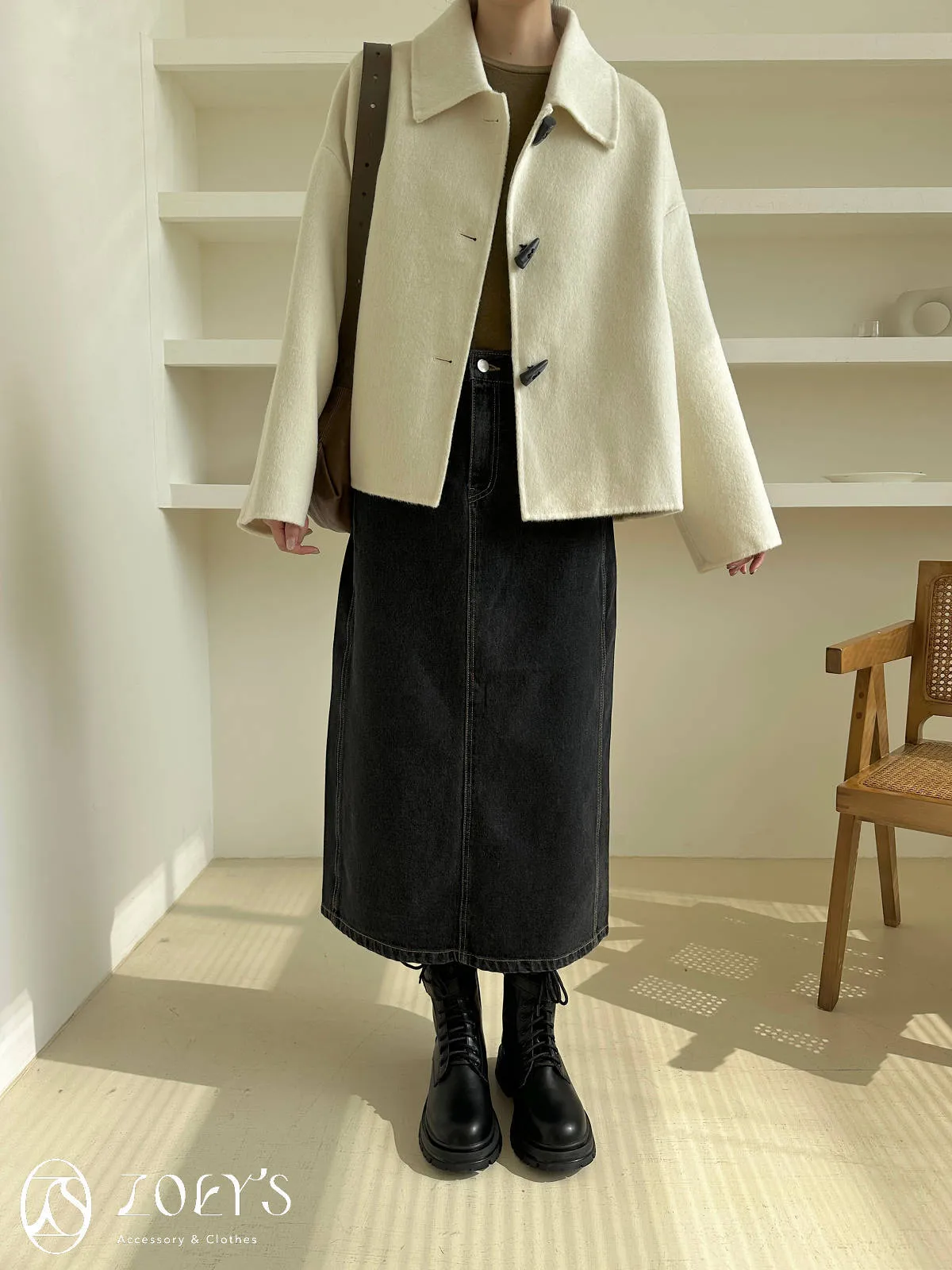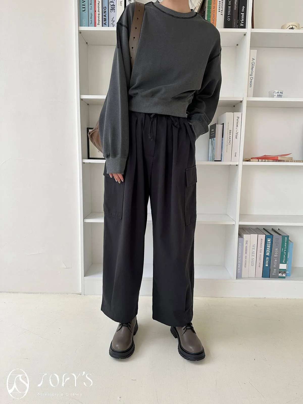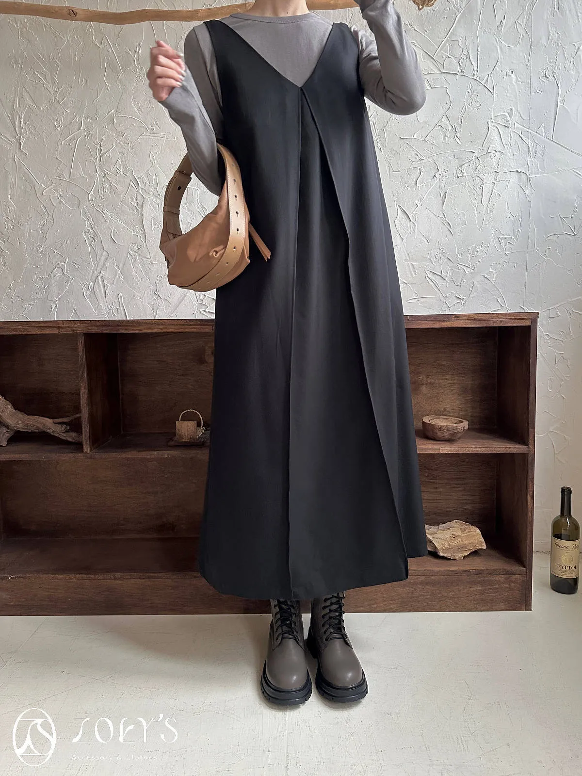 正韓 意外顯瘦腰鬆緊直坑紋開衩裙