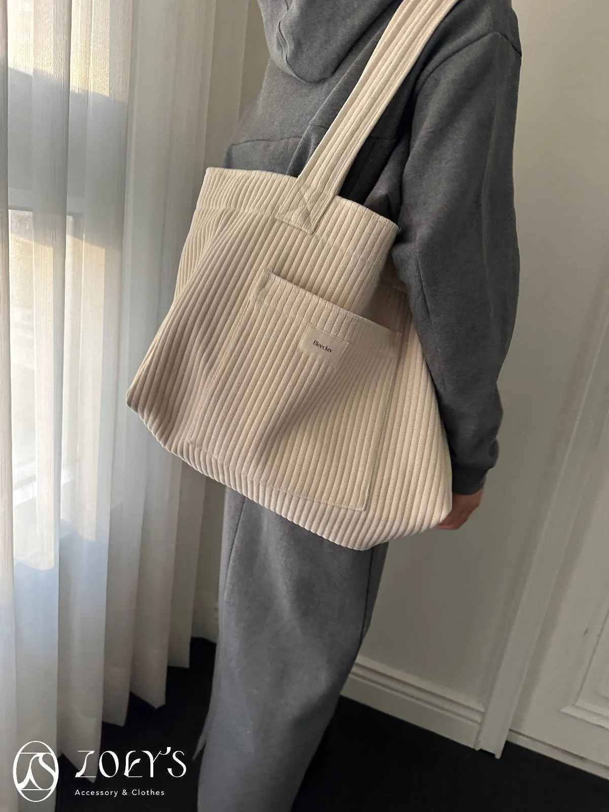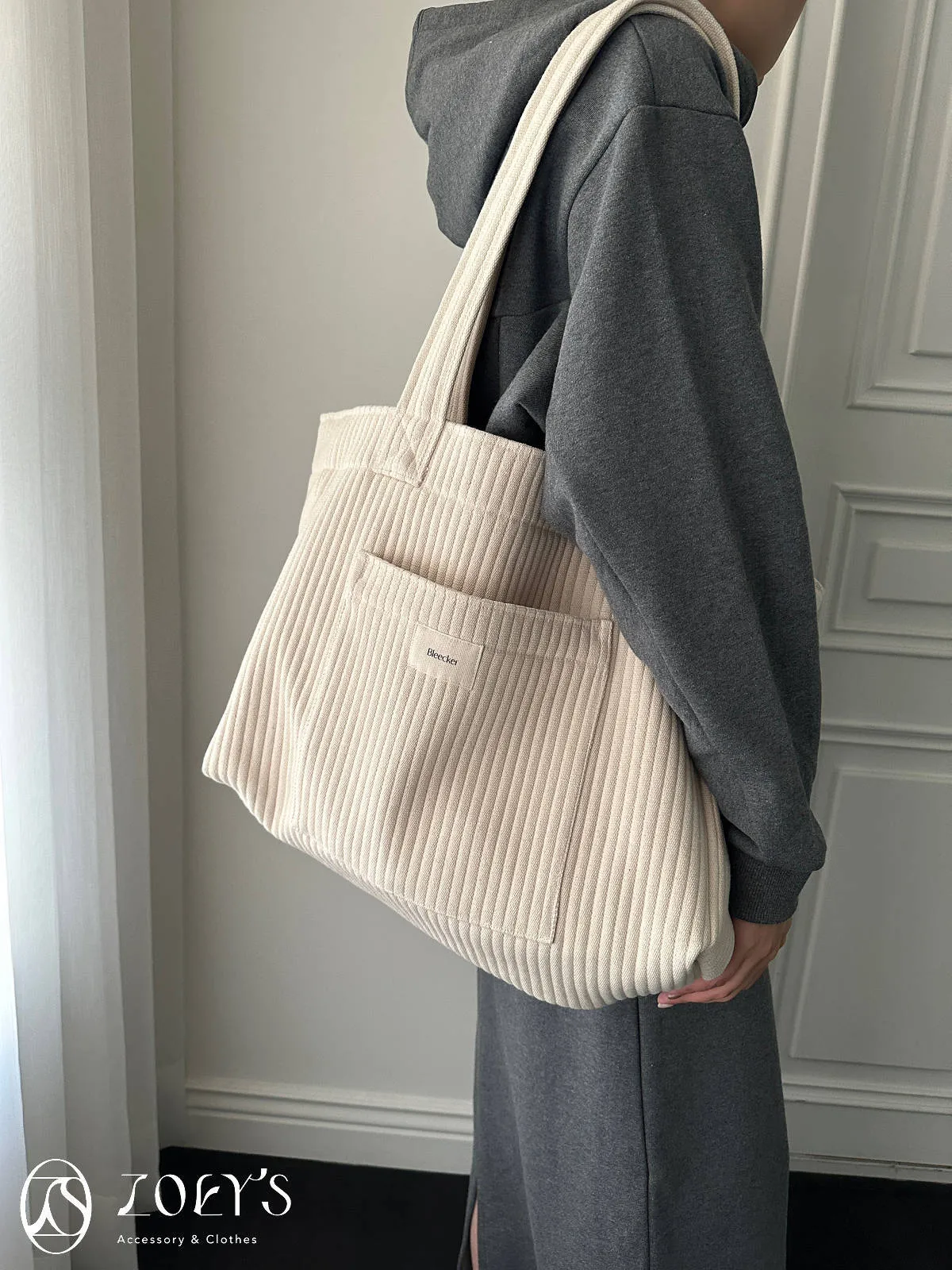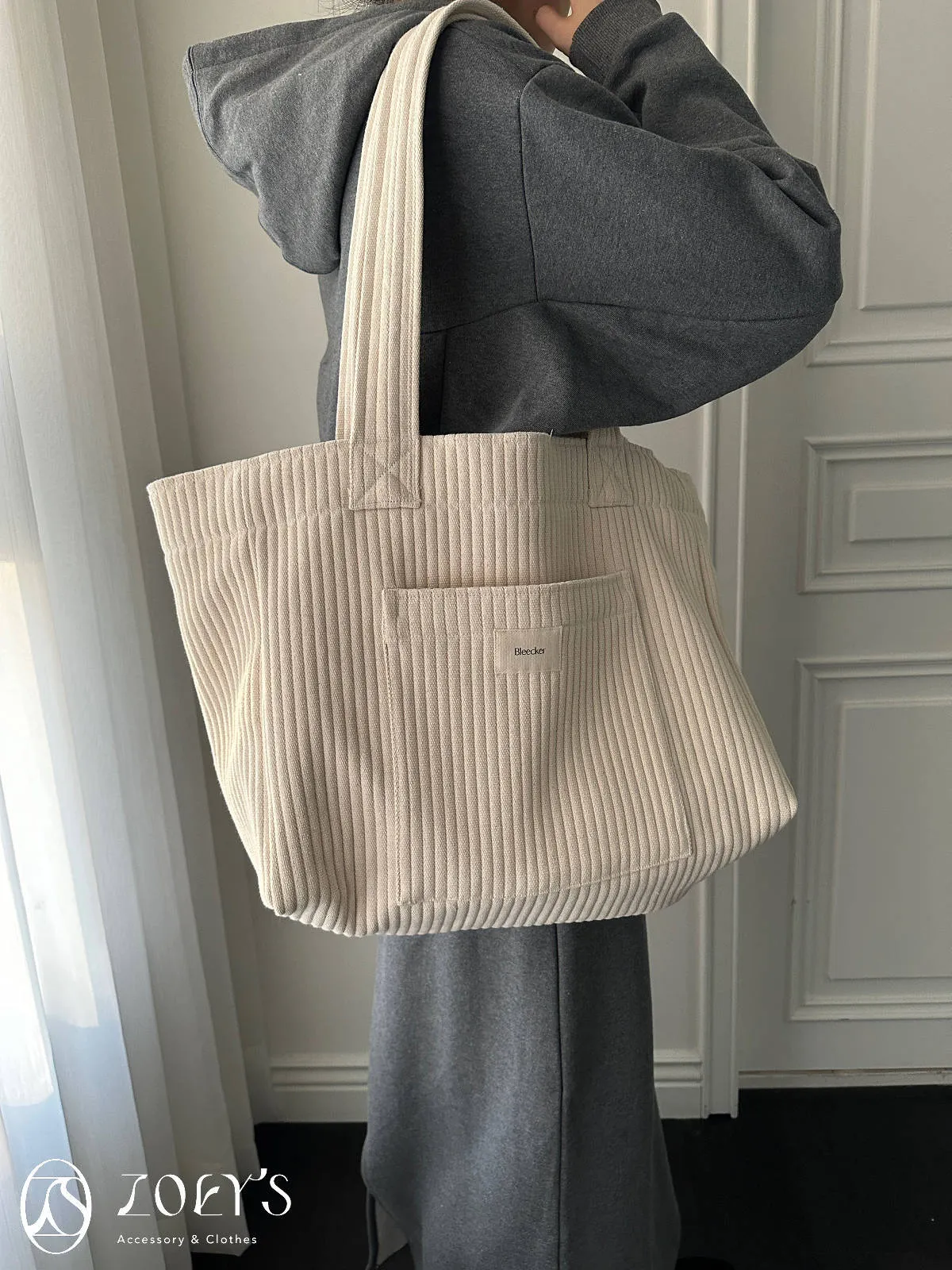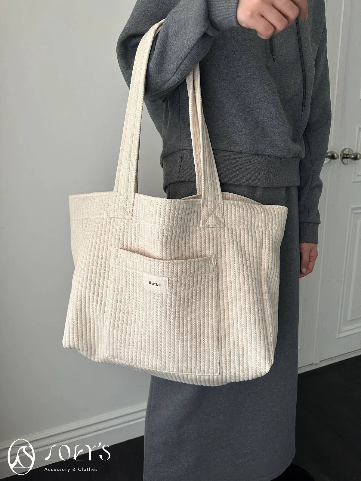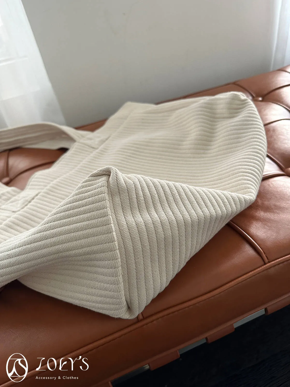 正韓 奶油直紋大容量布包 現貨