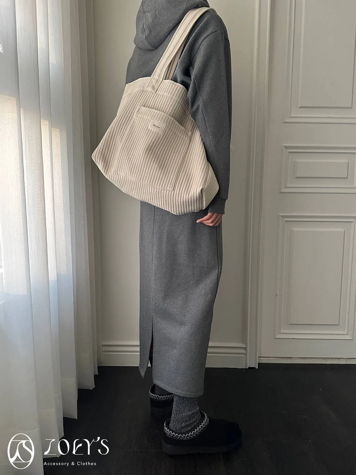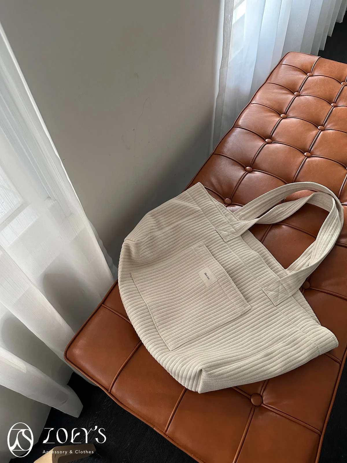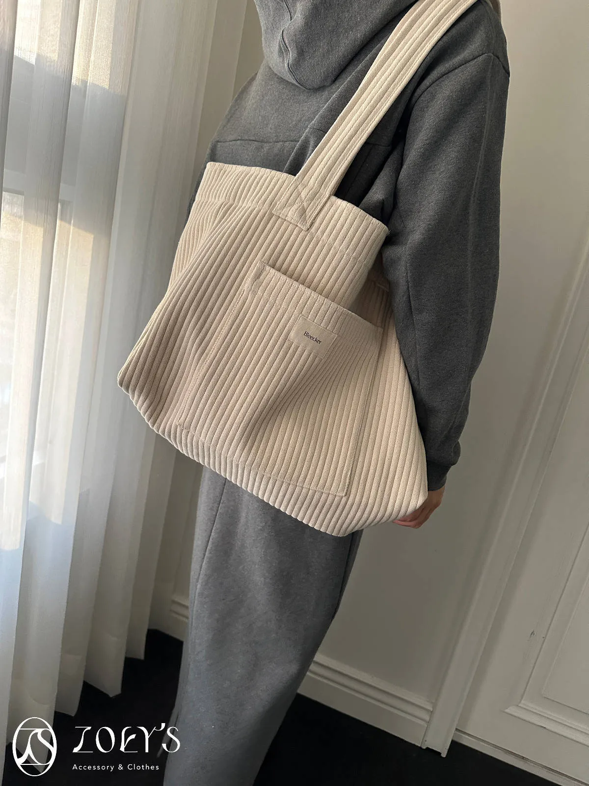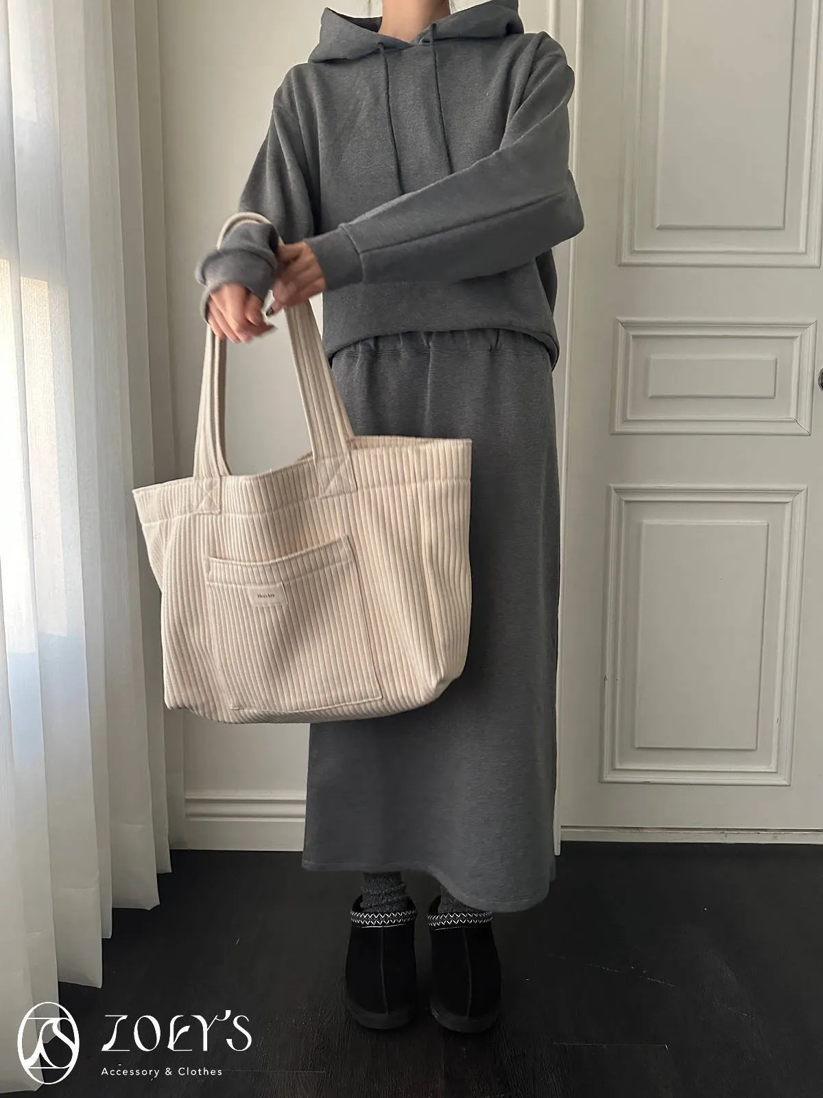 正韓 奶油直紋大容量布包 現貨