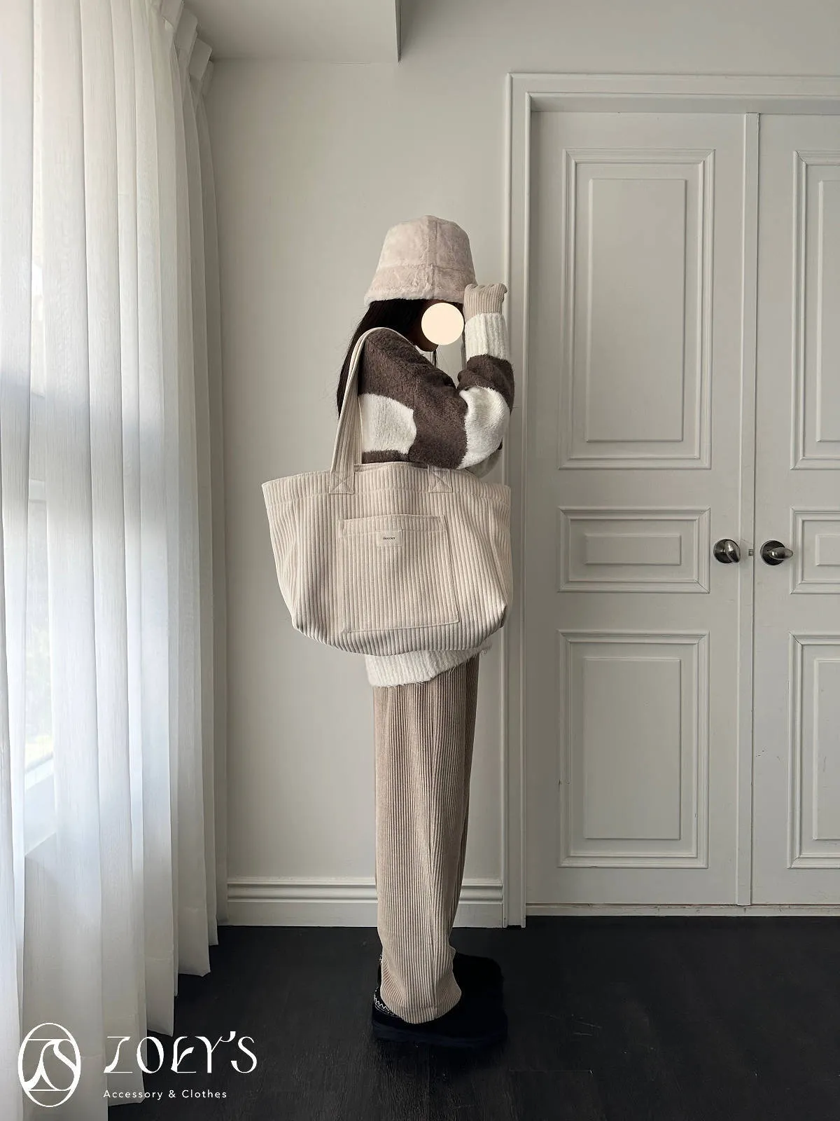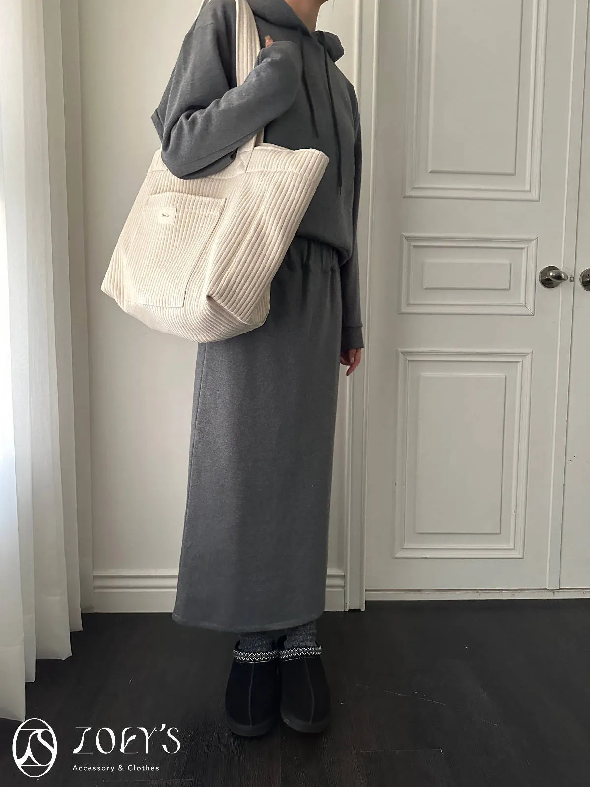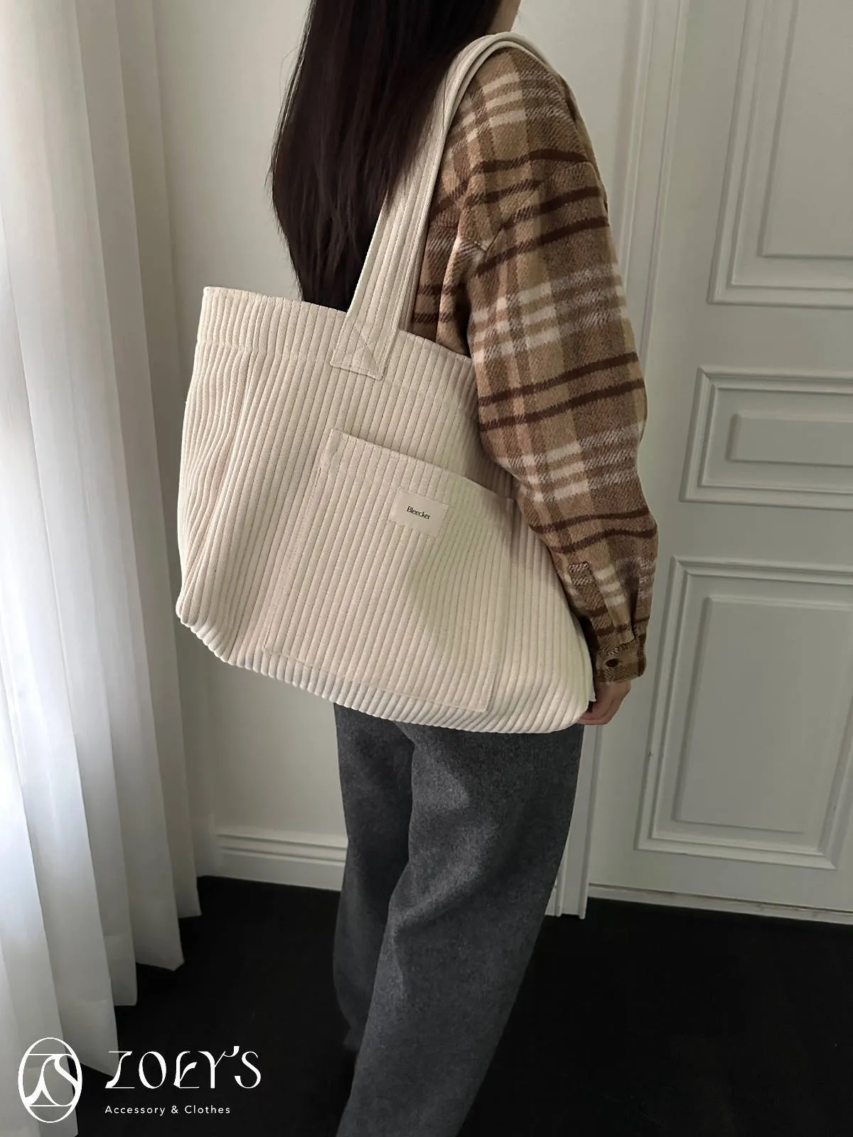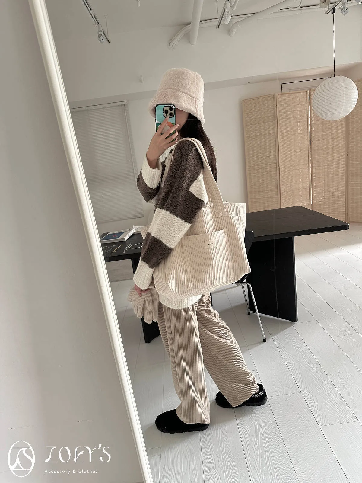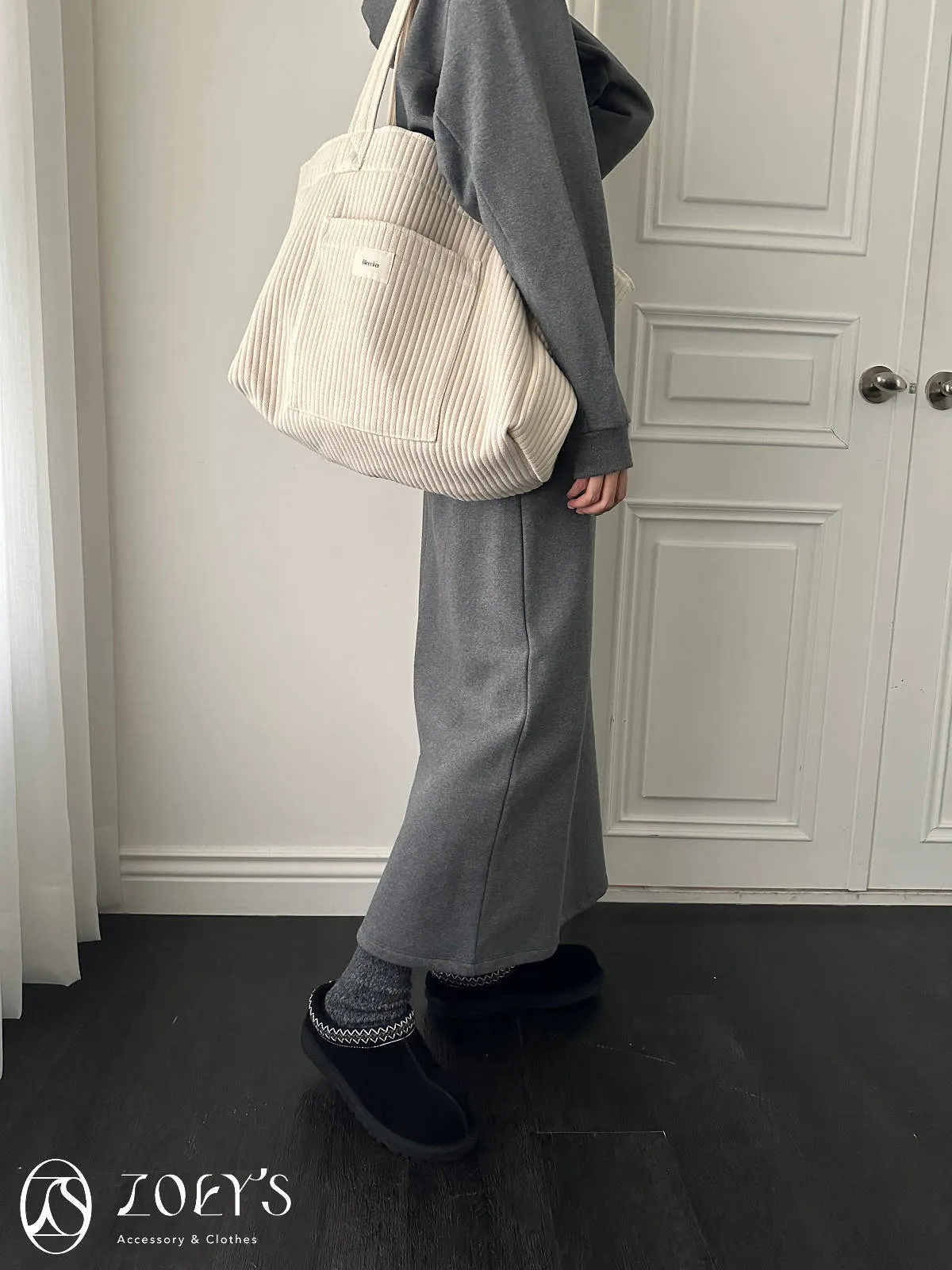 正韓 奶油直紋大容量布包 現貨