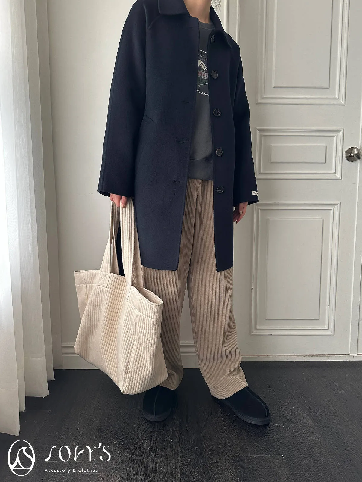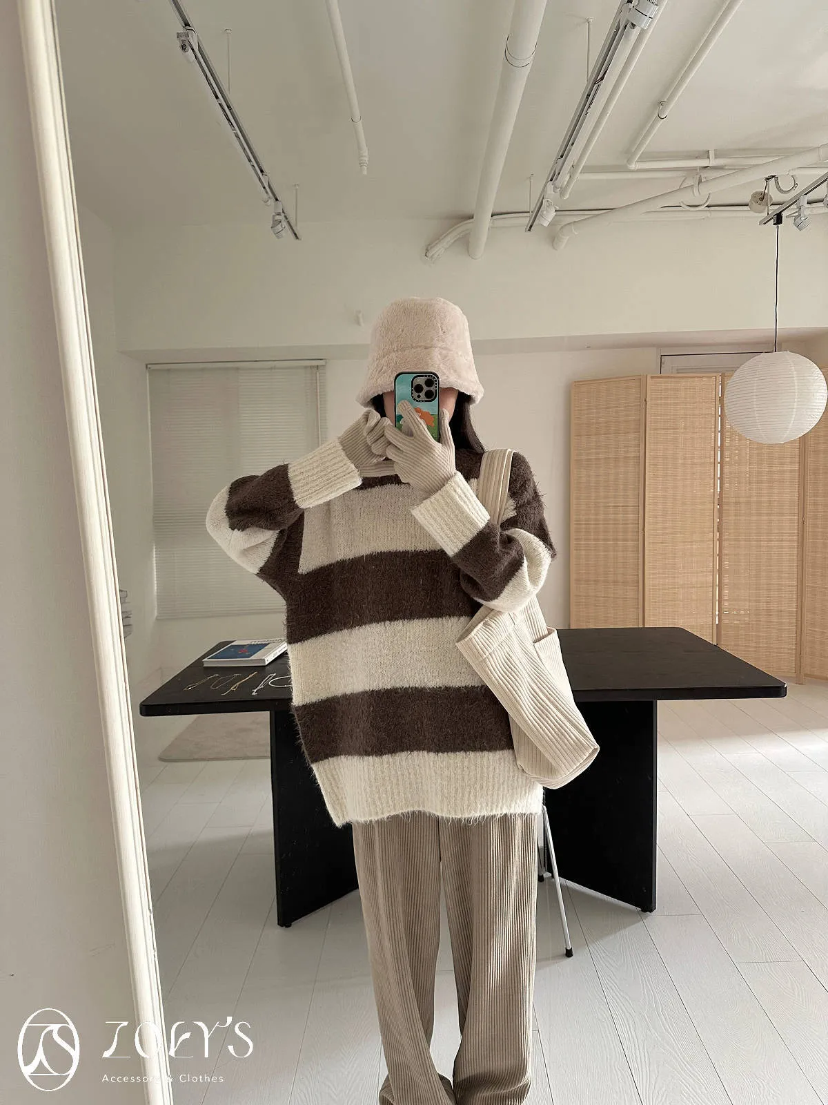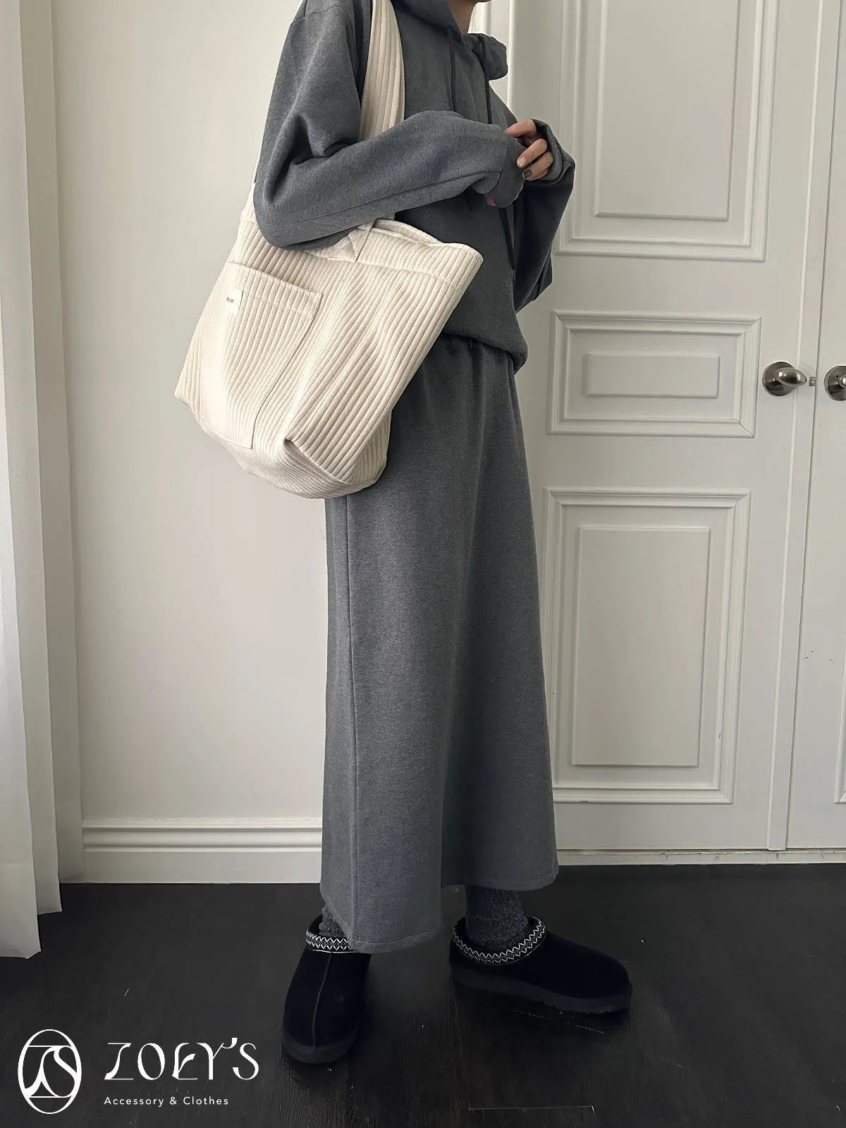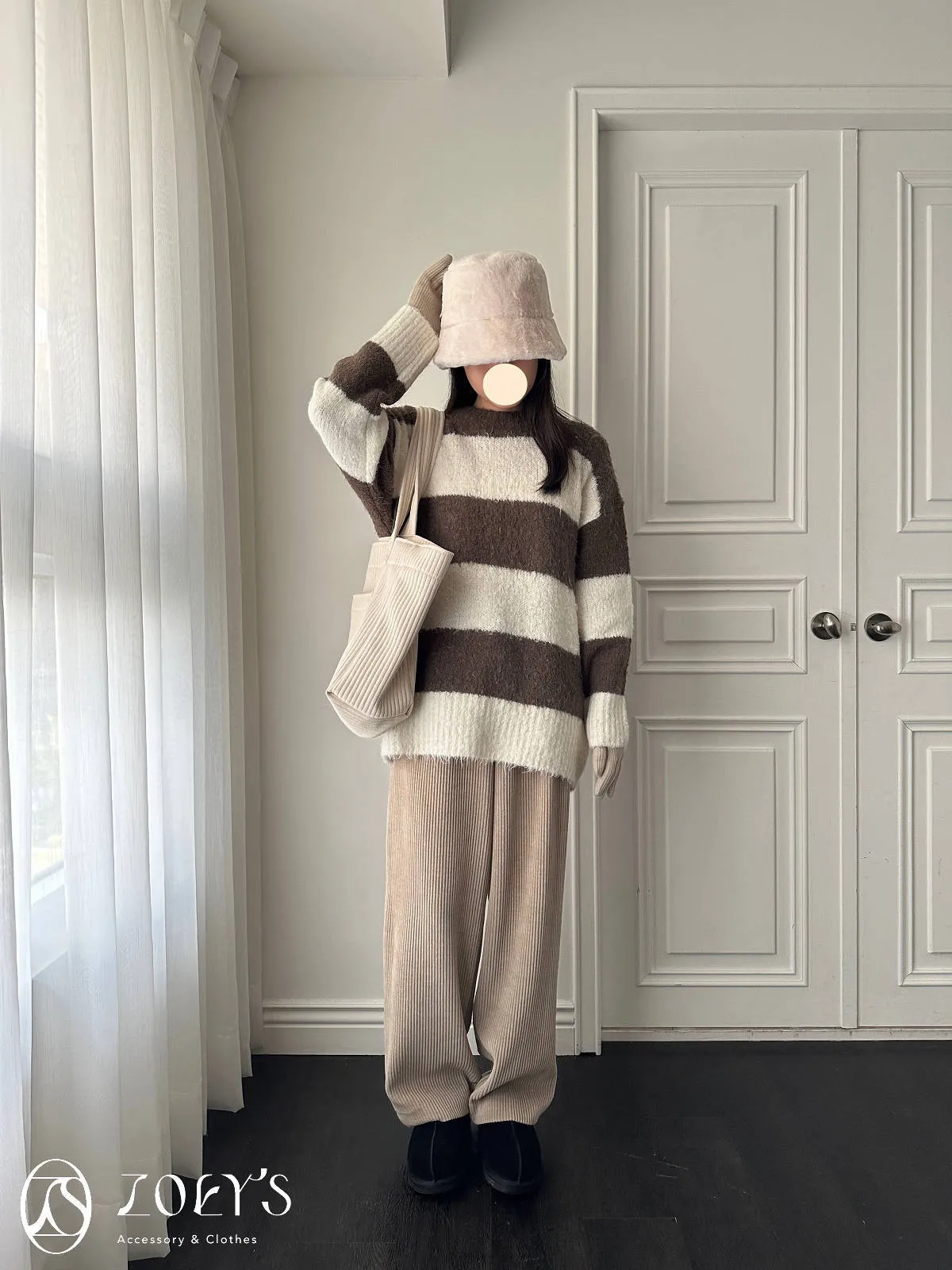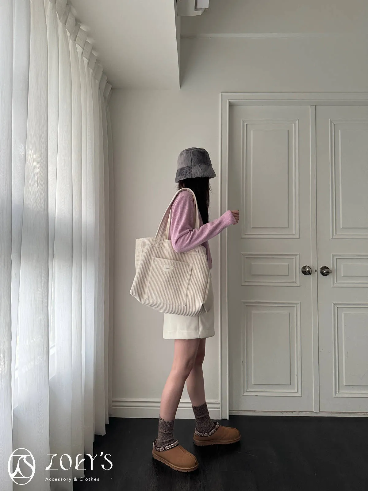 正韓 奶油直紋大容量布包 現貨