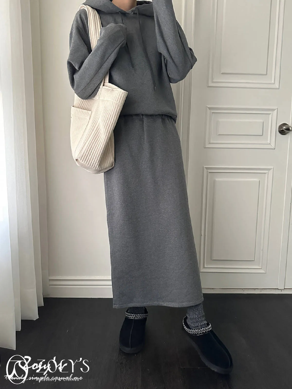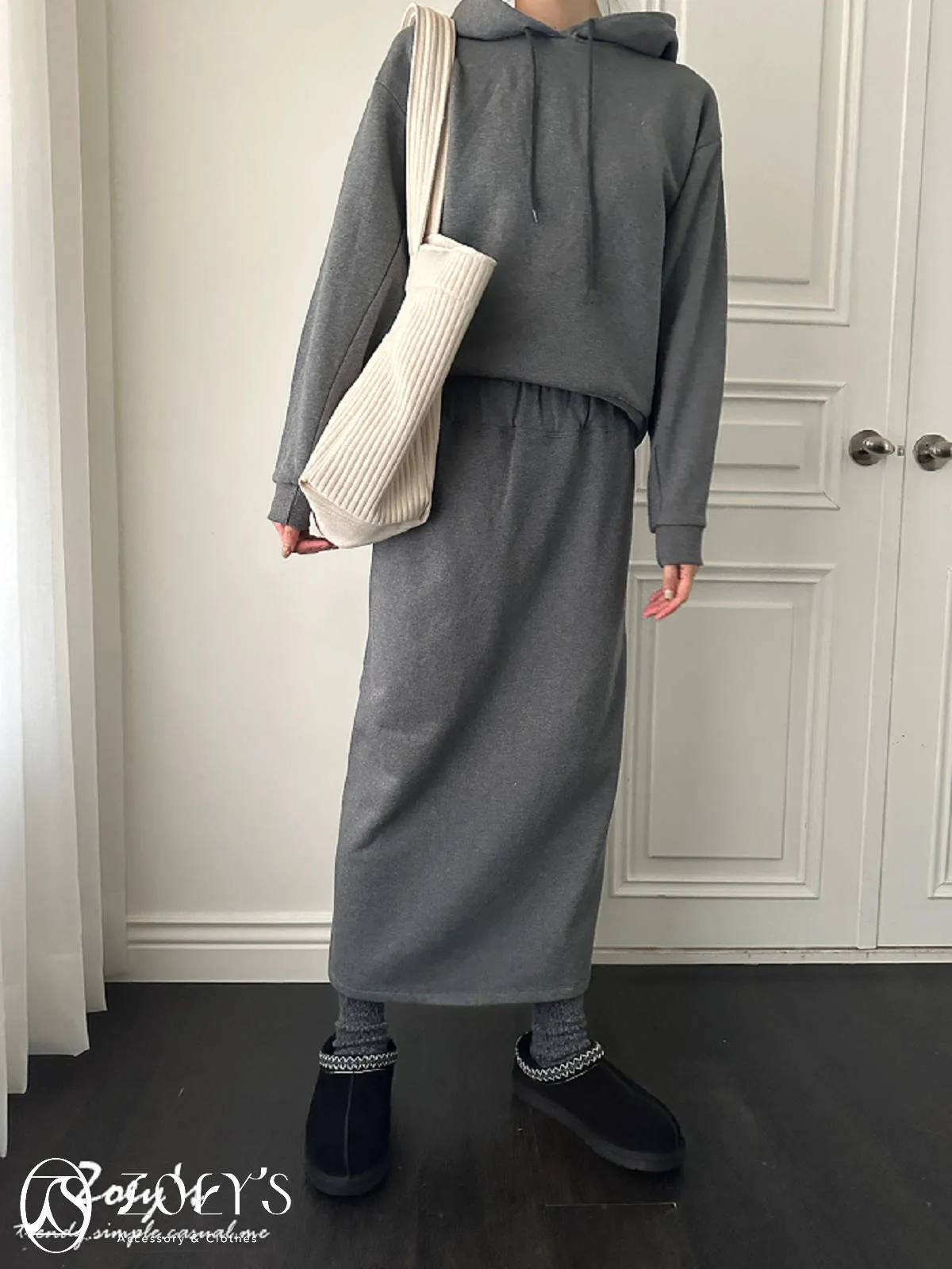 正韓 意外顯瘦腰鬆緊直坑紋開衩裙