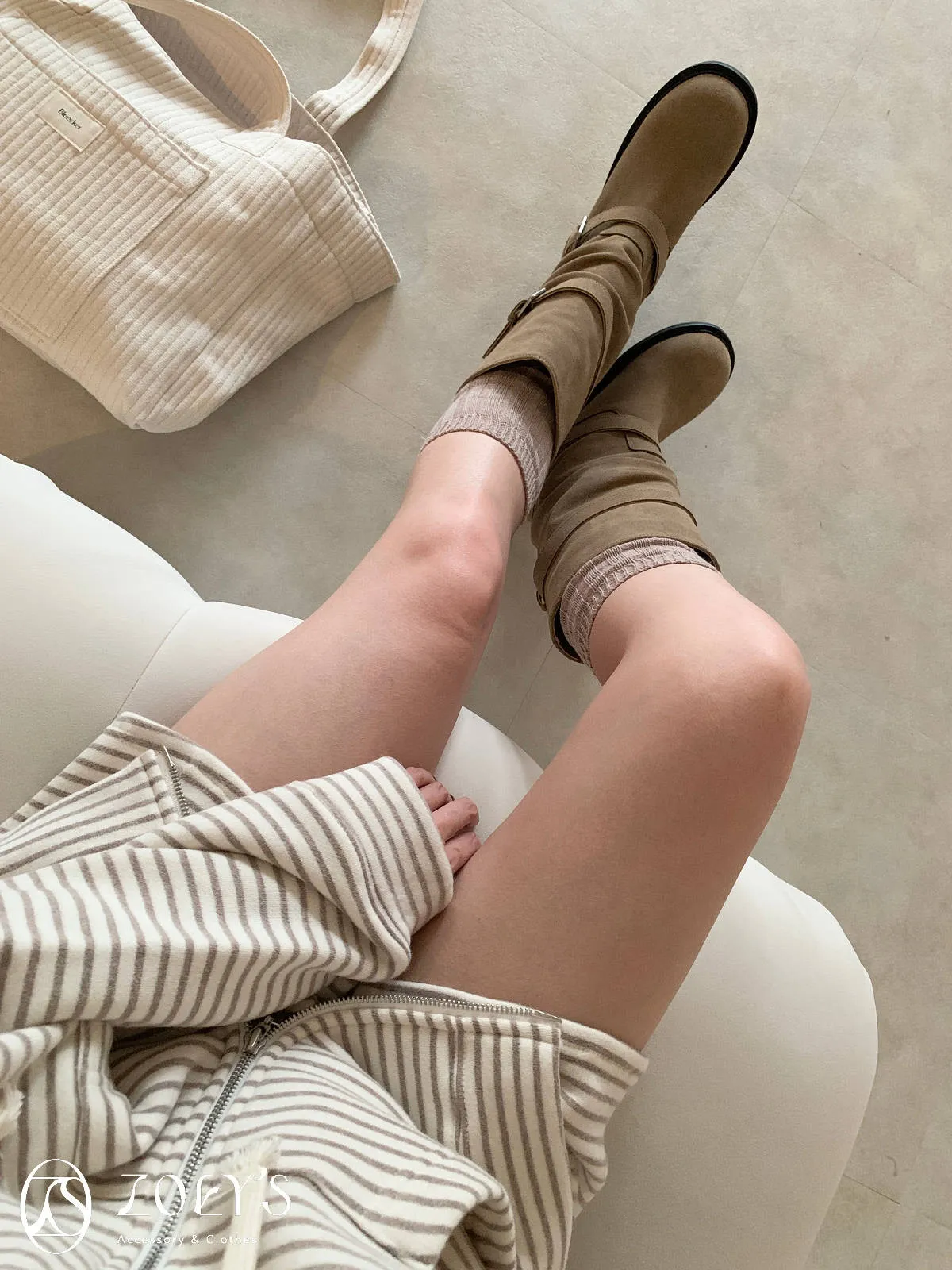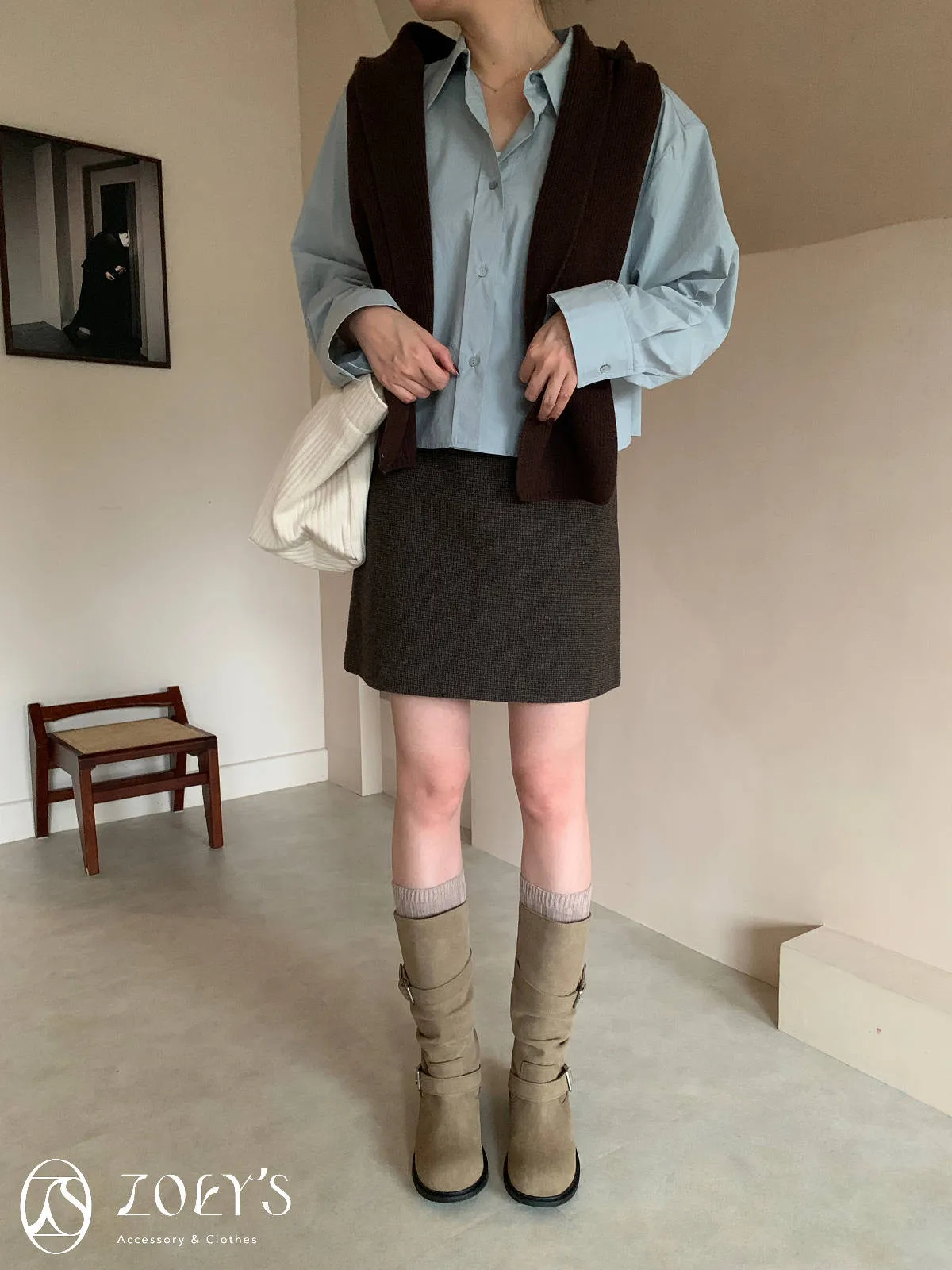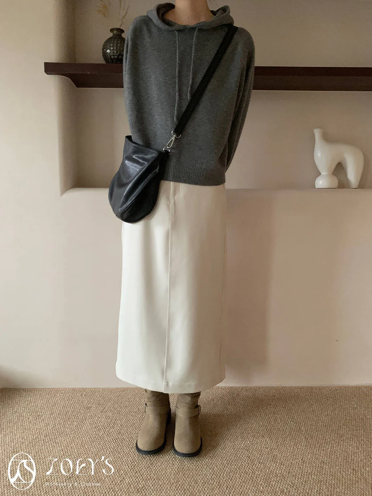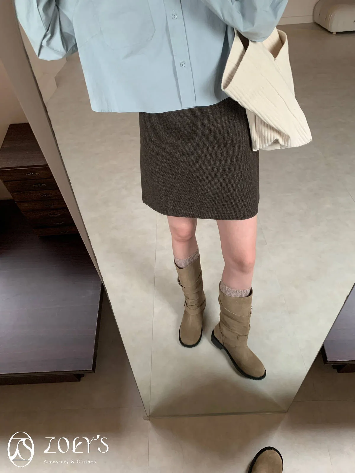 正韓 意外顯瘦腰鬆緊直坑紋開衩裙