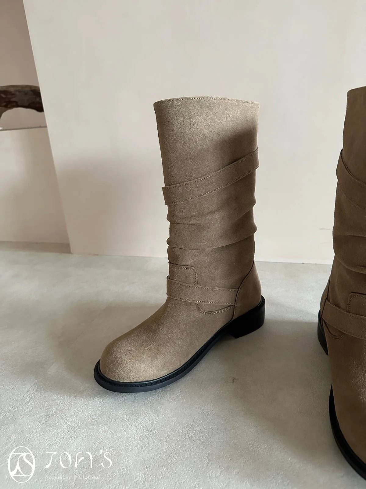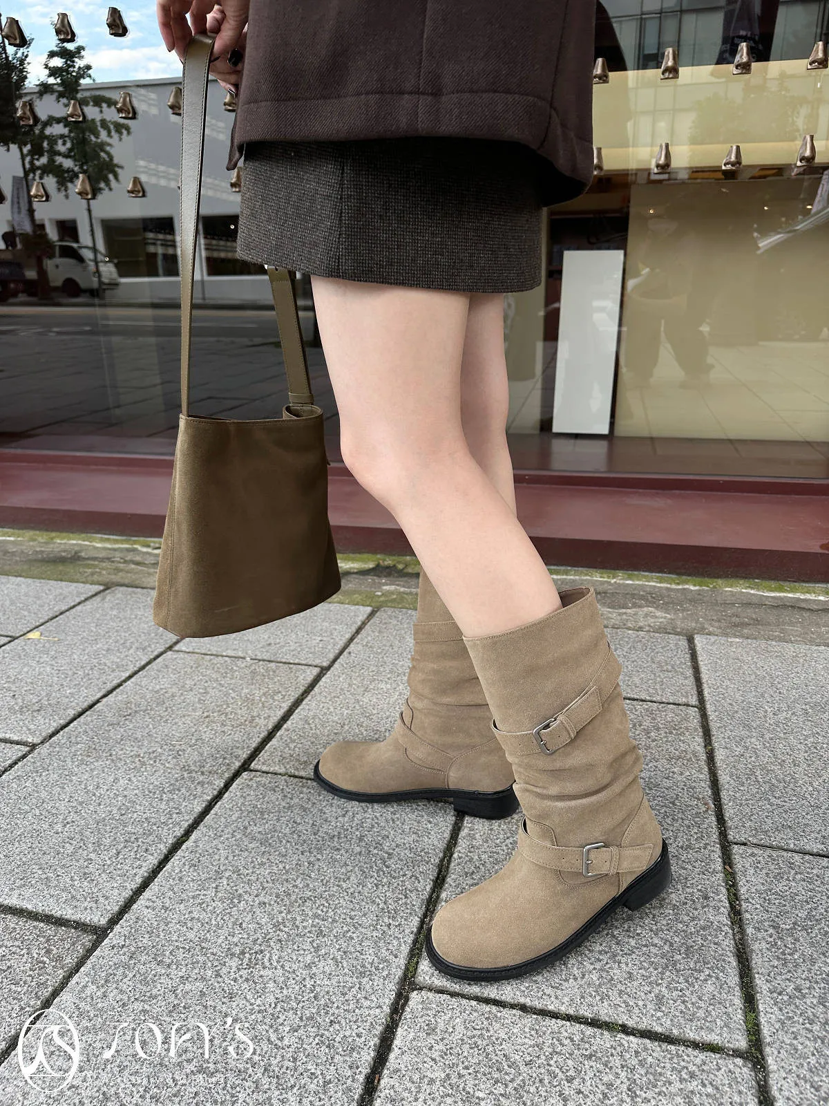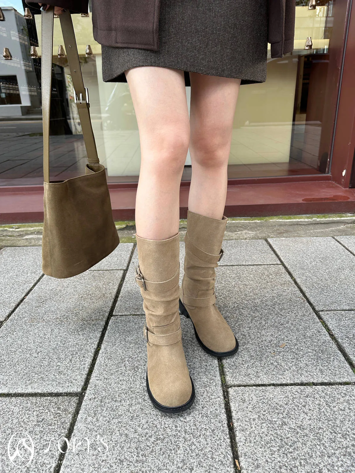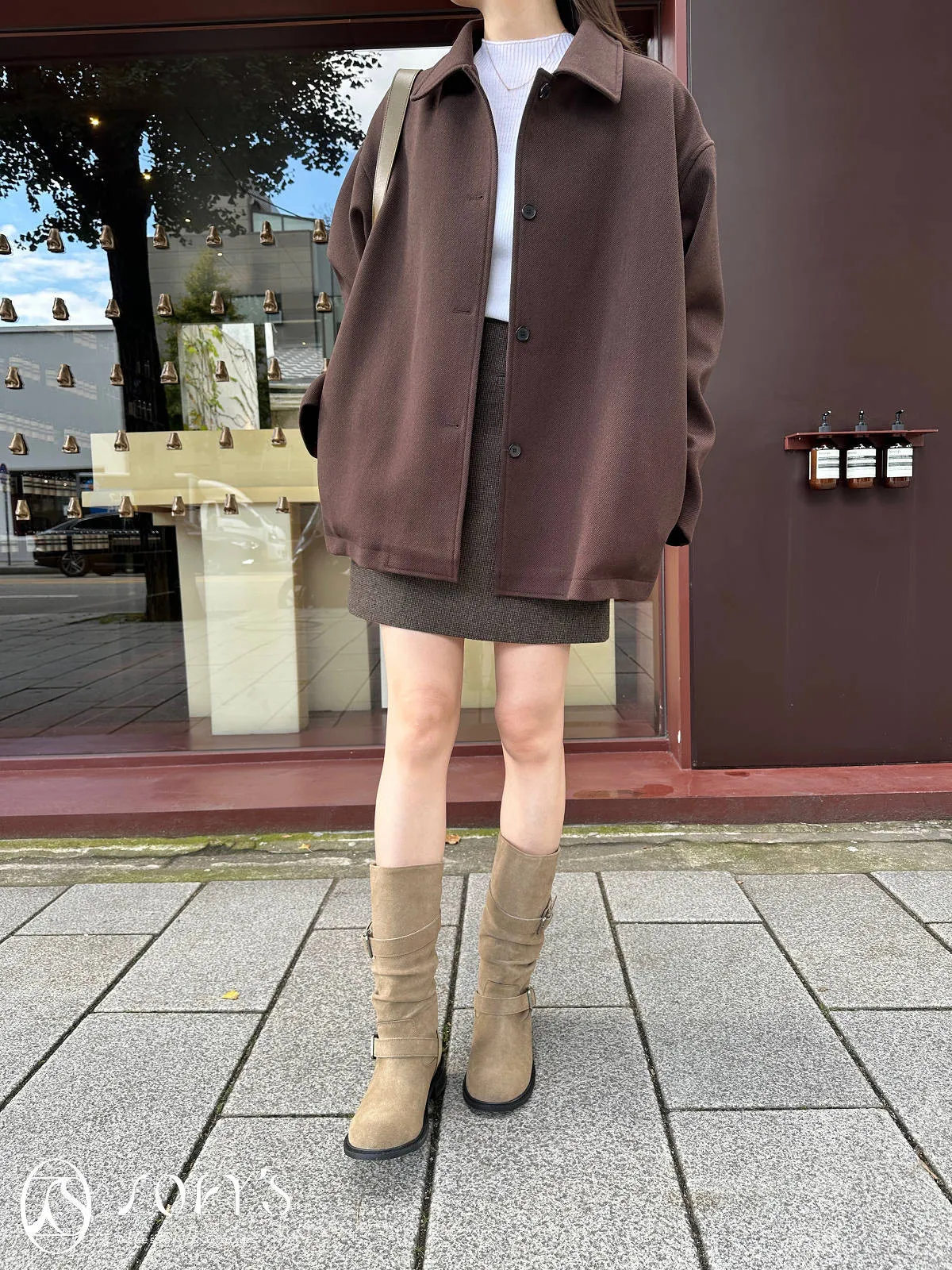 正韓 意外顯瘦腰鬆緊直坑紋開衩裙