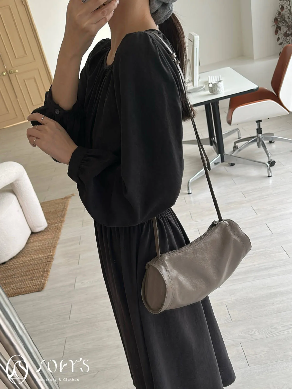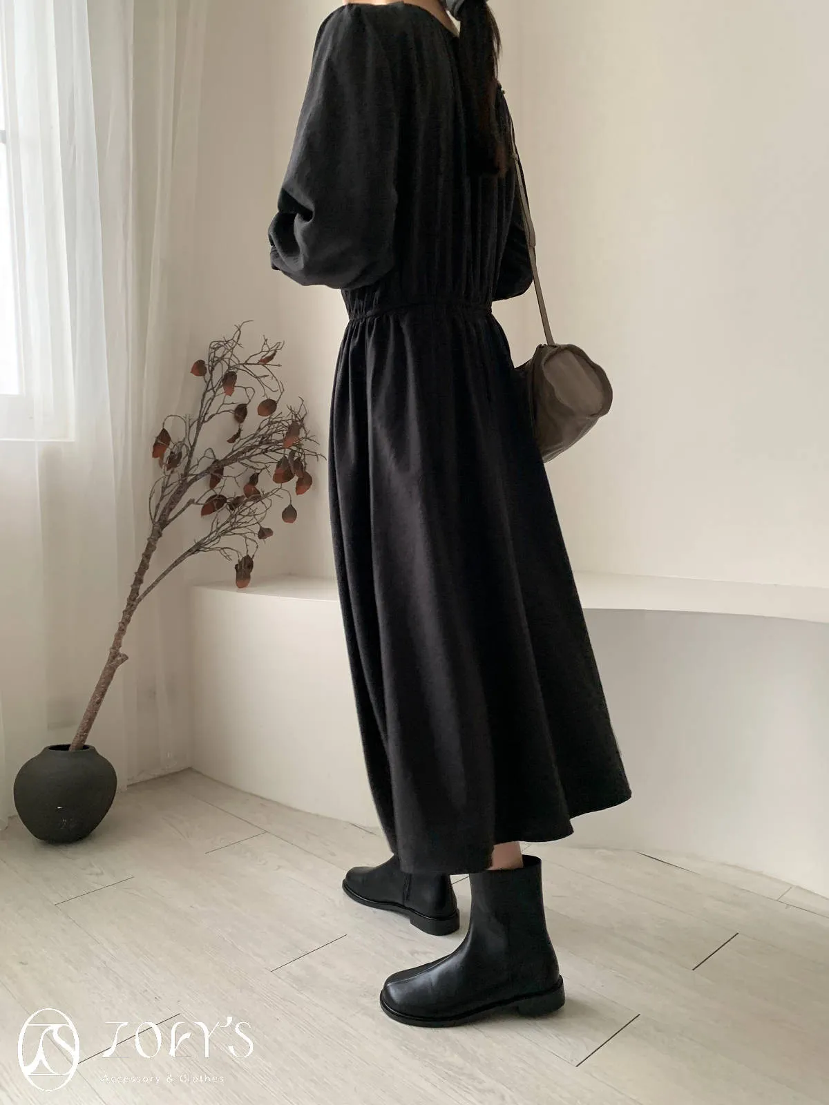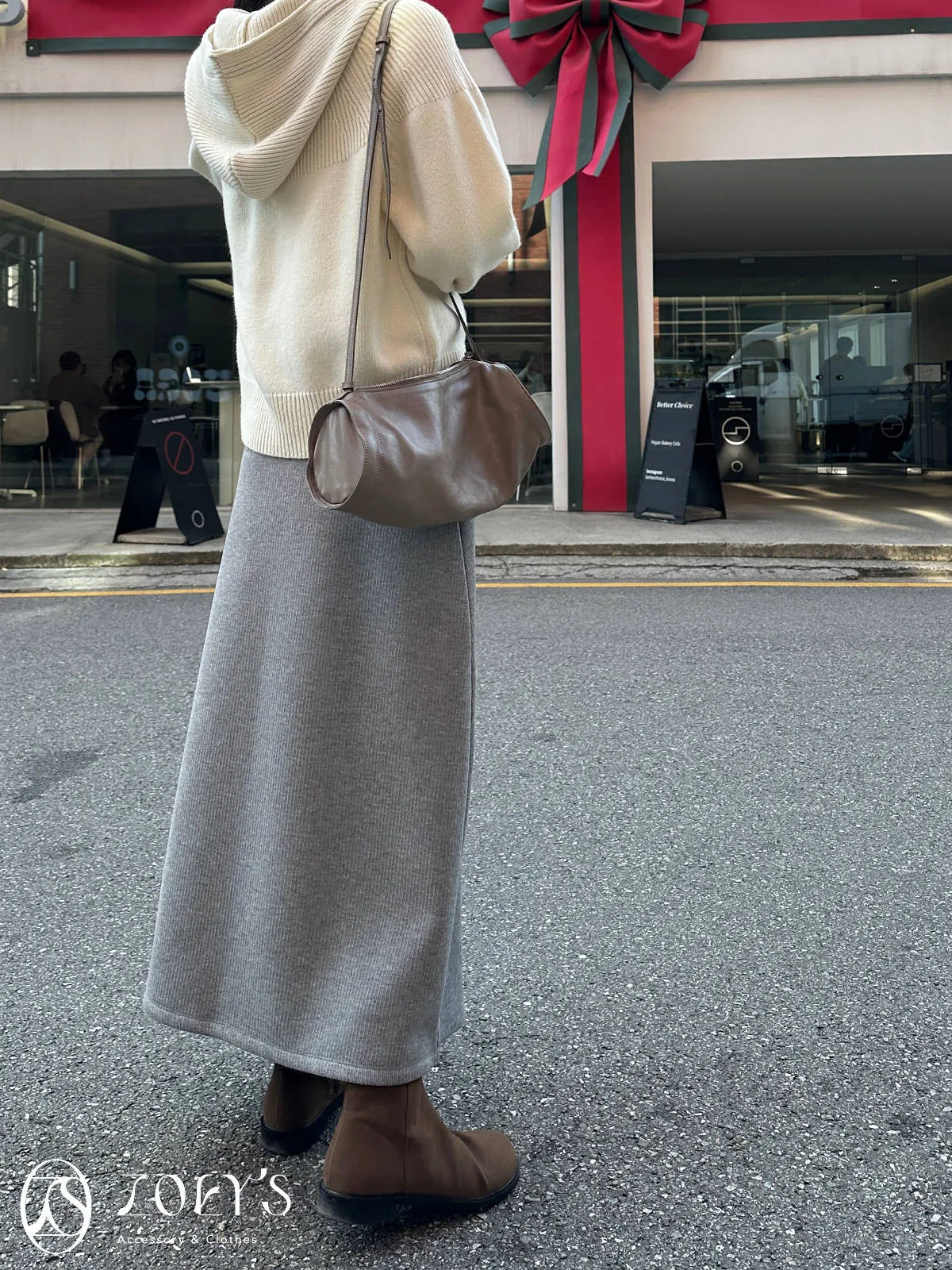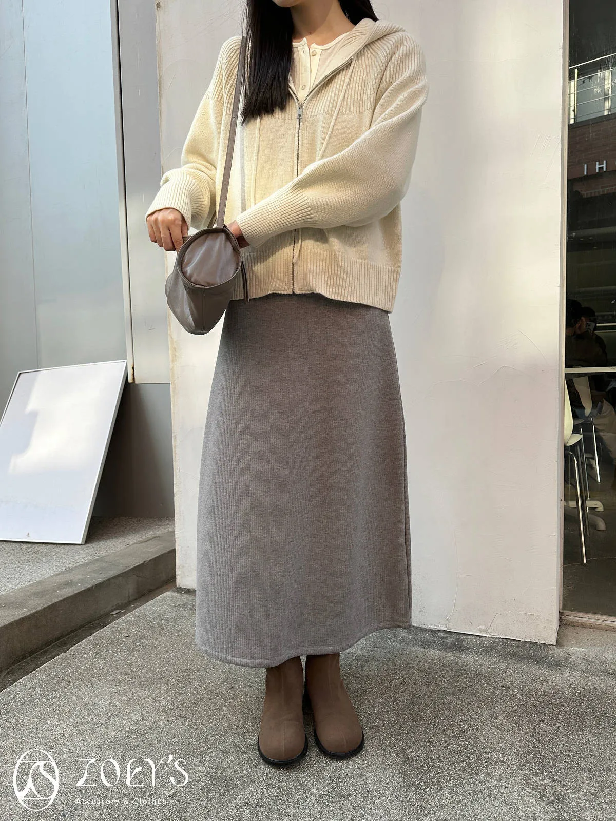 正韓 意外顯瘦腰鬆緊直坑紋開衩裙